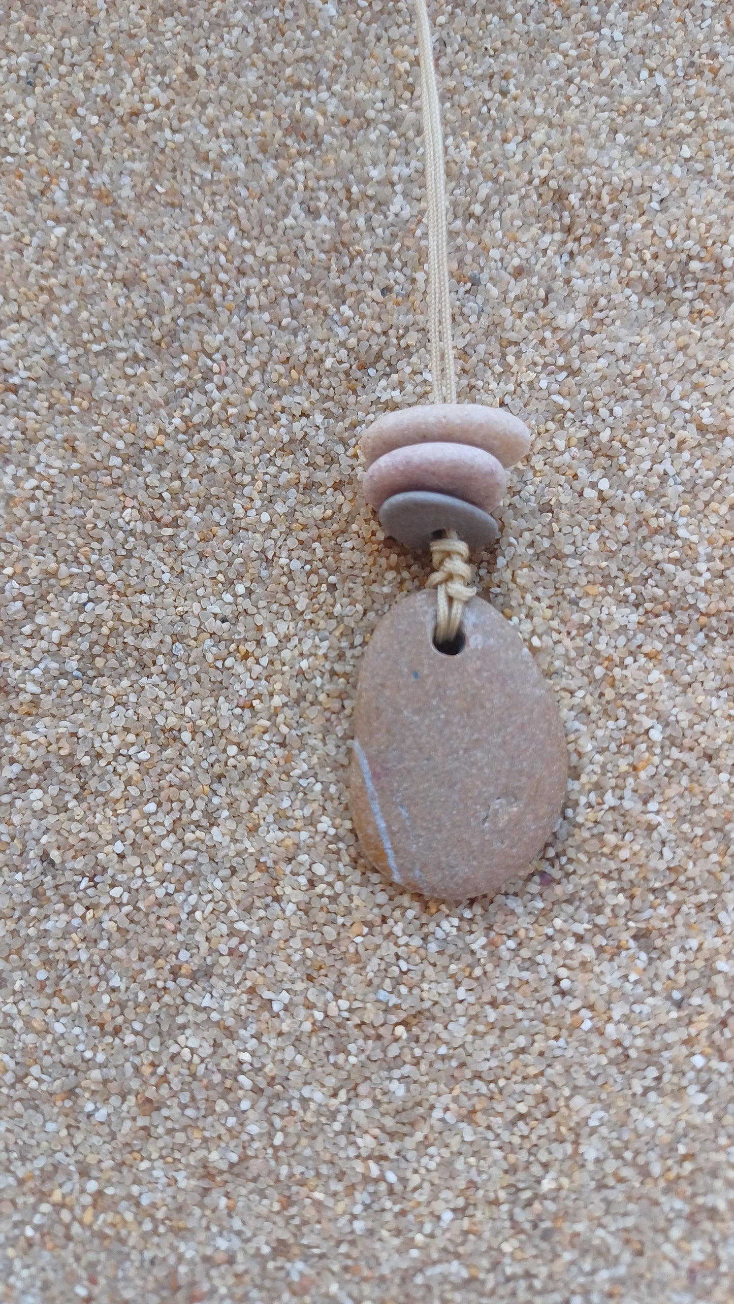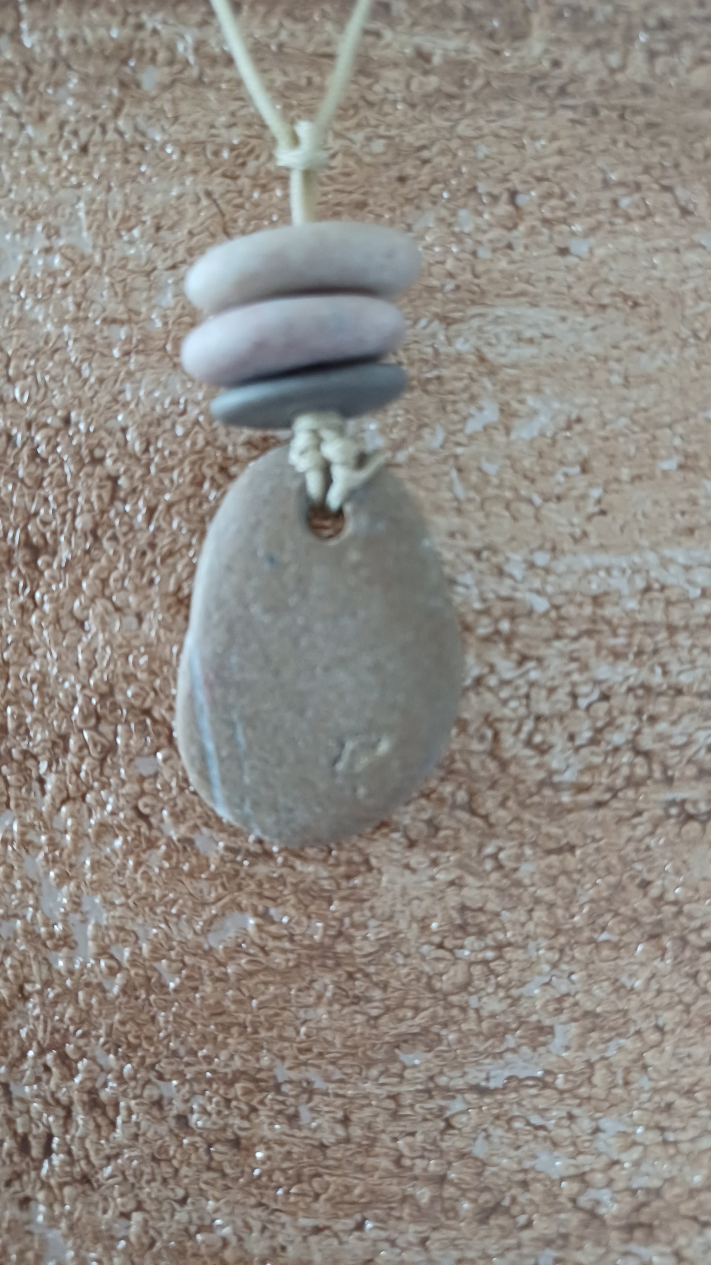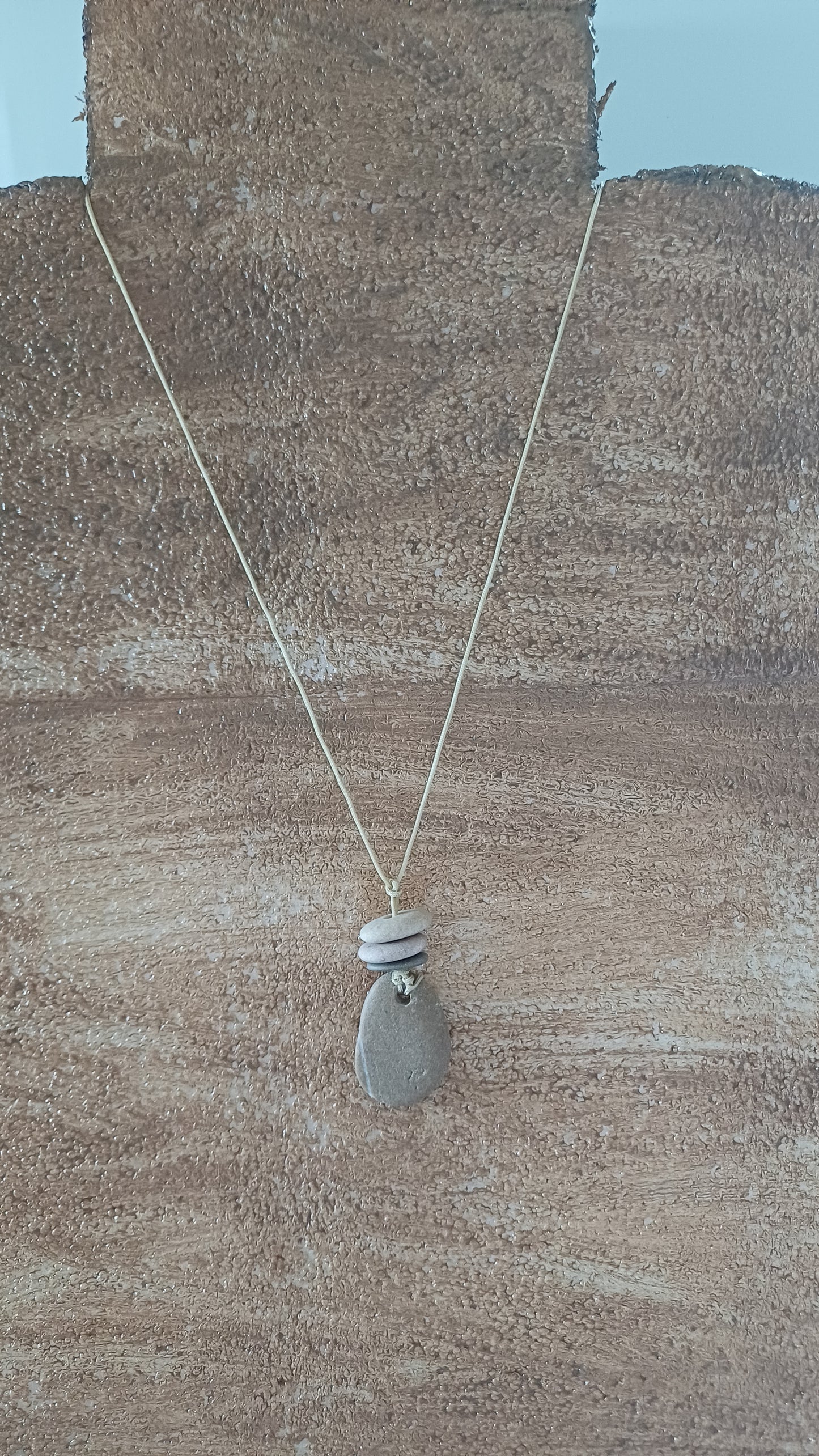 -Beach stones necklace 45 mm x 20 mm with 64 cm adjustable rope