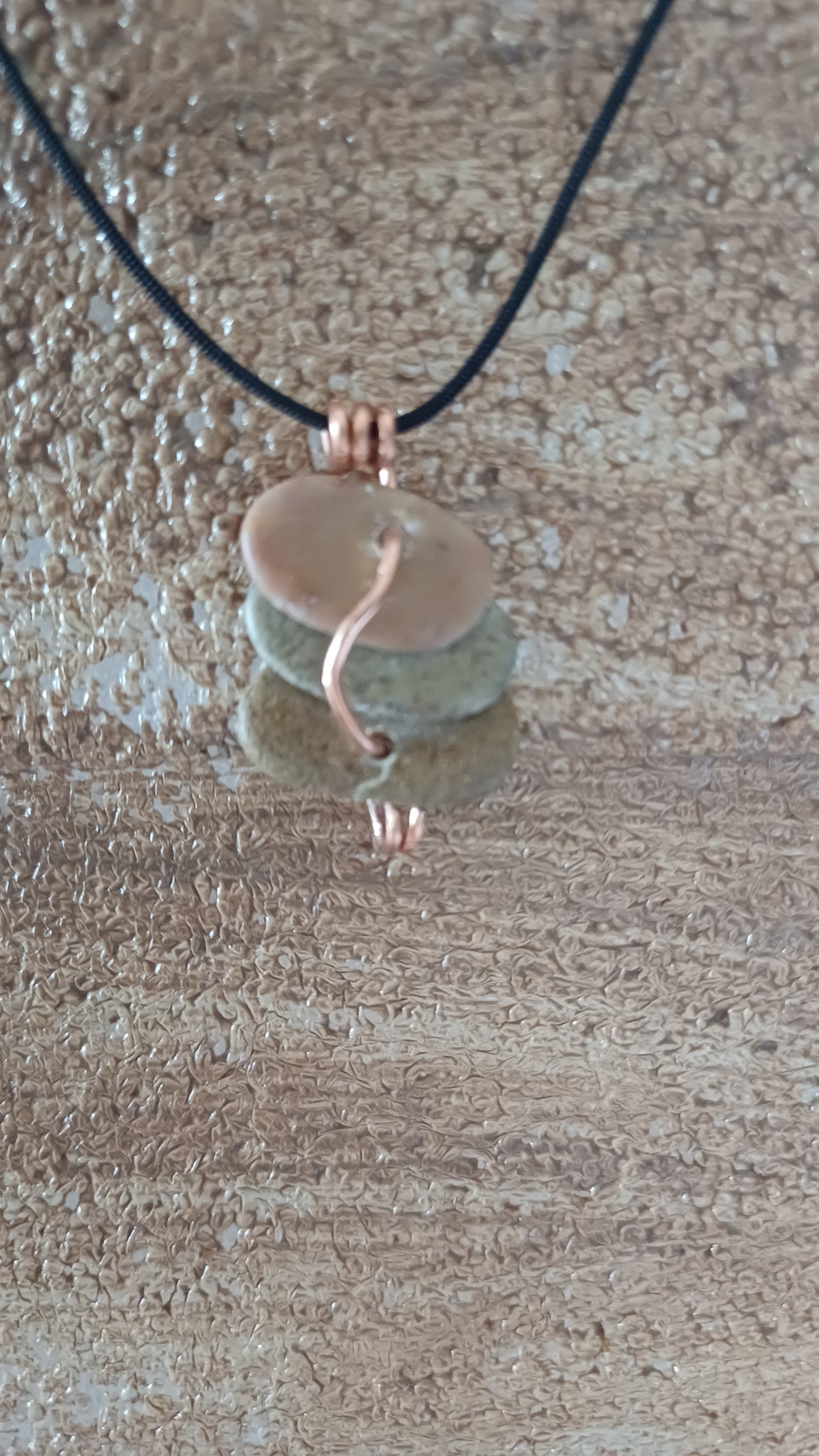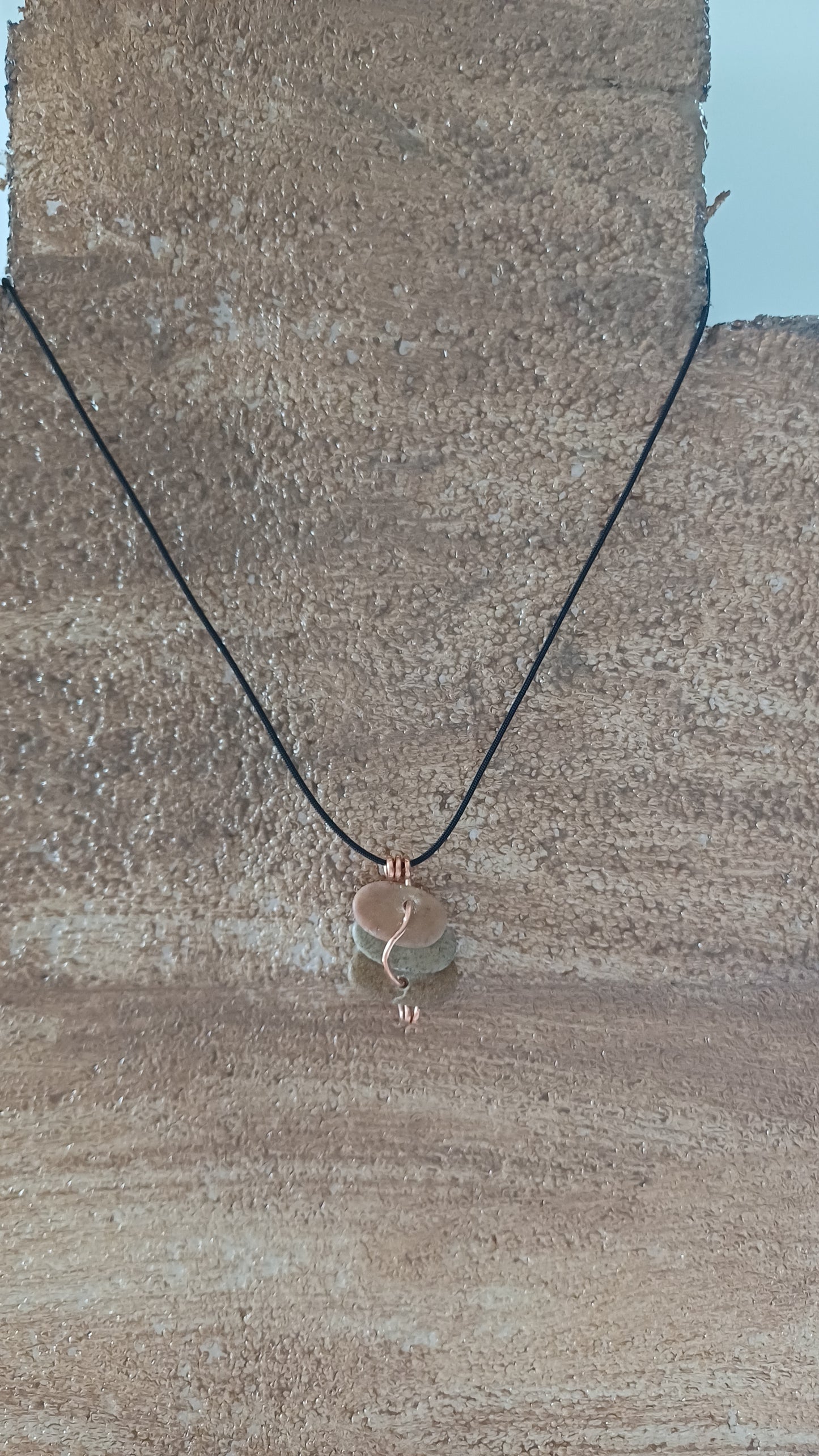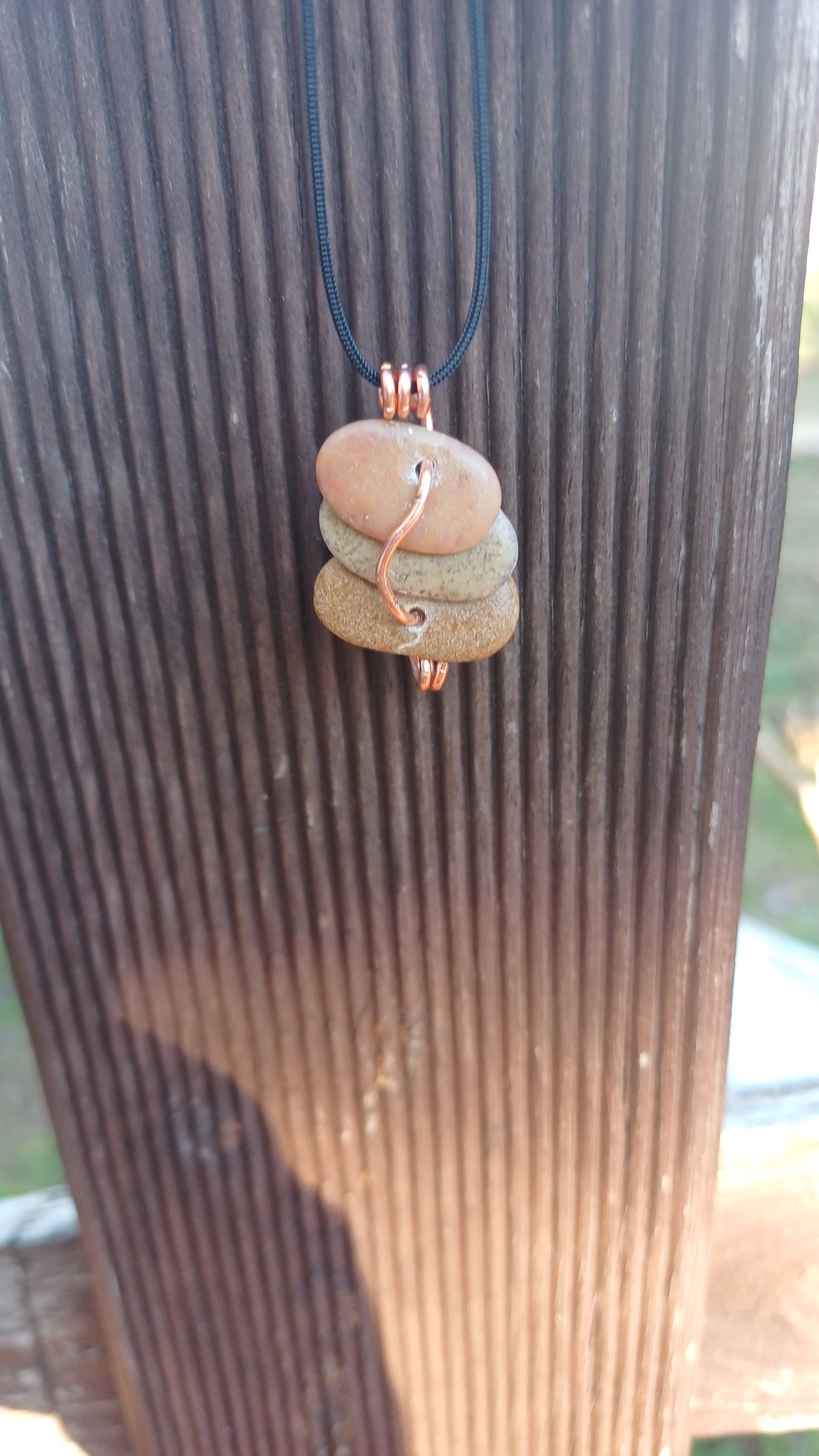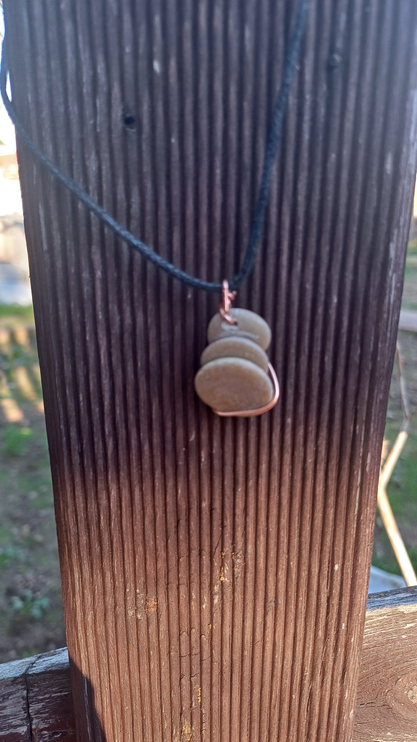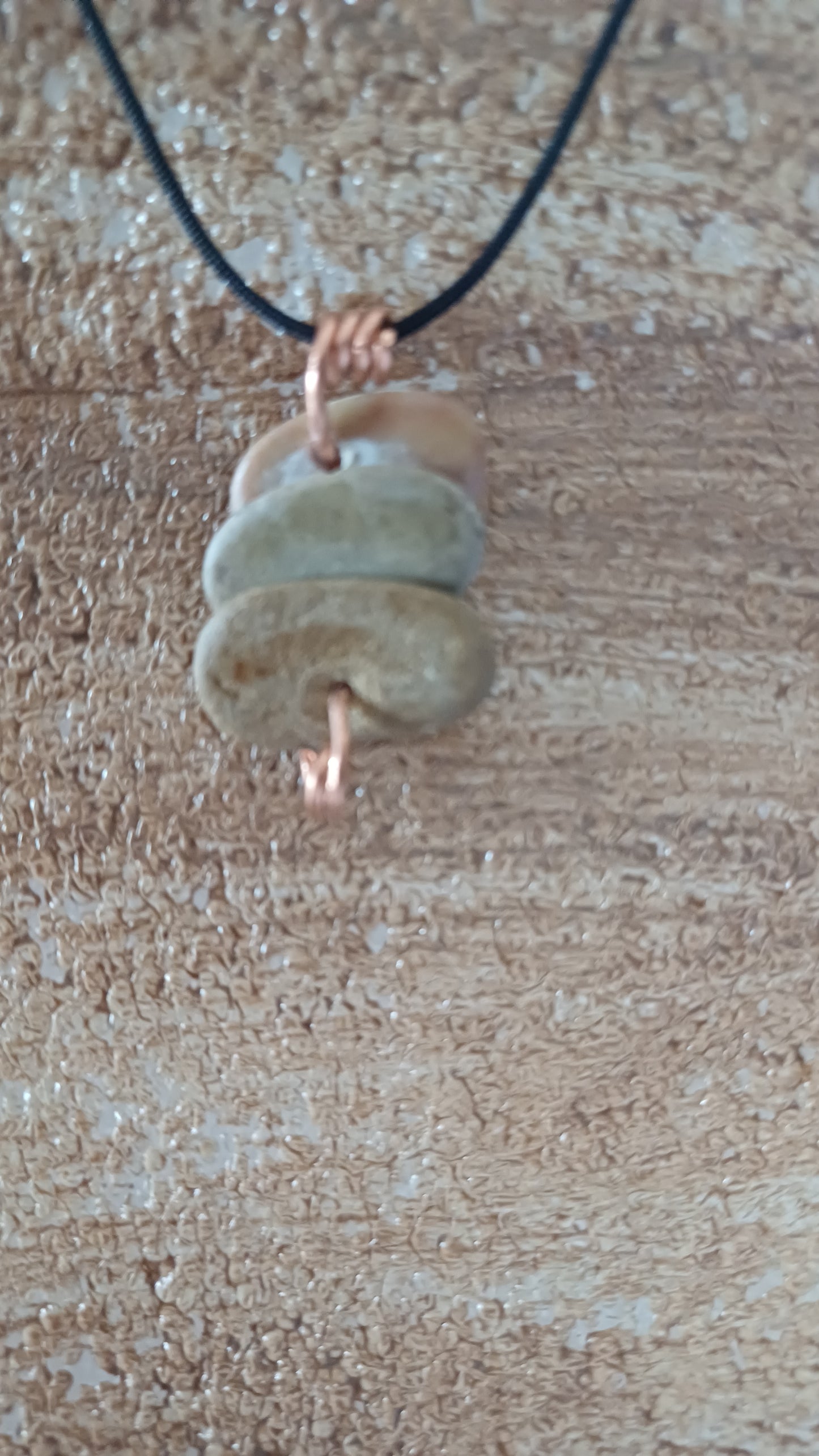 -Necklace with 3 beach stones 20mm x 20mm with copper and 68 cm adjustable rope.