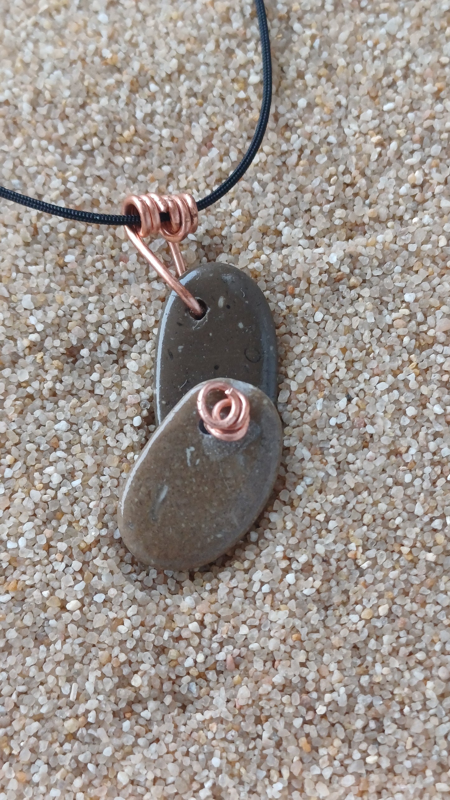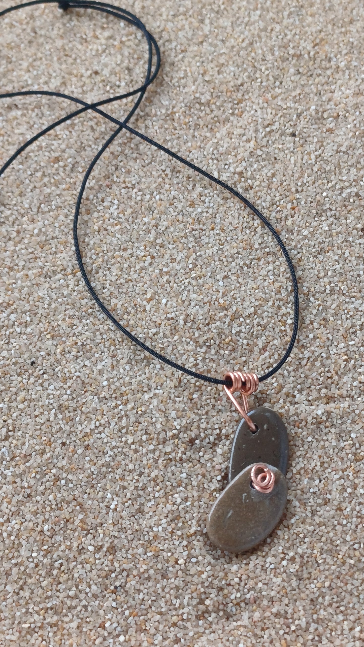 -30mm beach stones. x 13mm with copper on 66cm adjustable rope.