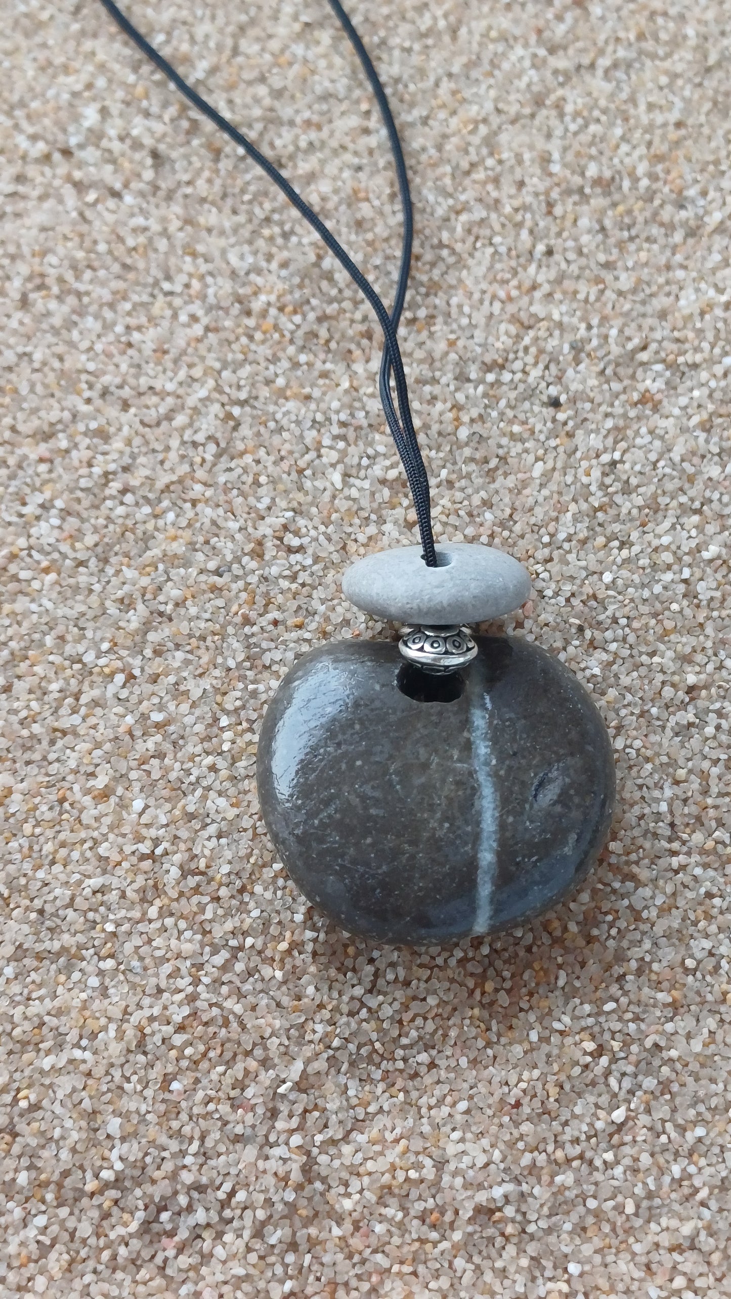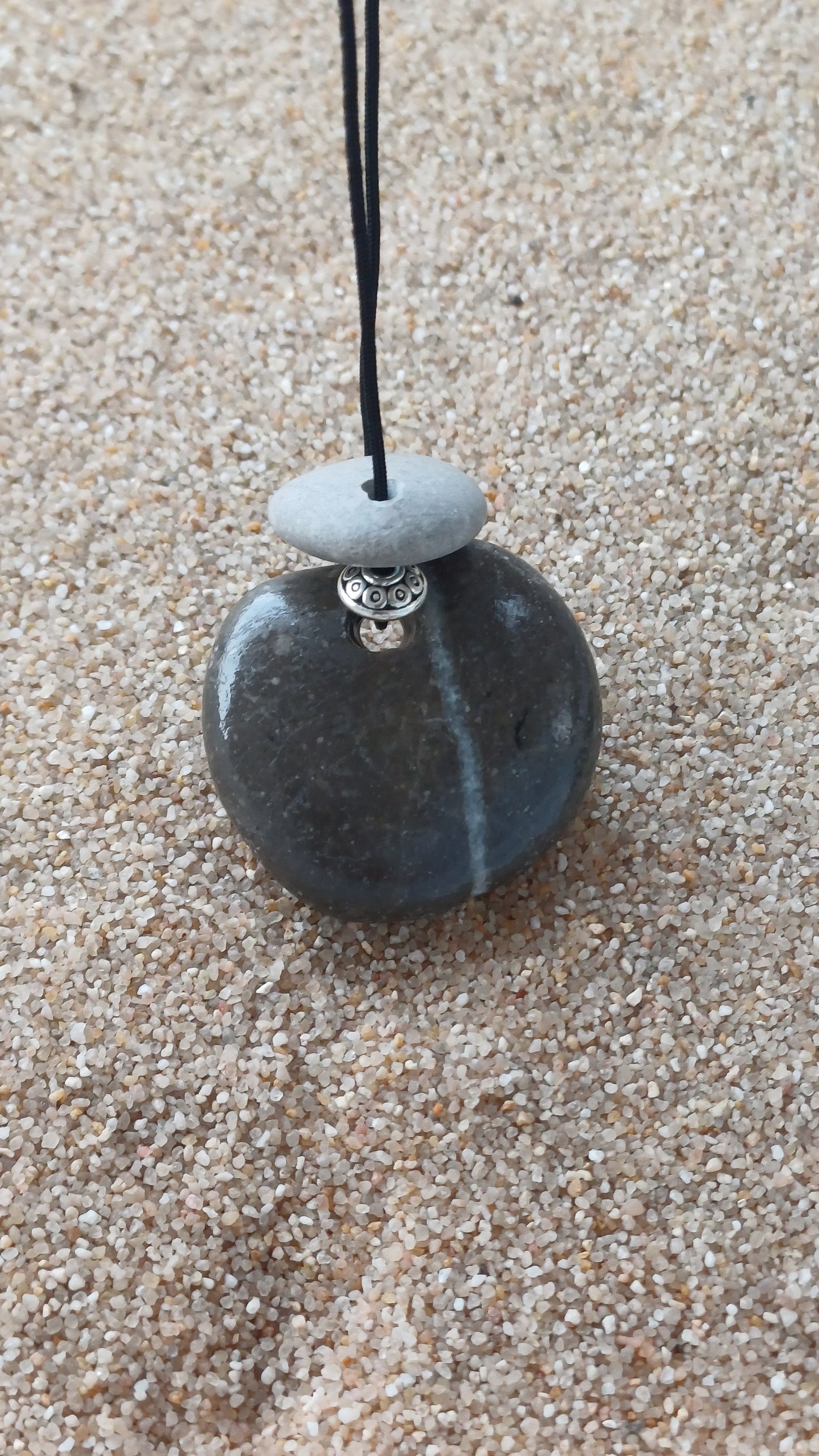 -Piedras de playa de 40mm. x 32mm con bolas de acero inoxidable en cuerda ajustable de 66cm.