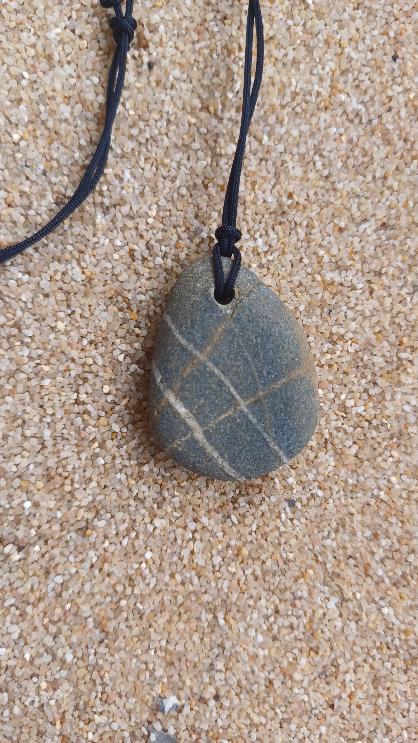 - 35mm x 25mm beach stone and 66cm adjustable rope.