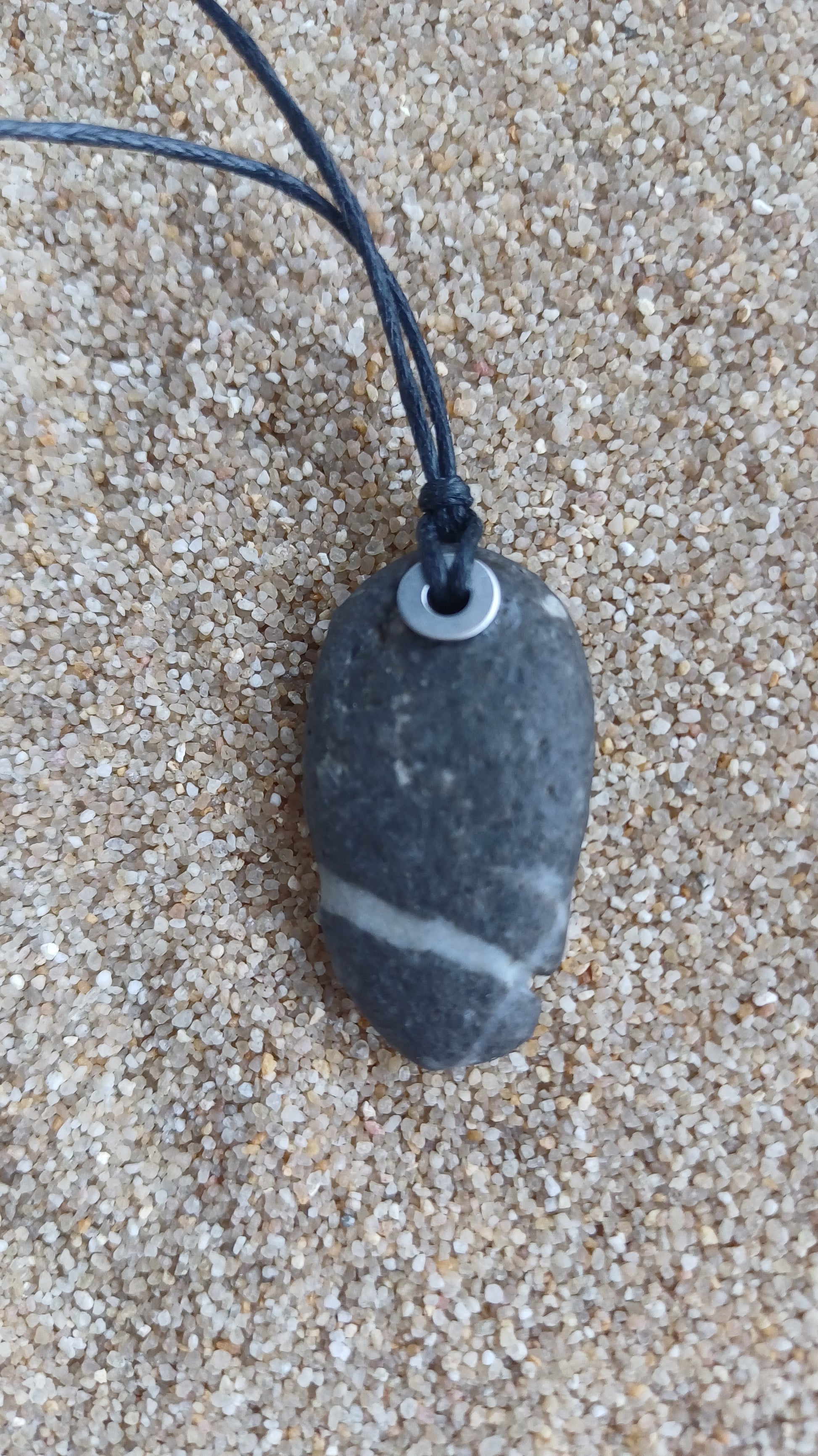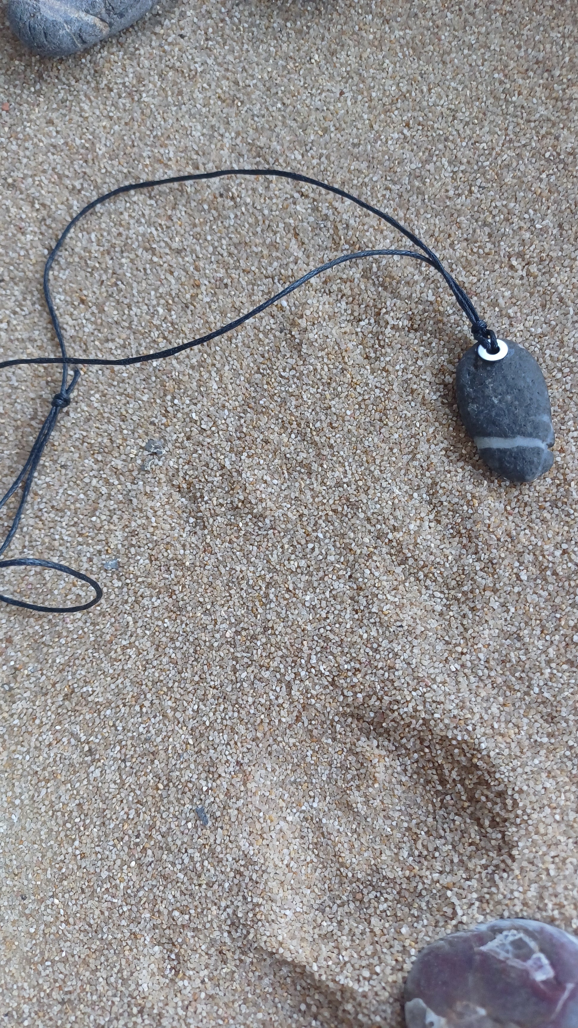 - 35mm x 20mm beach stone with stainless steel and 66cm adjustable rope.