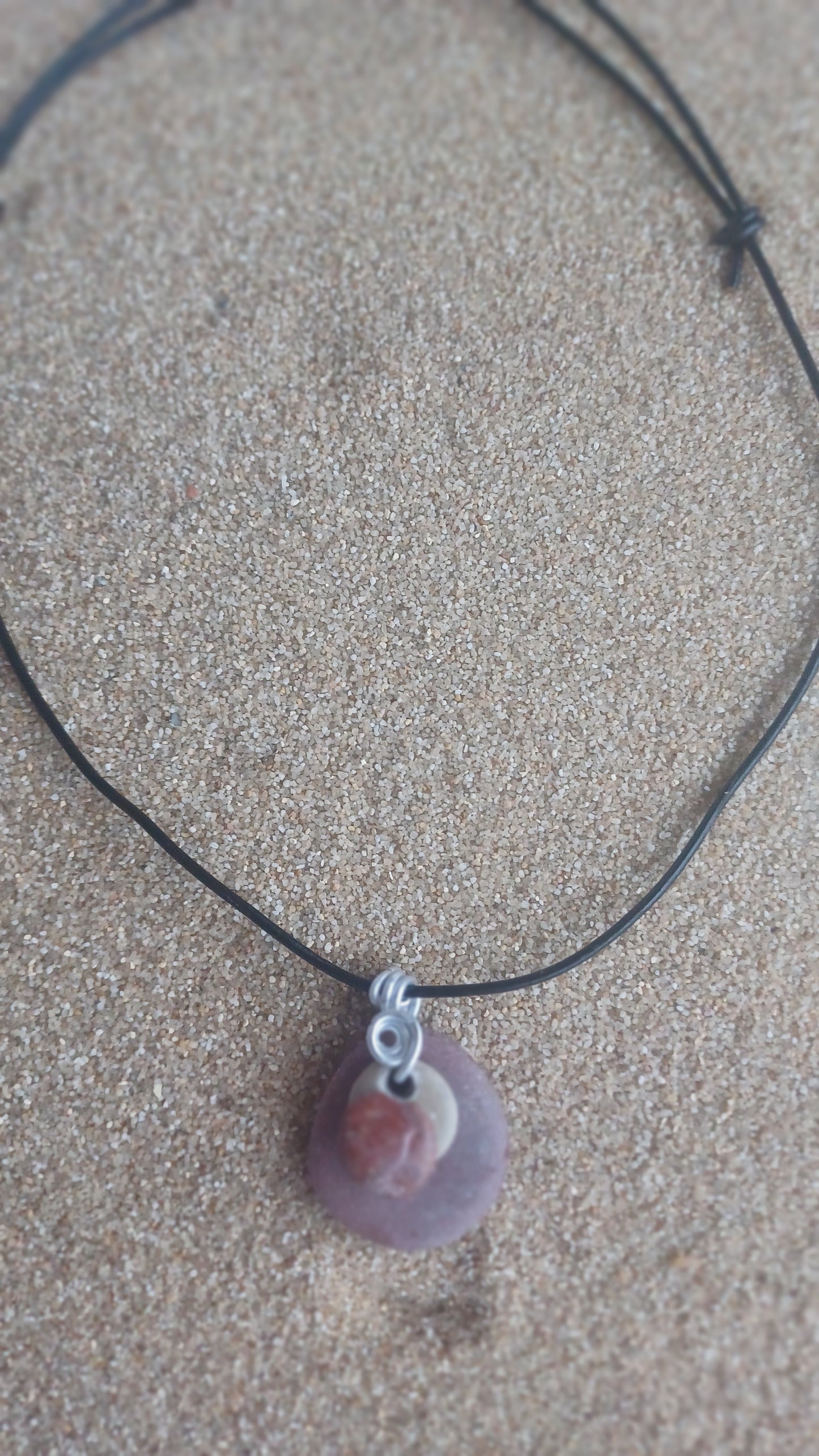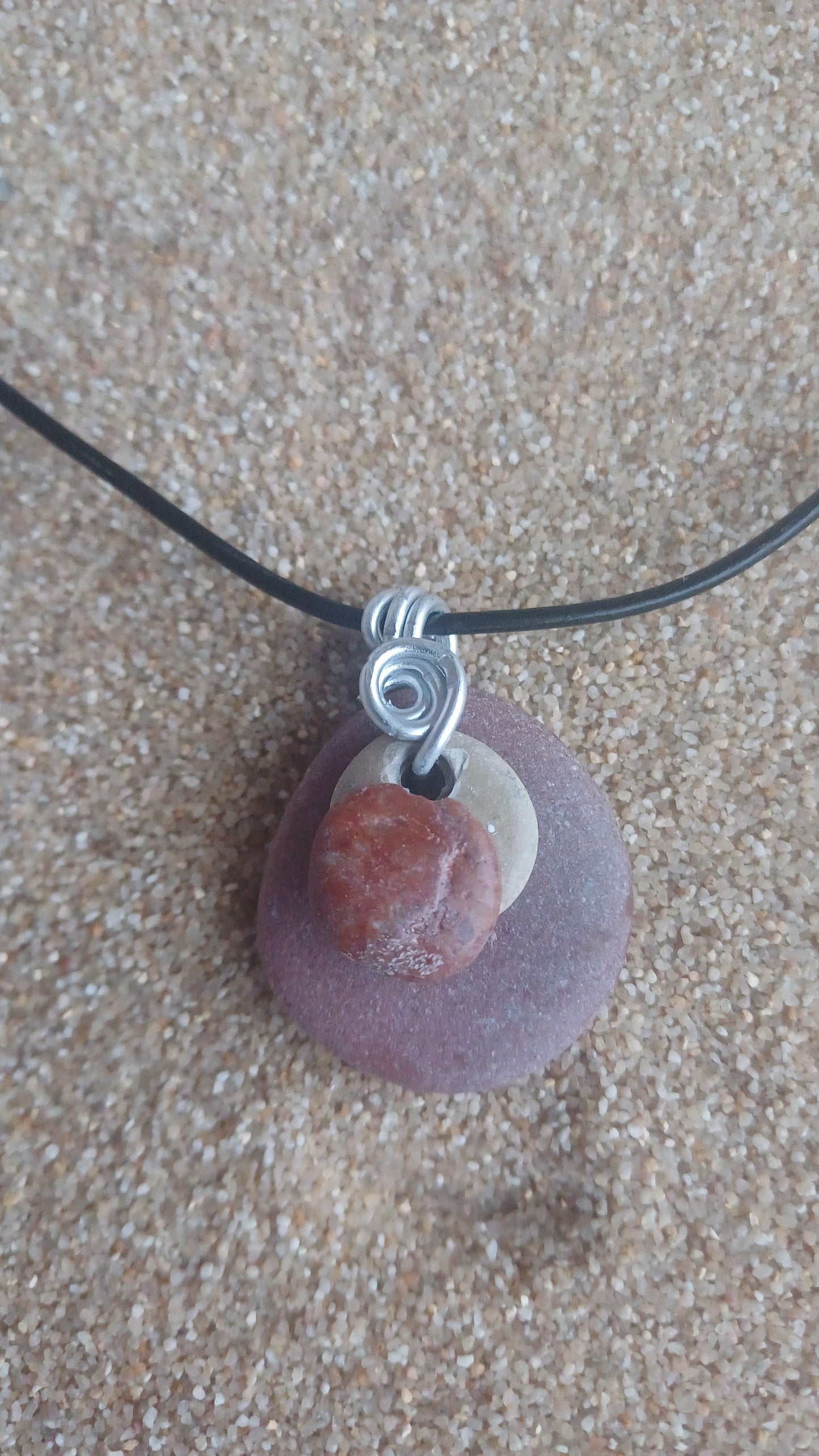 - 3 beach stones of 35mm x 30mm adjustable leather rope of 66cm.