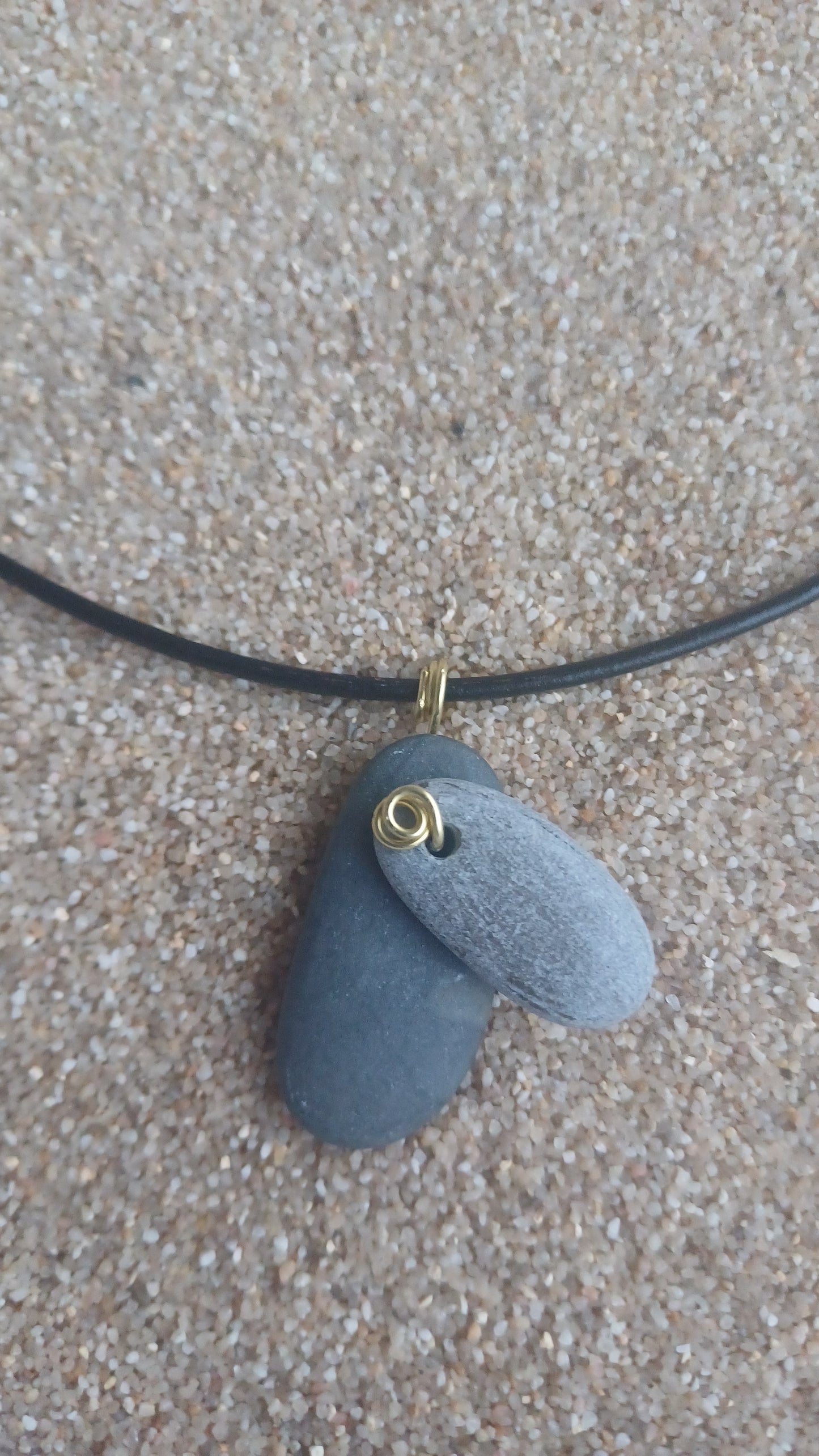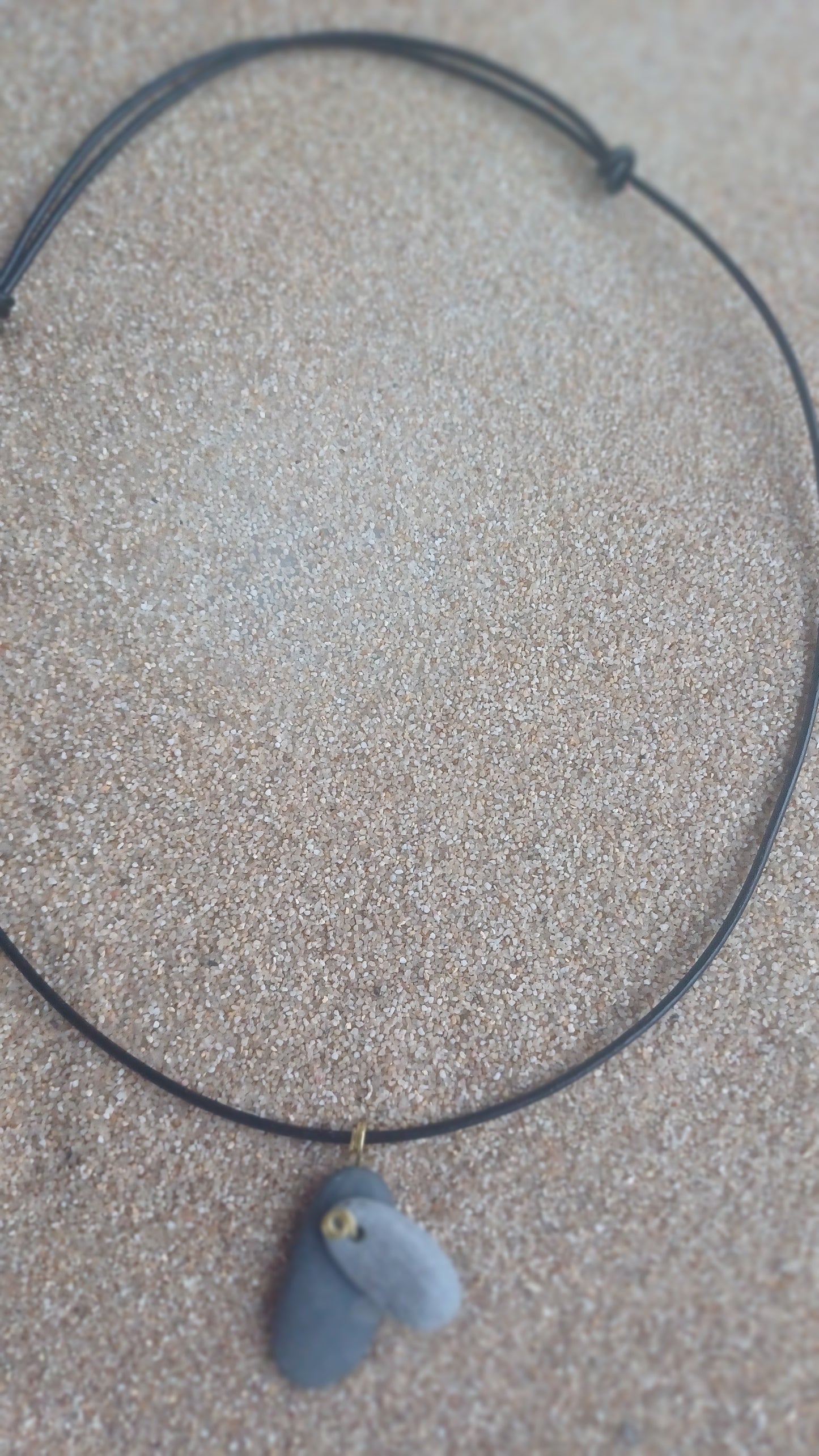 - 2 32mm x 15mm beach stones with 66cm adjustable leather rope.