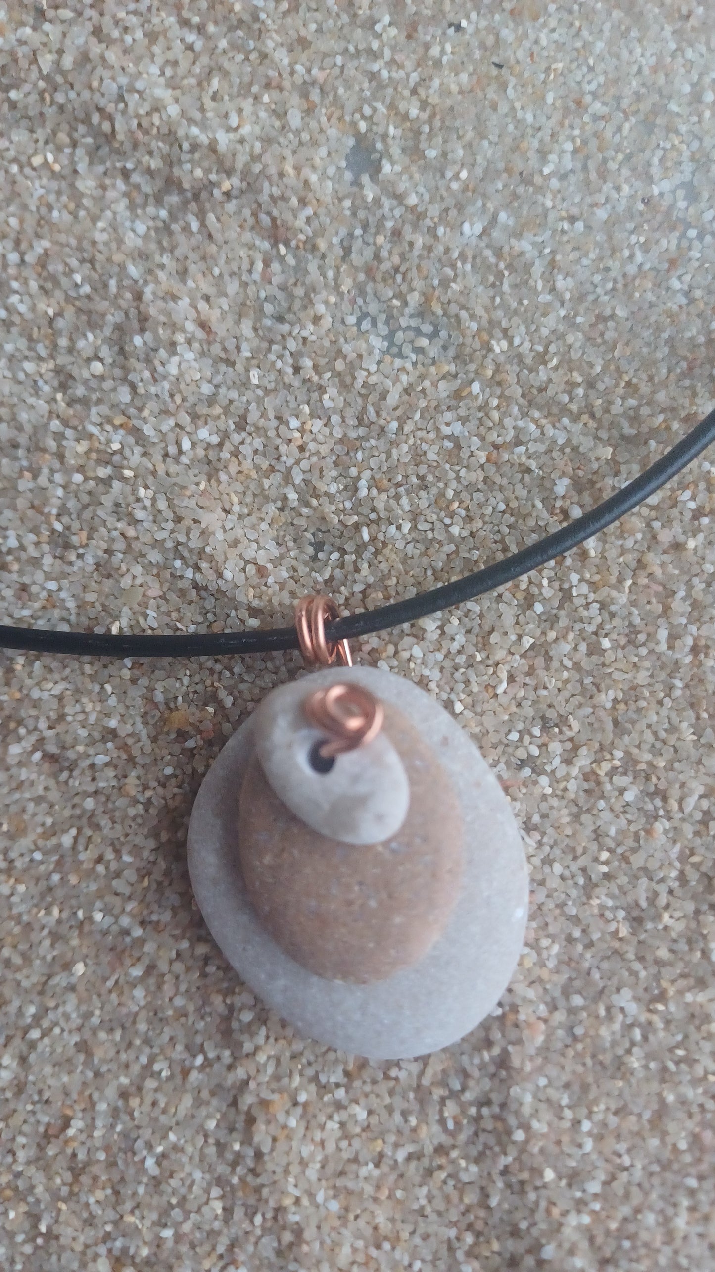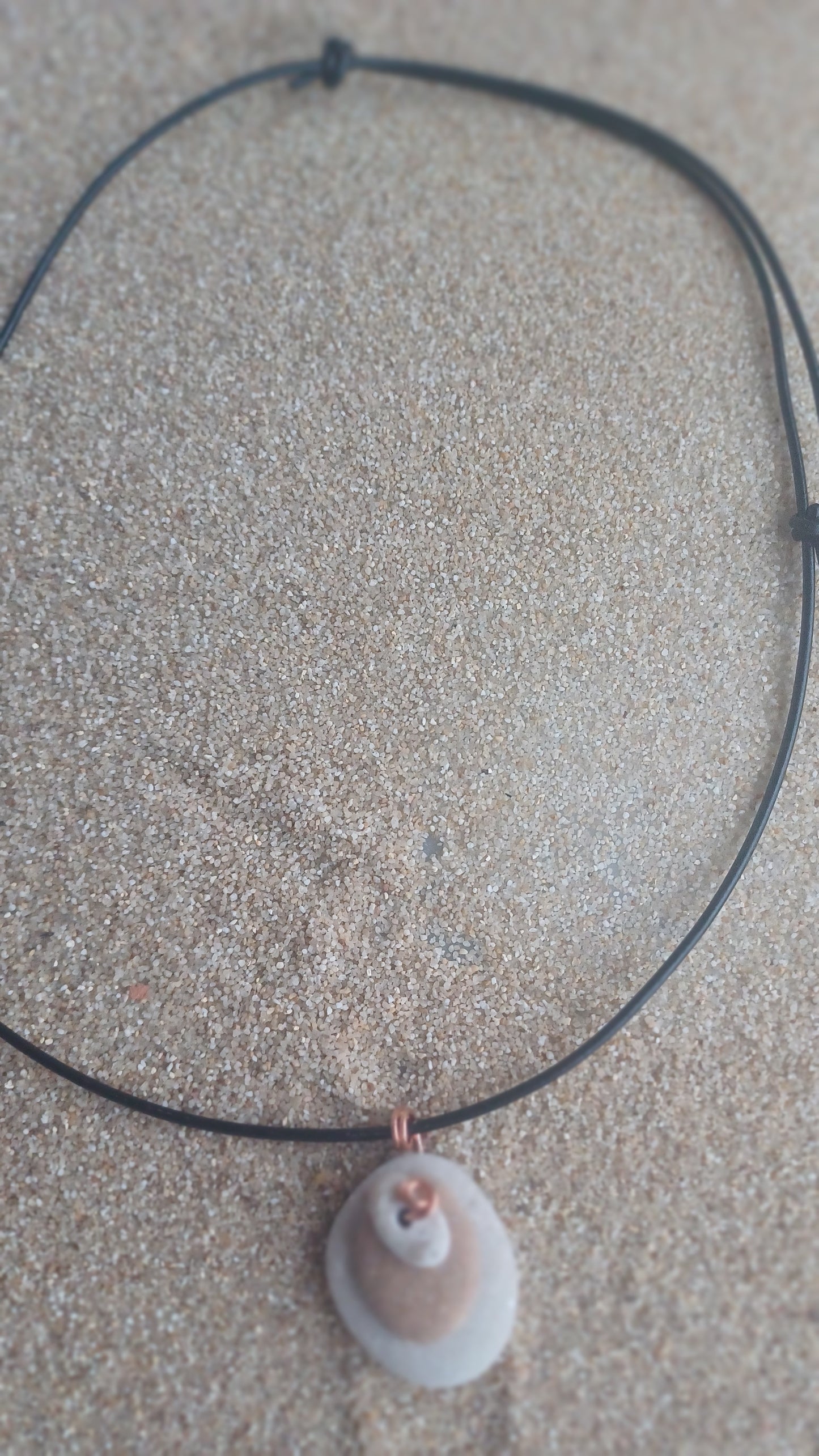 - 3 35mm x 30mm beach stones with 66cm adjustable leather rope.