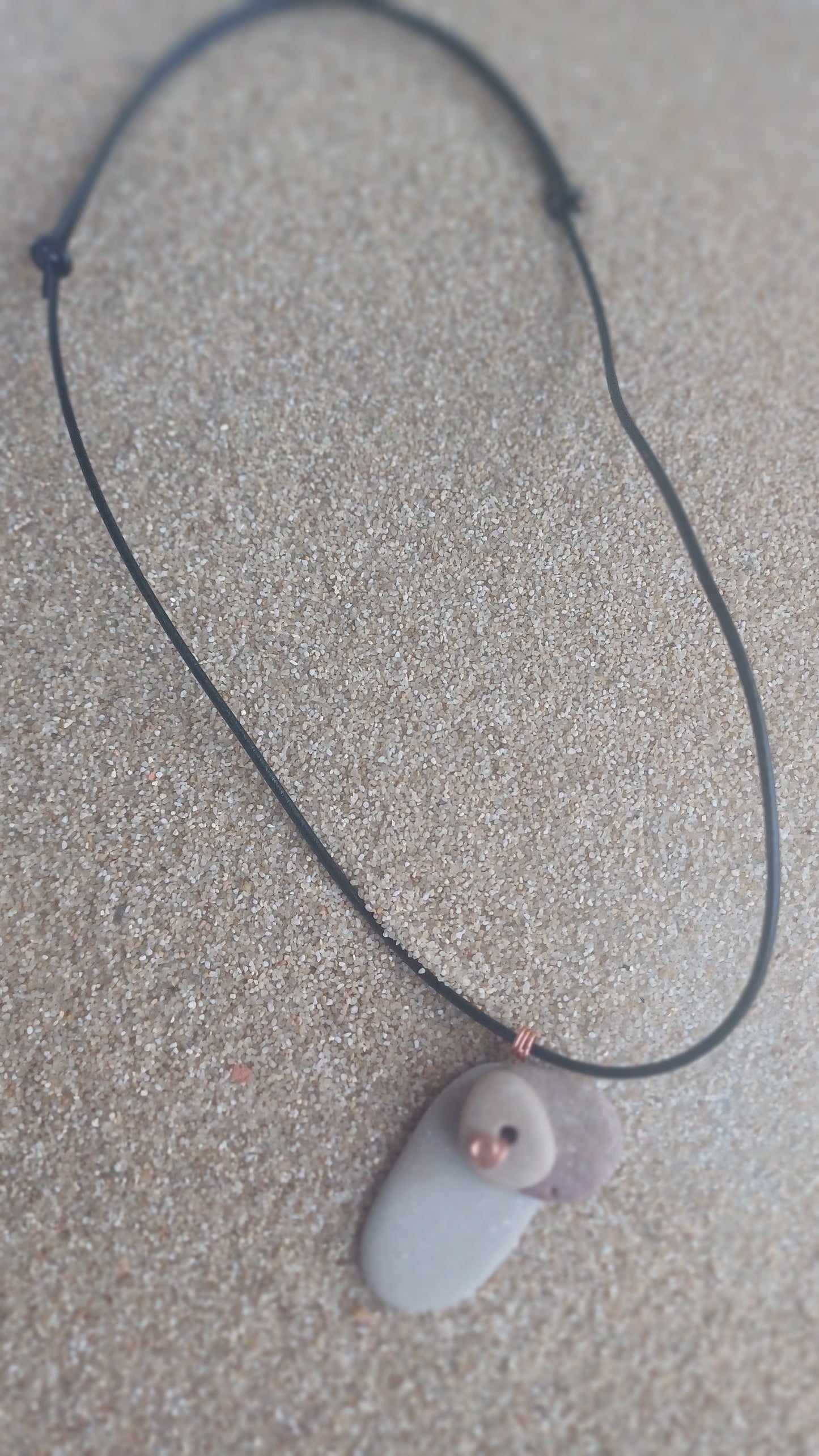 - 3 40mm x 25mm beach stones with 66cm adjustable leather rope.