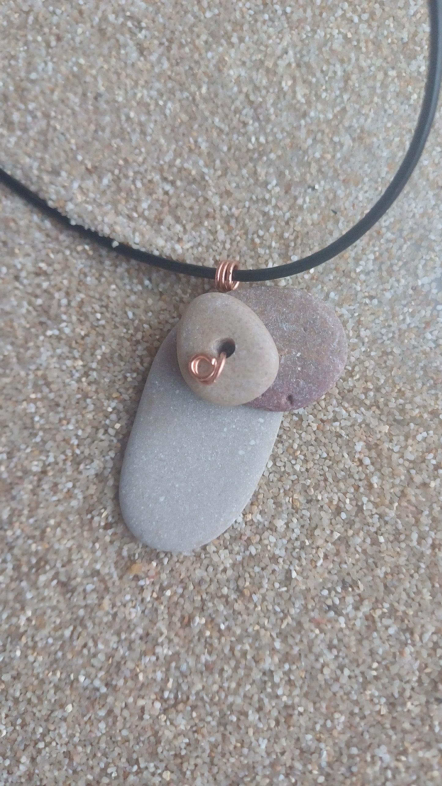 - 3 Piedras de playa con cuerda de piel ajustable de 66cm.