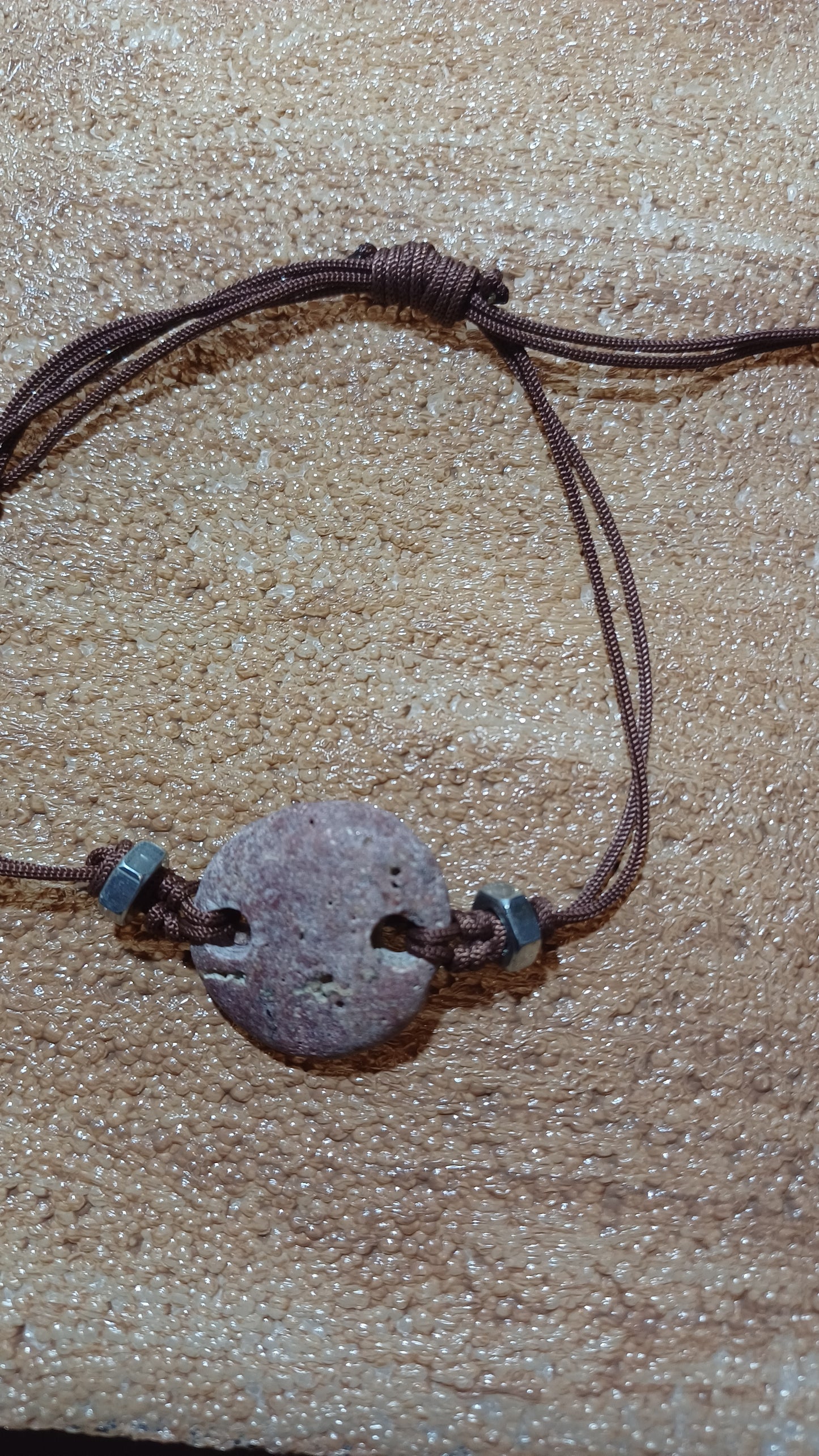 -Bracelet with beach stone and stainless steel with 30 cm brown rope.