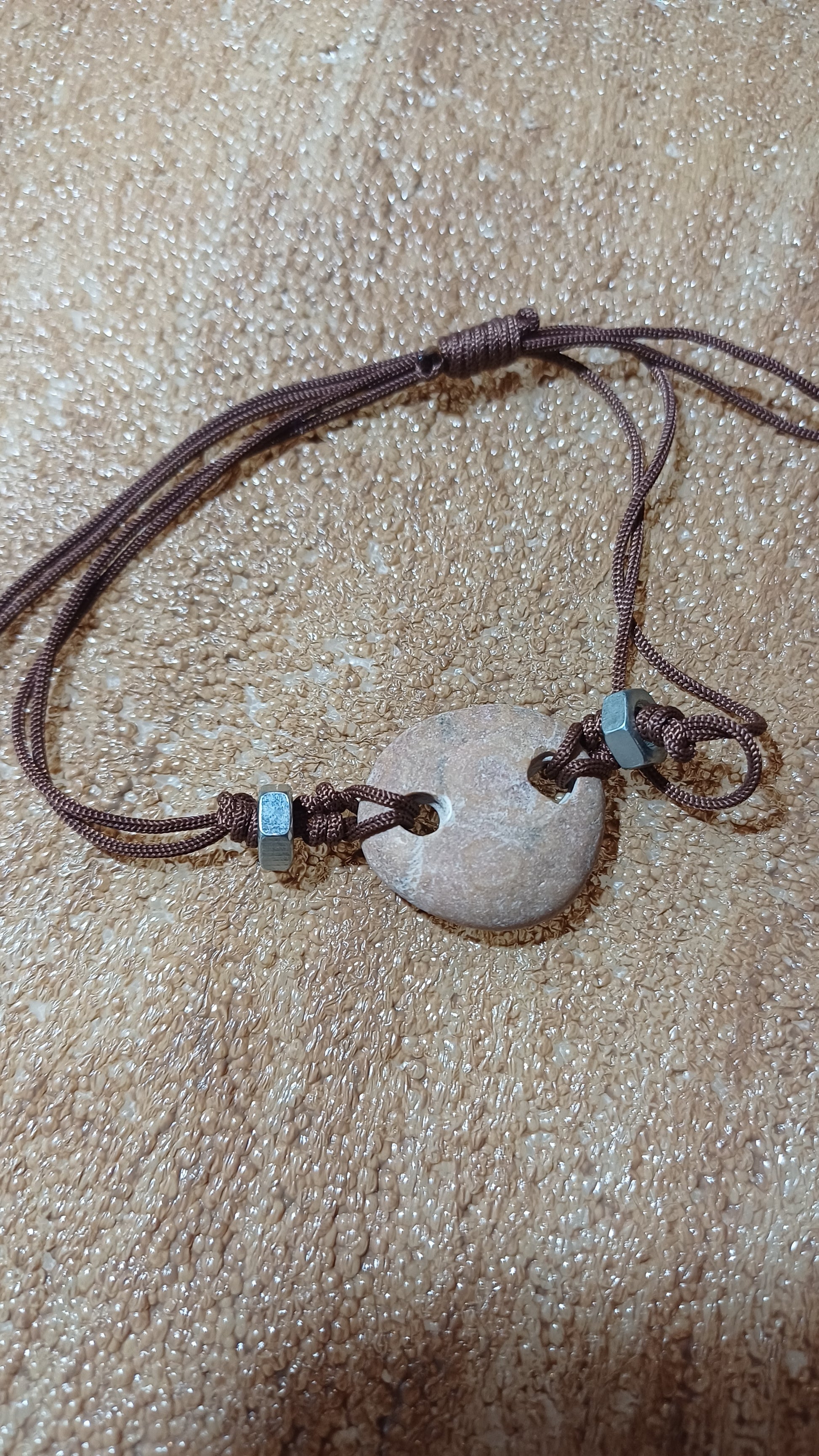 -Bracelet with beach stone and stainless steel with 30 cm brown rope.