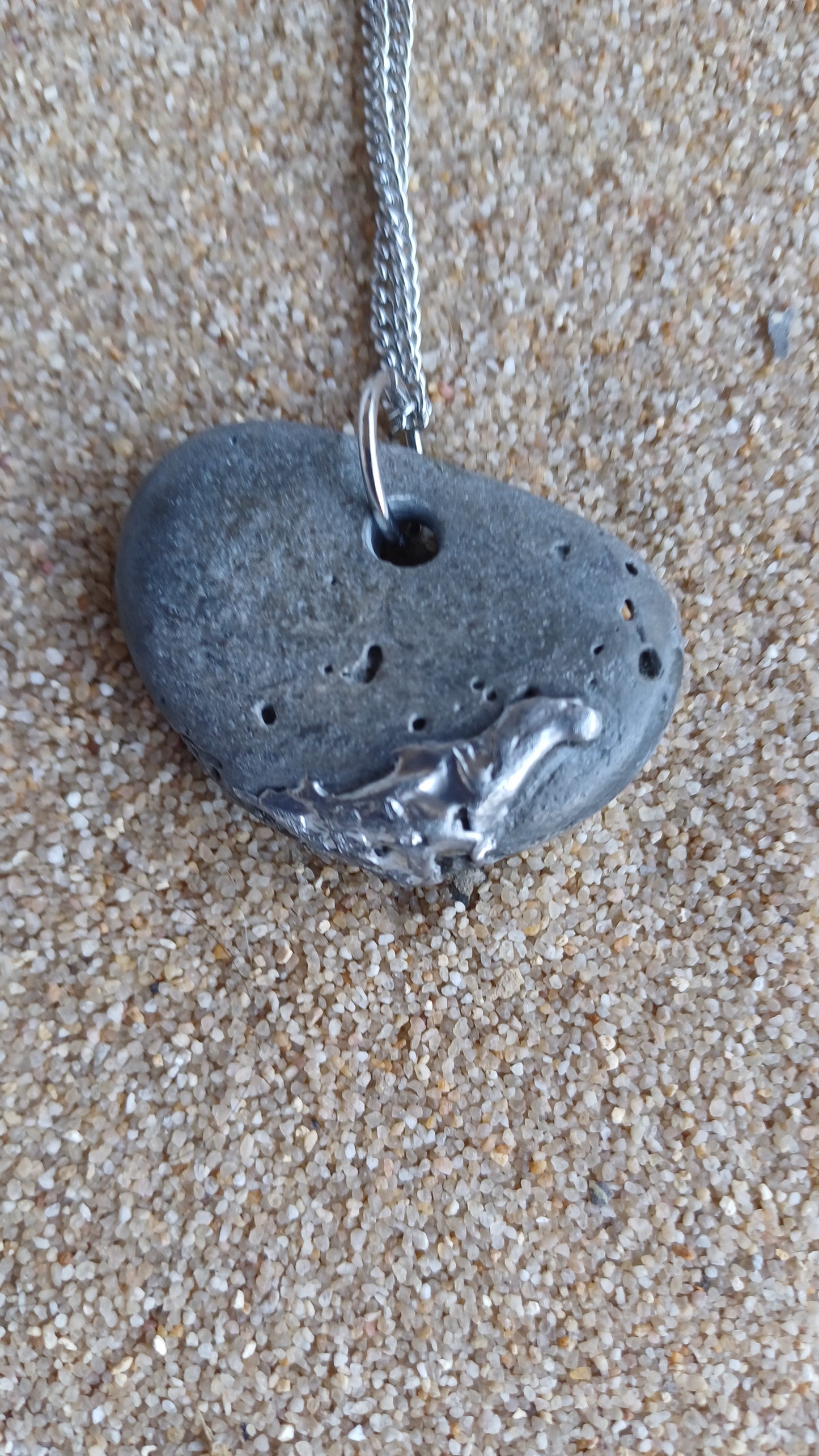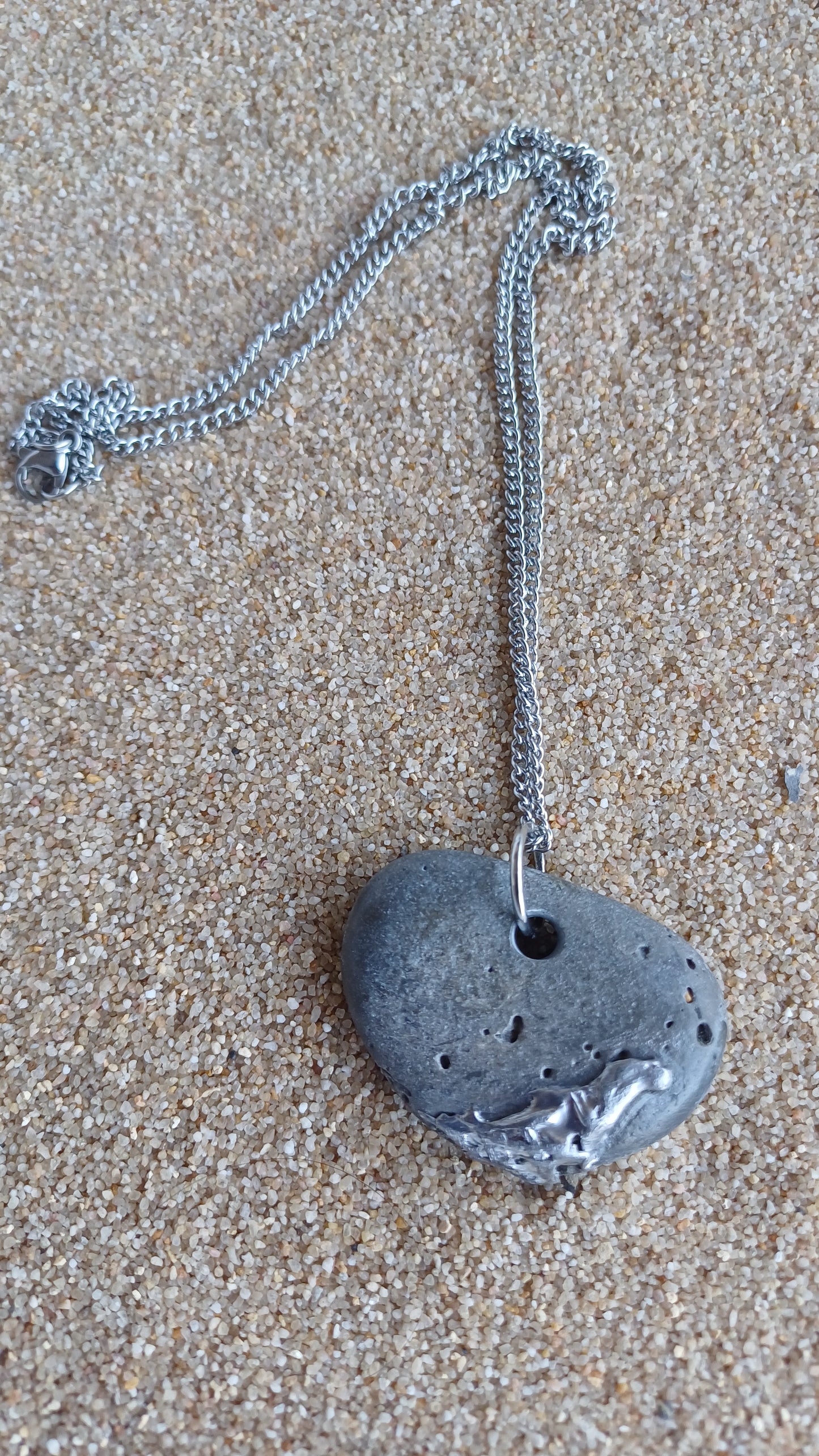 -30mm x 40mm beach stone embedded with 52cm stainless steel chain.