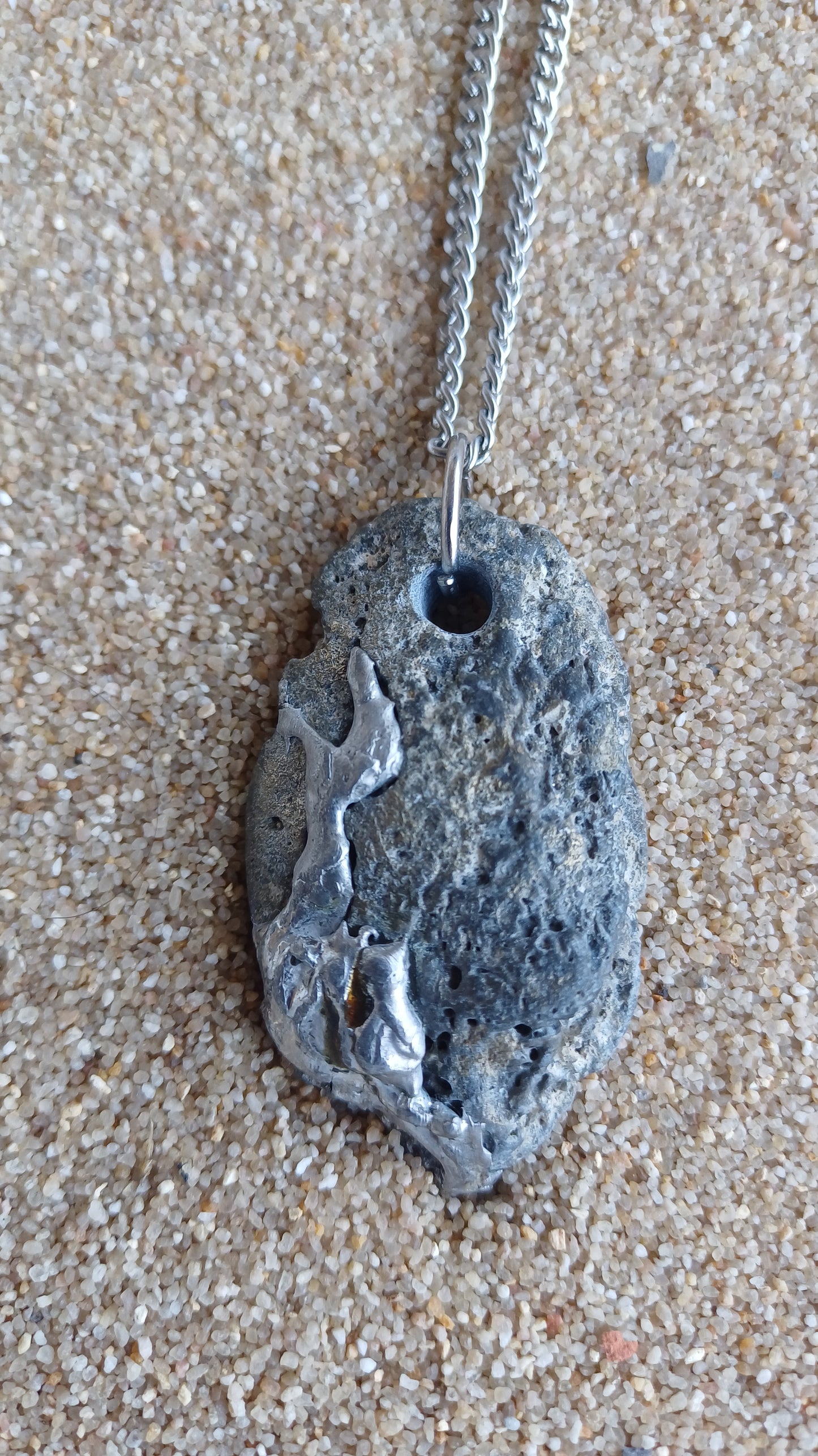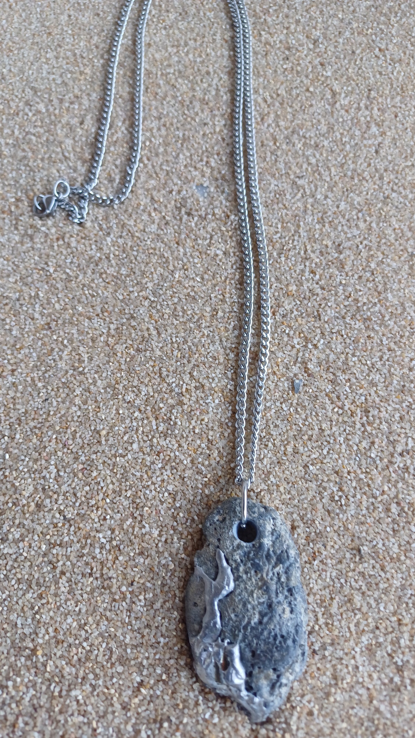 -55mm x 30mm beach stone embedded with 64cm stainless steel chain.