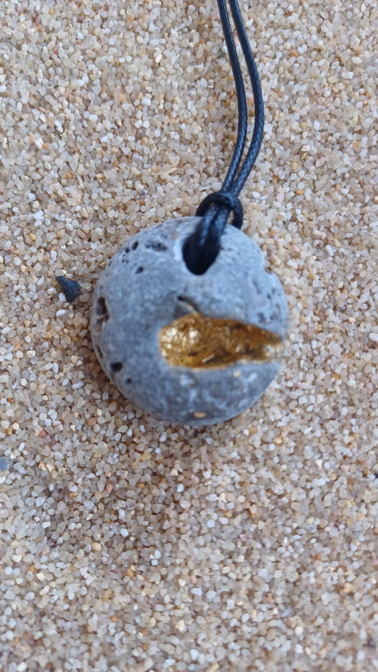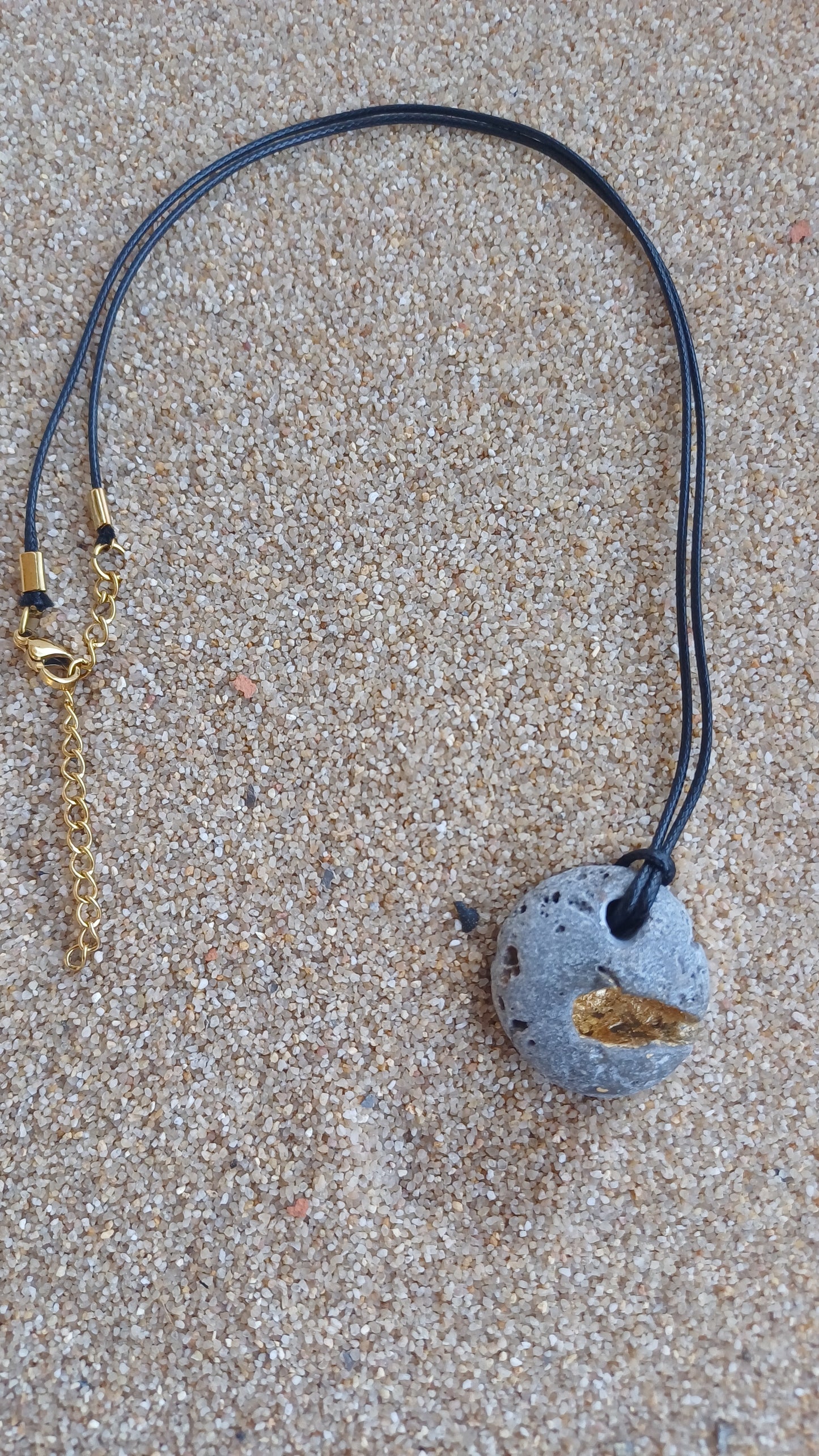 -Piedra de playa con pan de oro de 25mm x 25mm en cadena con cierre de acero inoxidable de 52 cm.