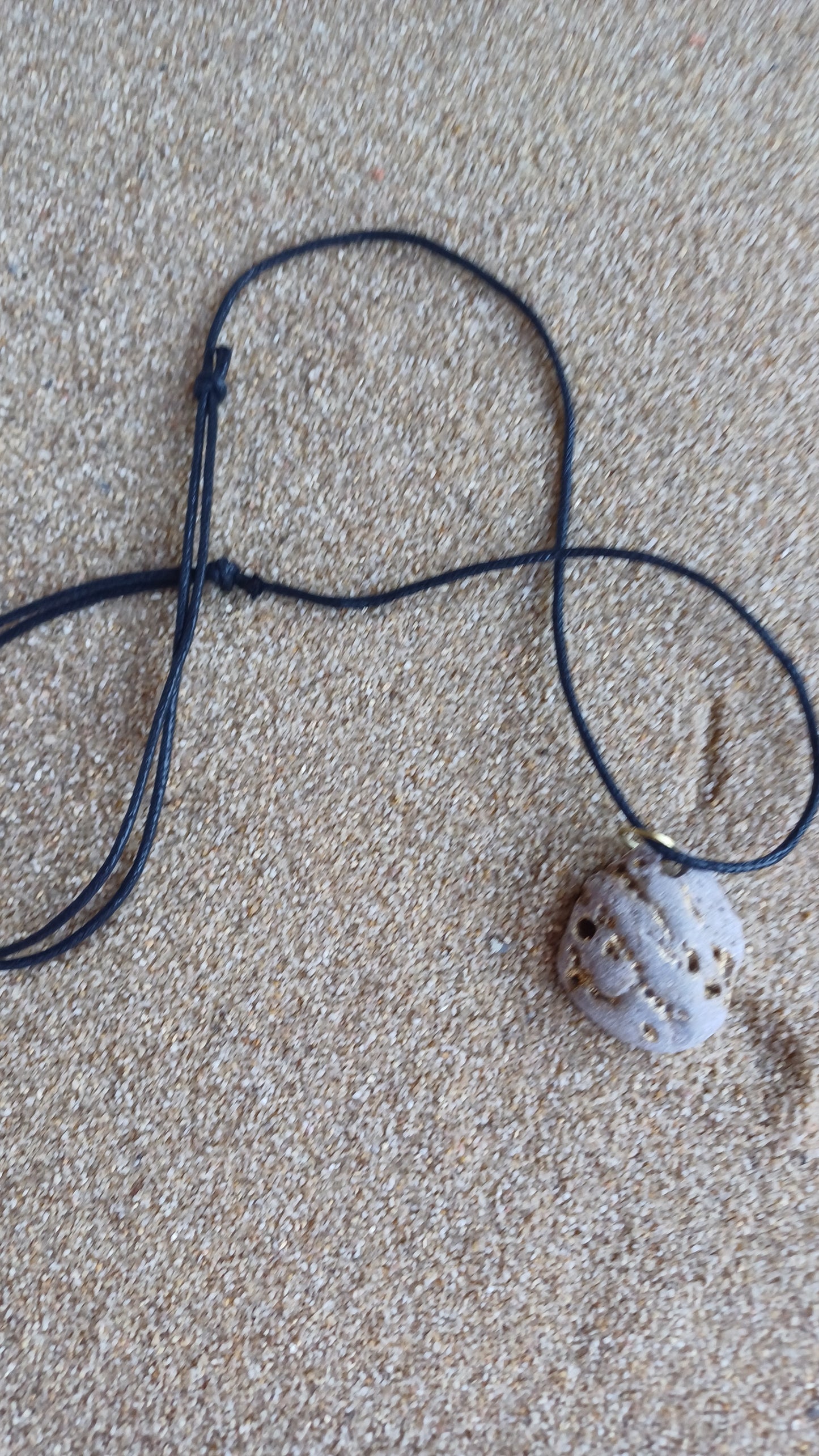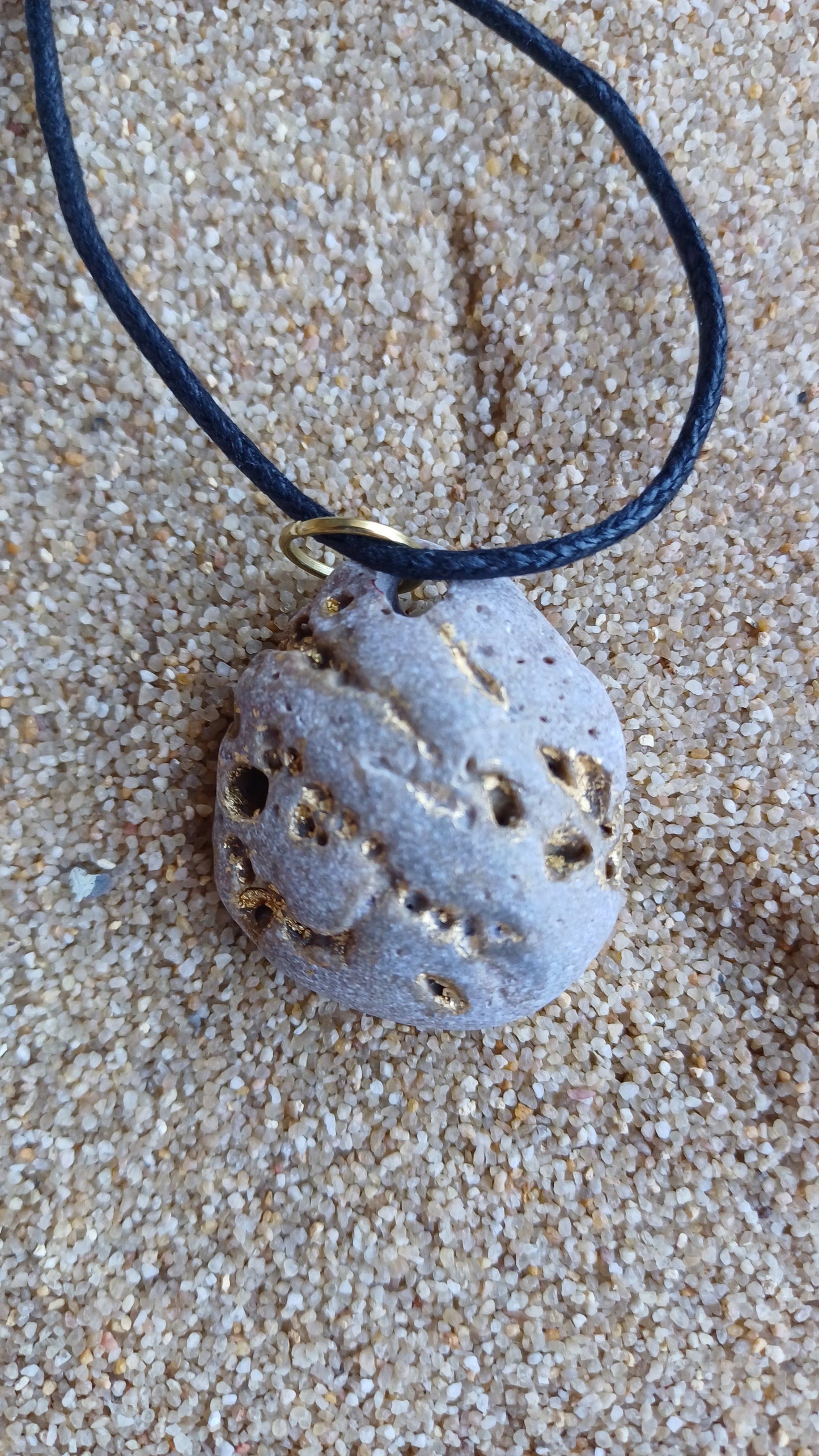 -Collar de piedra de 35mm x 30mm de con pan de oro en cuerda ajustable de 66cm.
