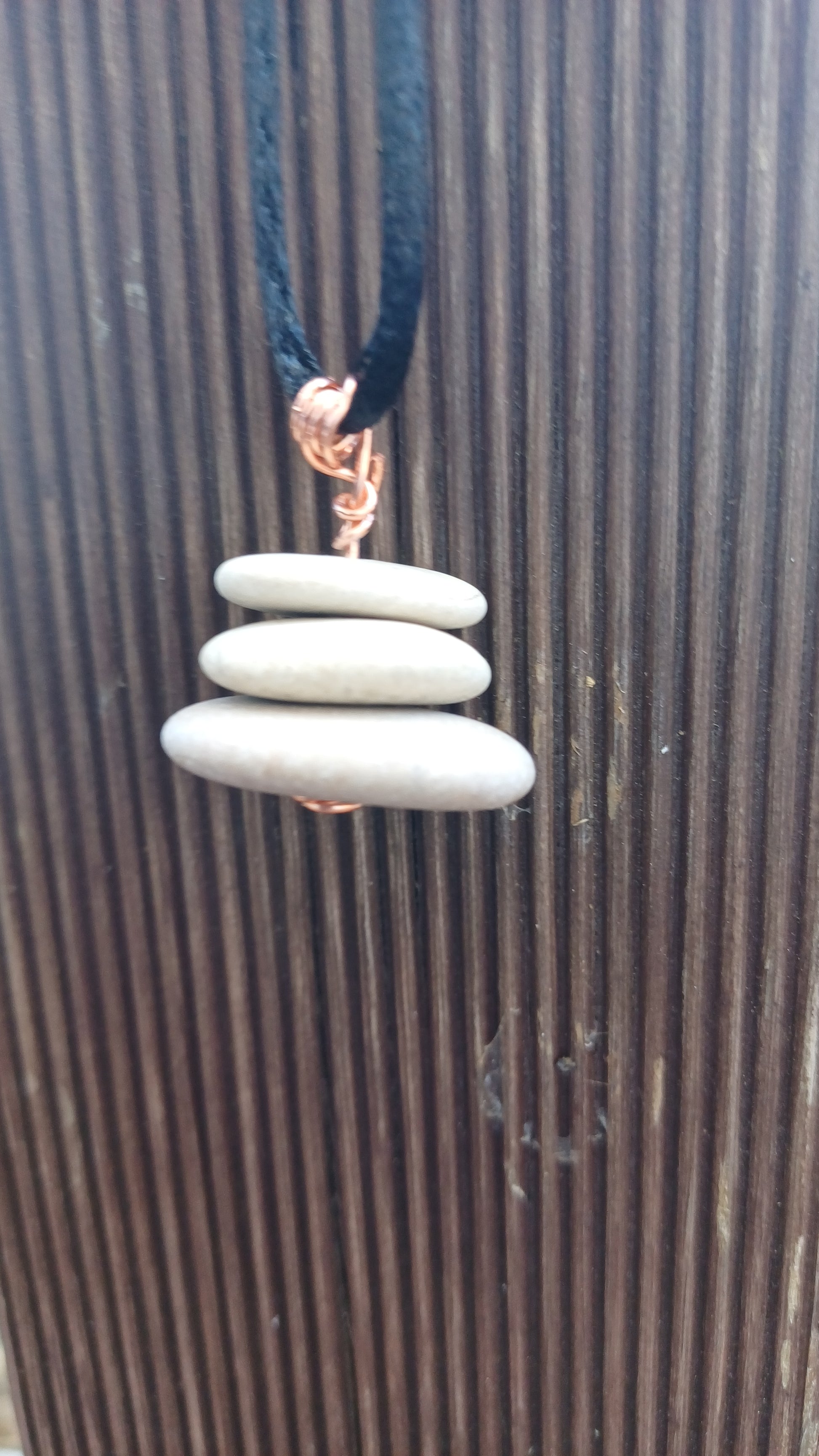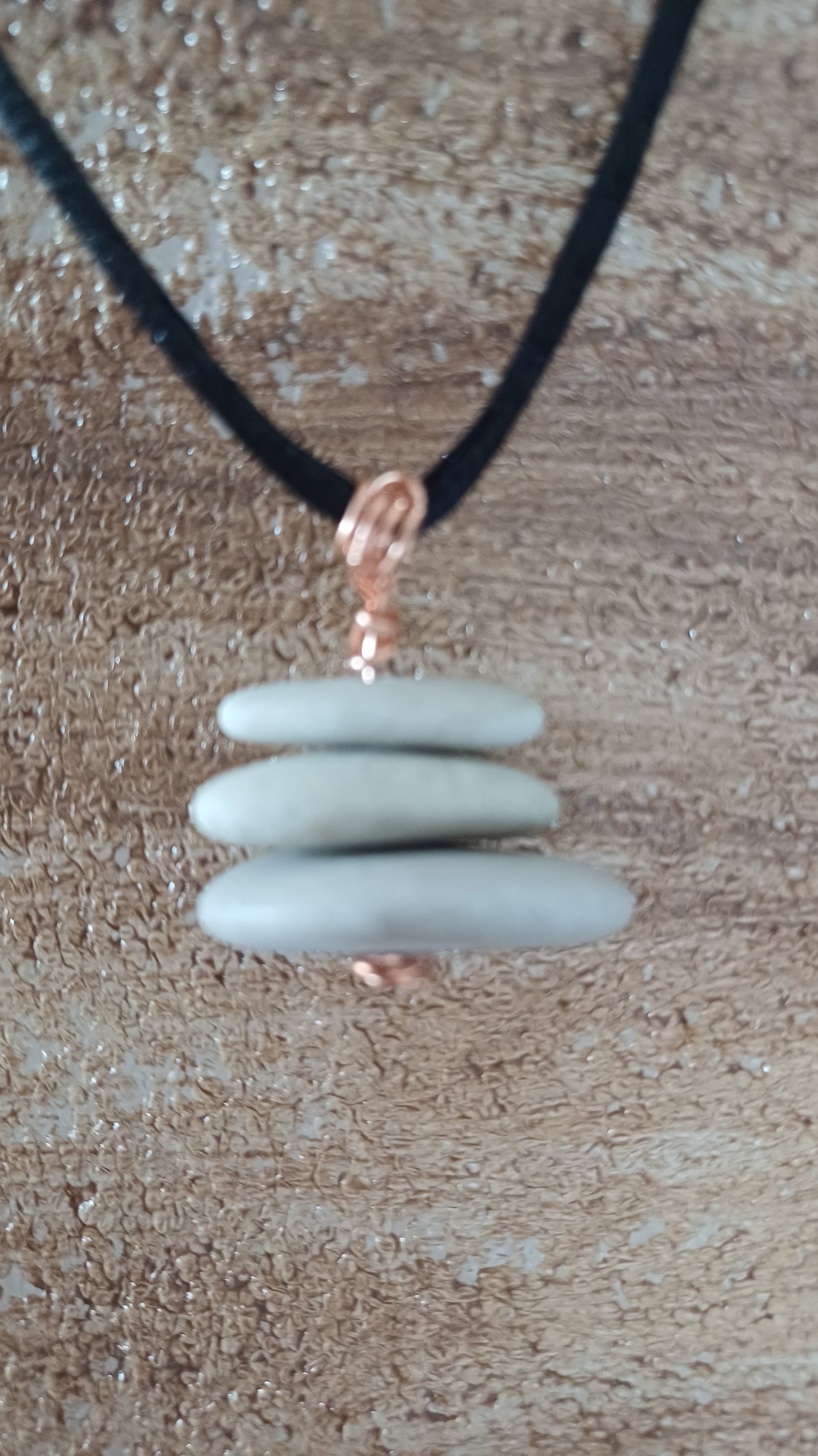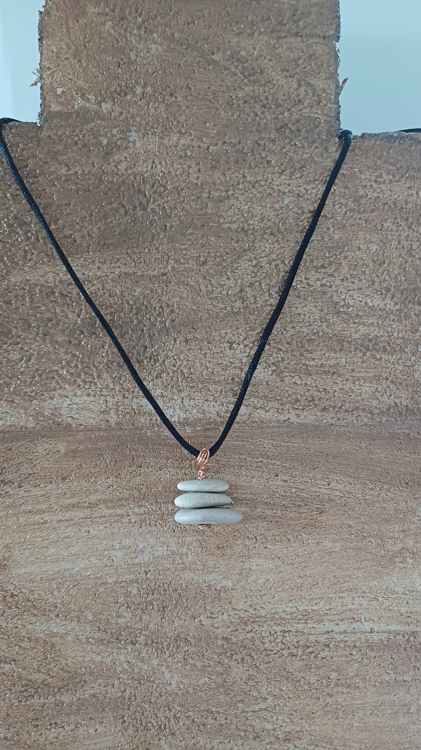 -Copper necklace with 3 beach stones 20mm x 25mm with 64 cm adjustable rope.