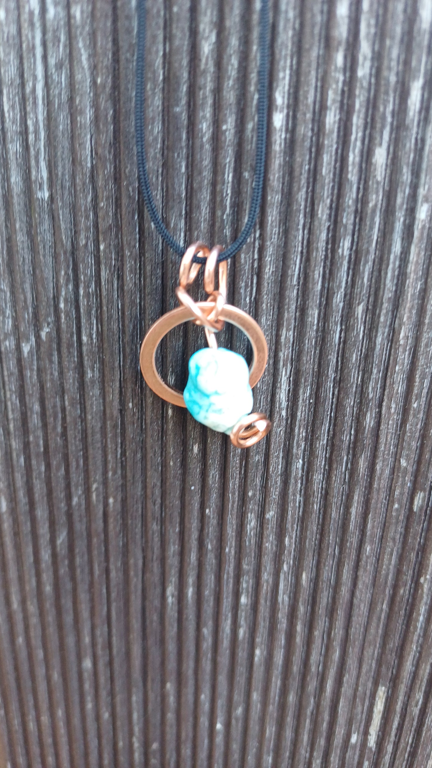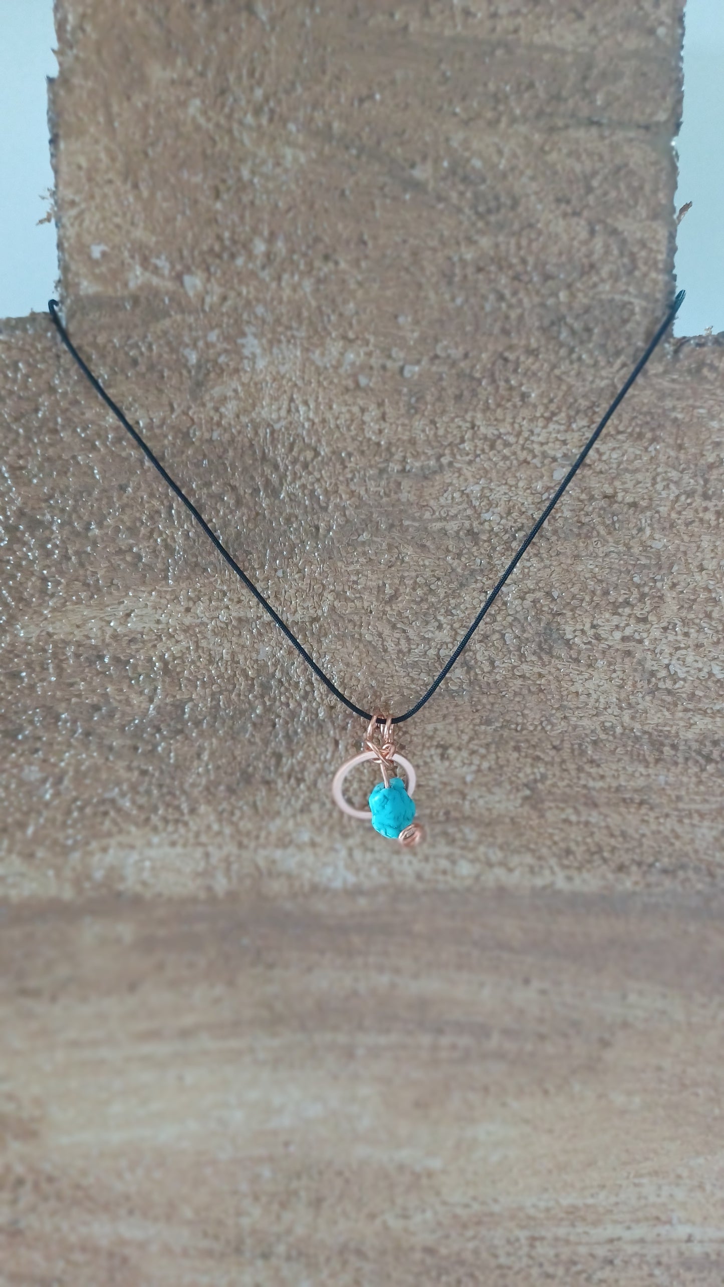 -Collar de cobre con turquesa 22mm x 20mm con cuerda adjustable de 64 cm.