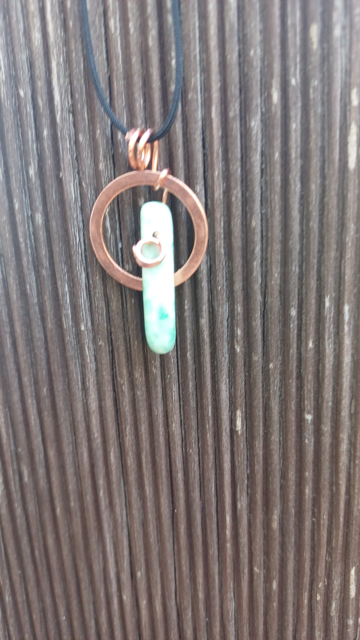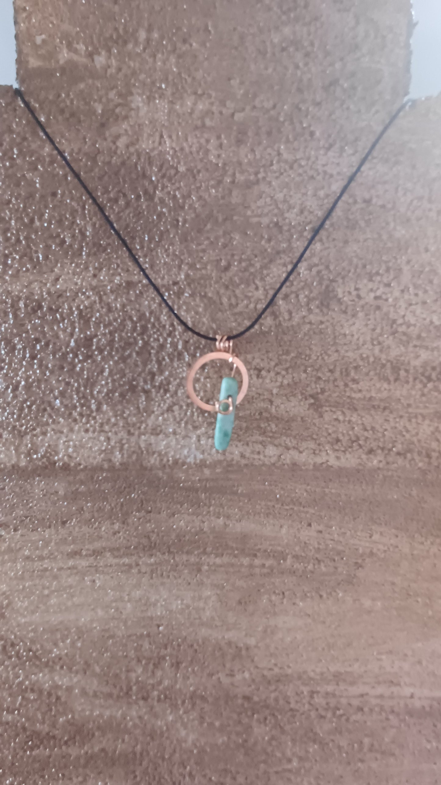 -Collar de cobre con amazonita 22mm x 20mm con cuerda adjustable de 64 cm.