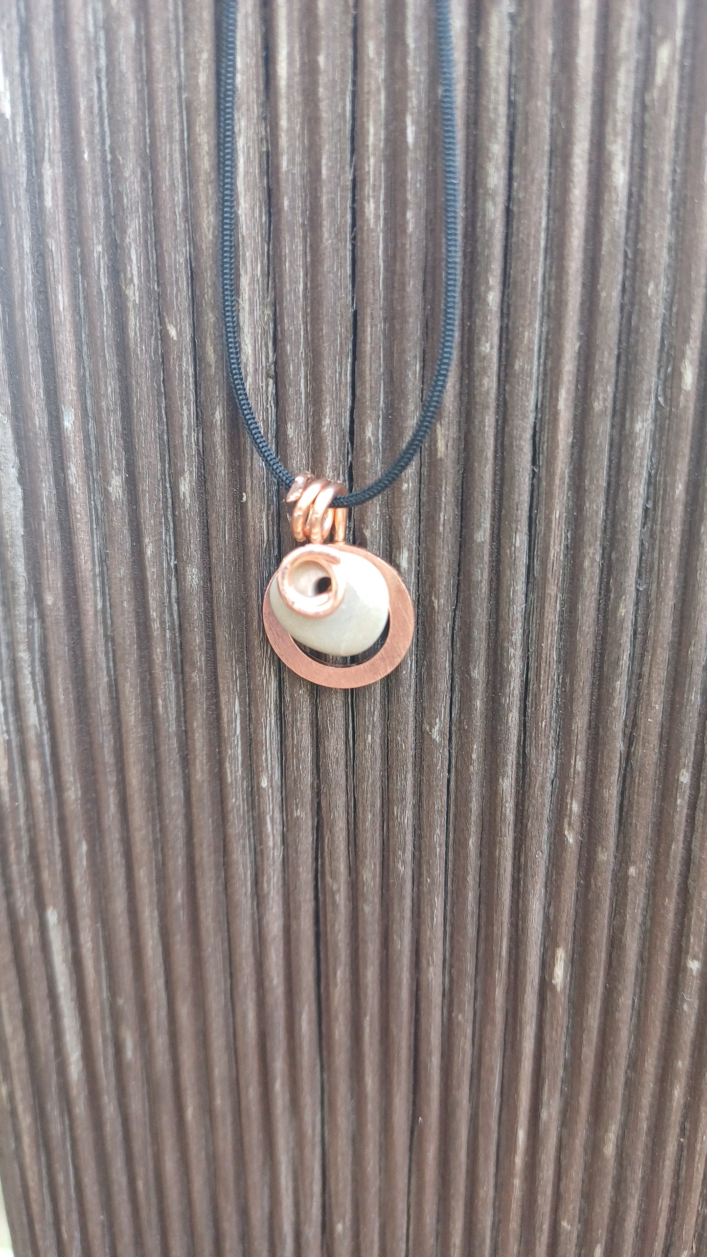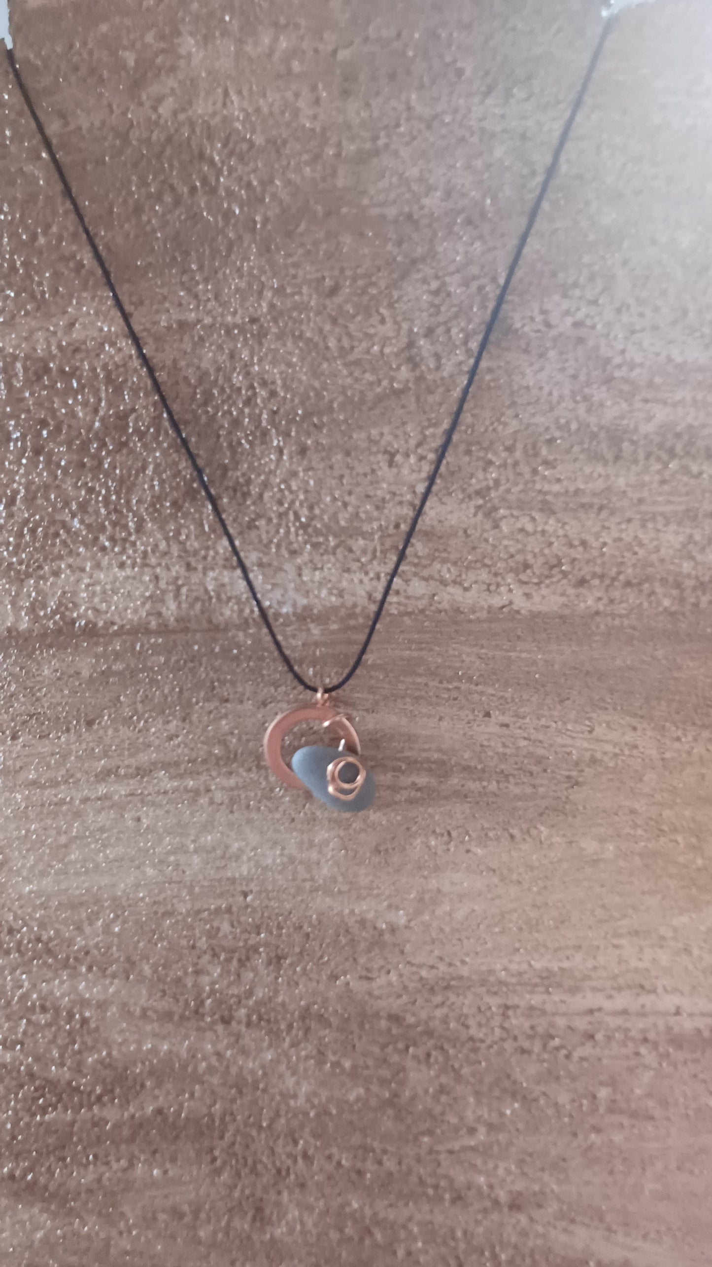 -Copper necklace with 10mm x 10mm beach stone with 64 cm adjustable rope.