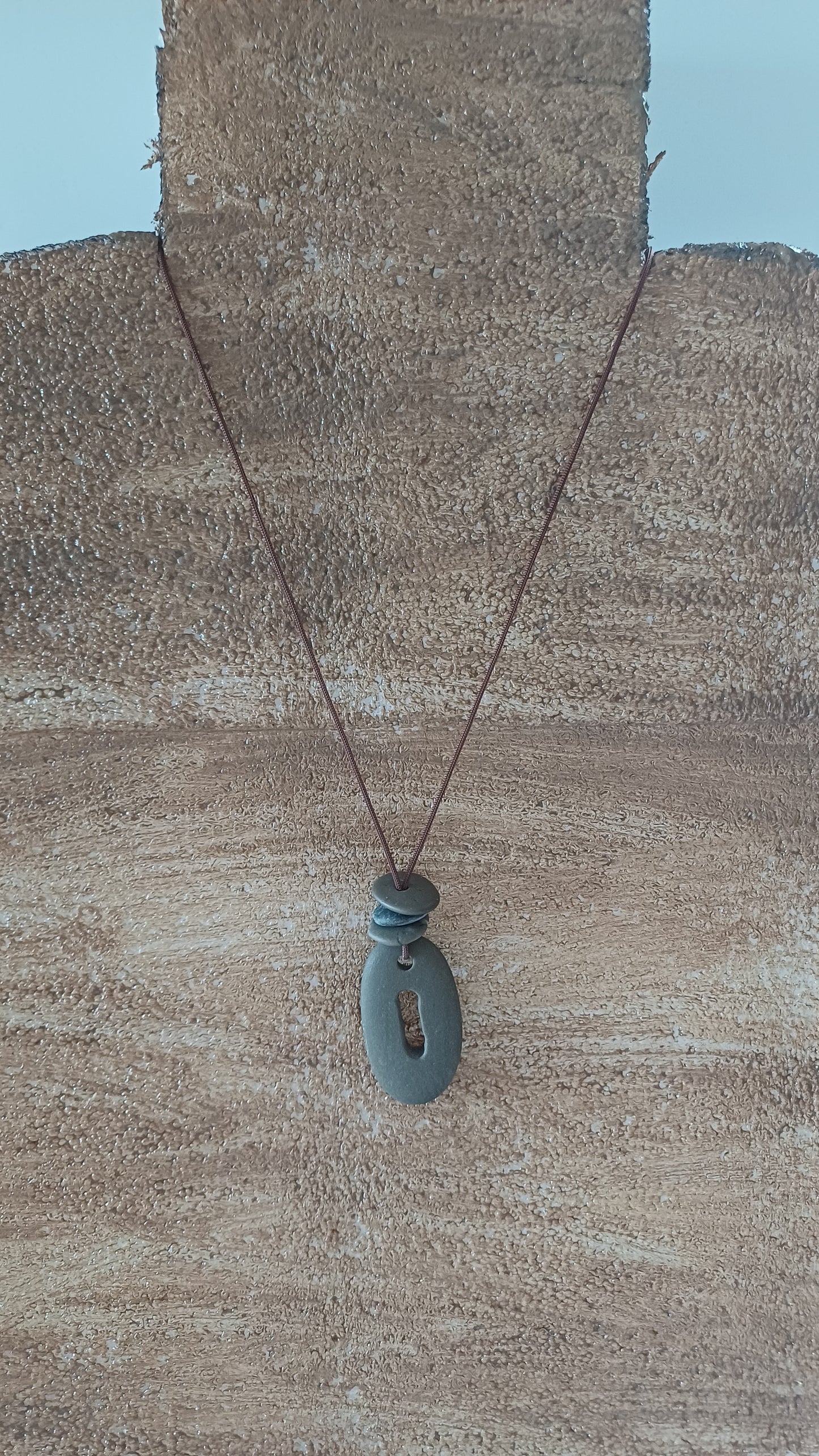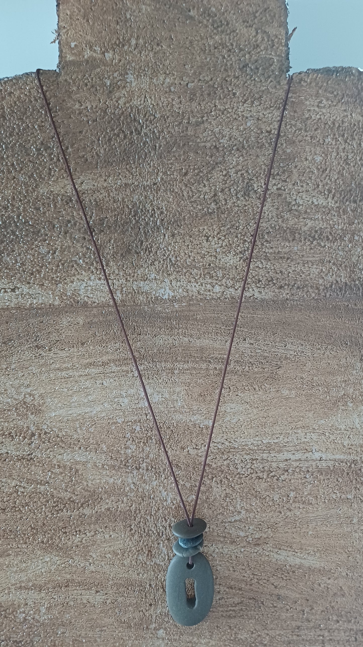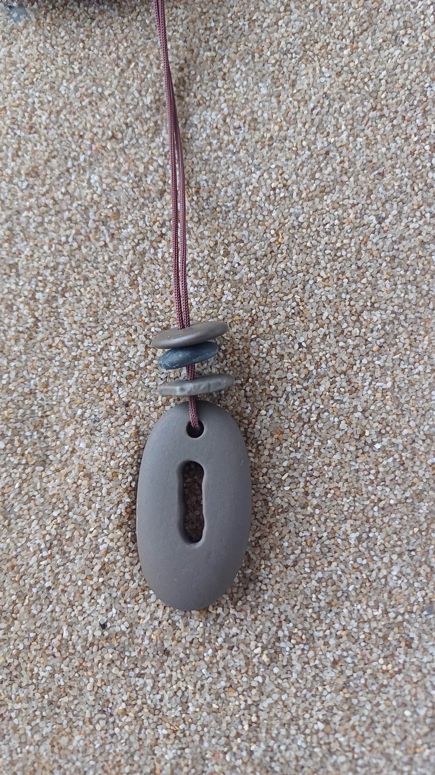 -Necklace with 4 beach stones 60mm x 25mm hand-carved and with an 82 cm adjustable rope.