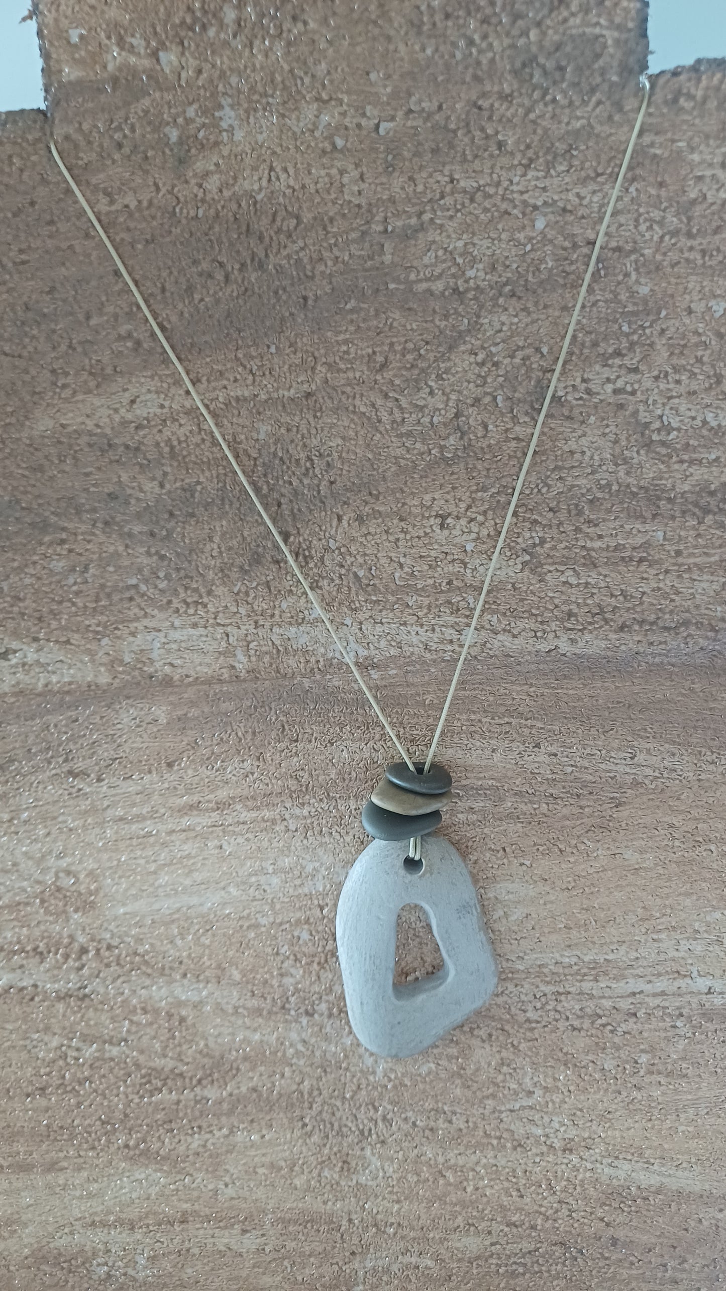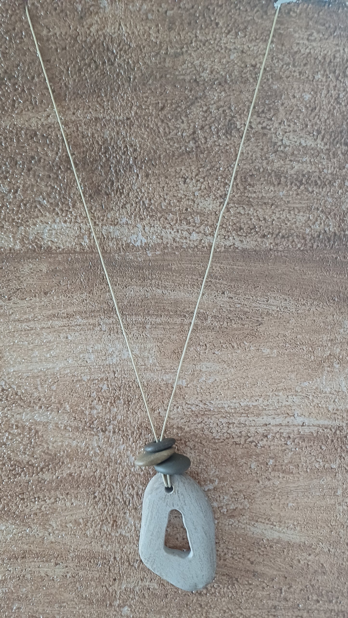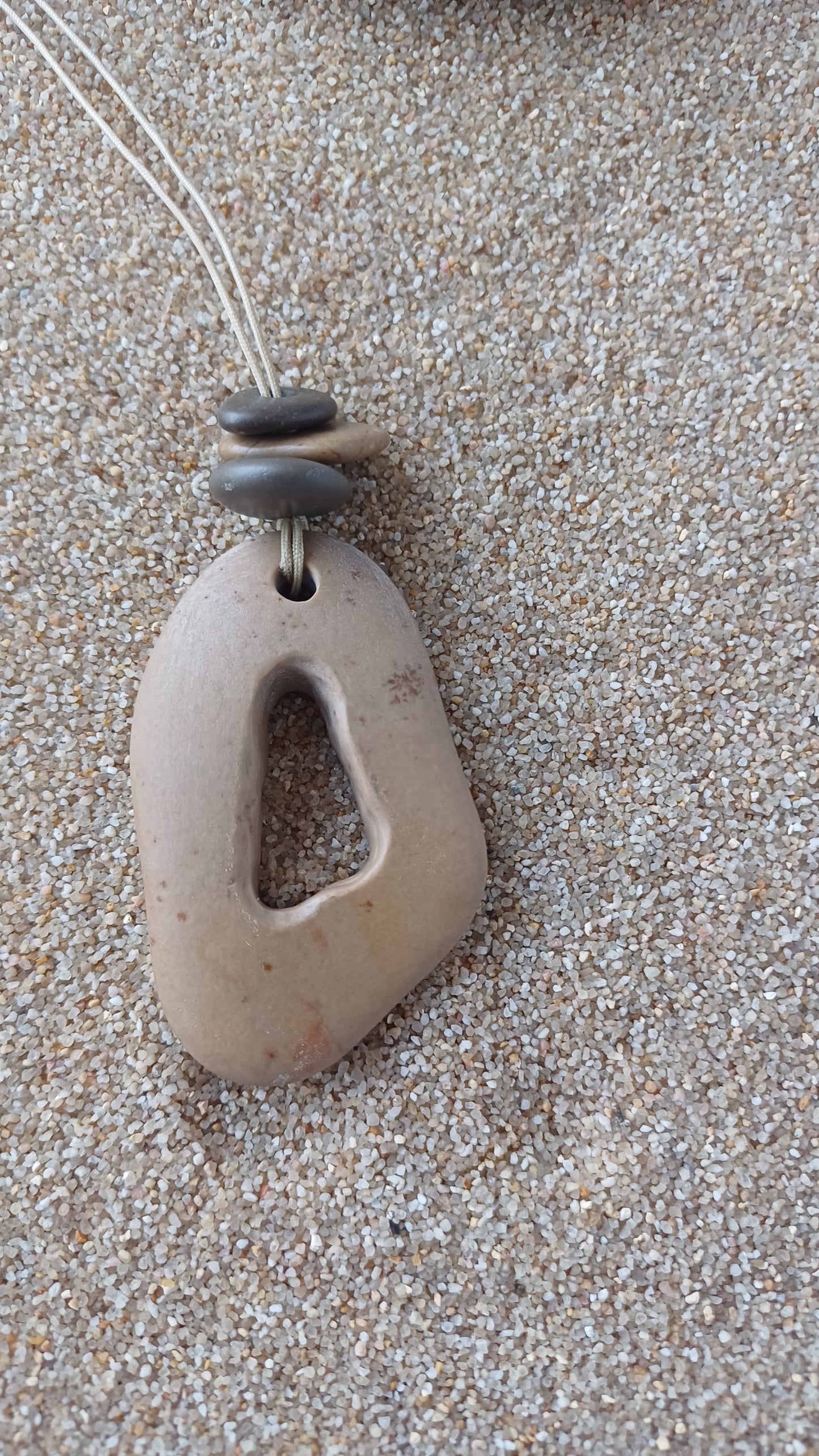 -Necklace with 4 beach stones 70mm x 35mm hand-carved and with an 82 cm adjustable rope.
