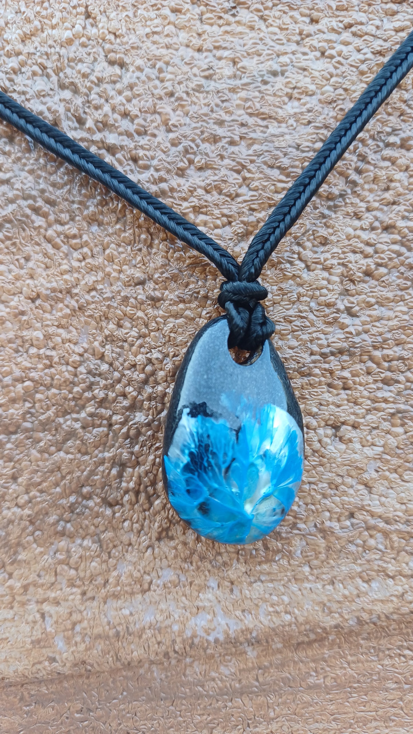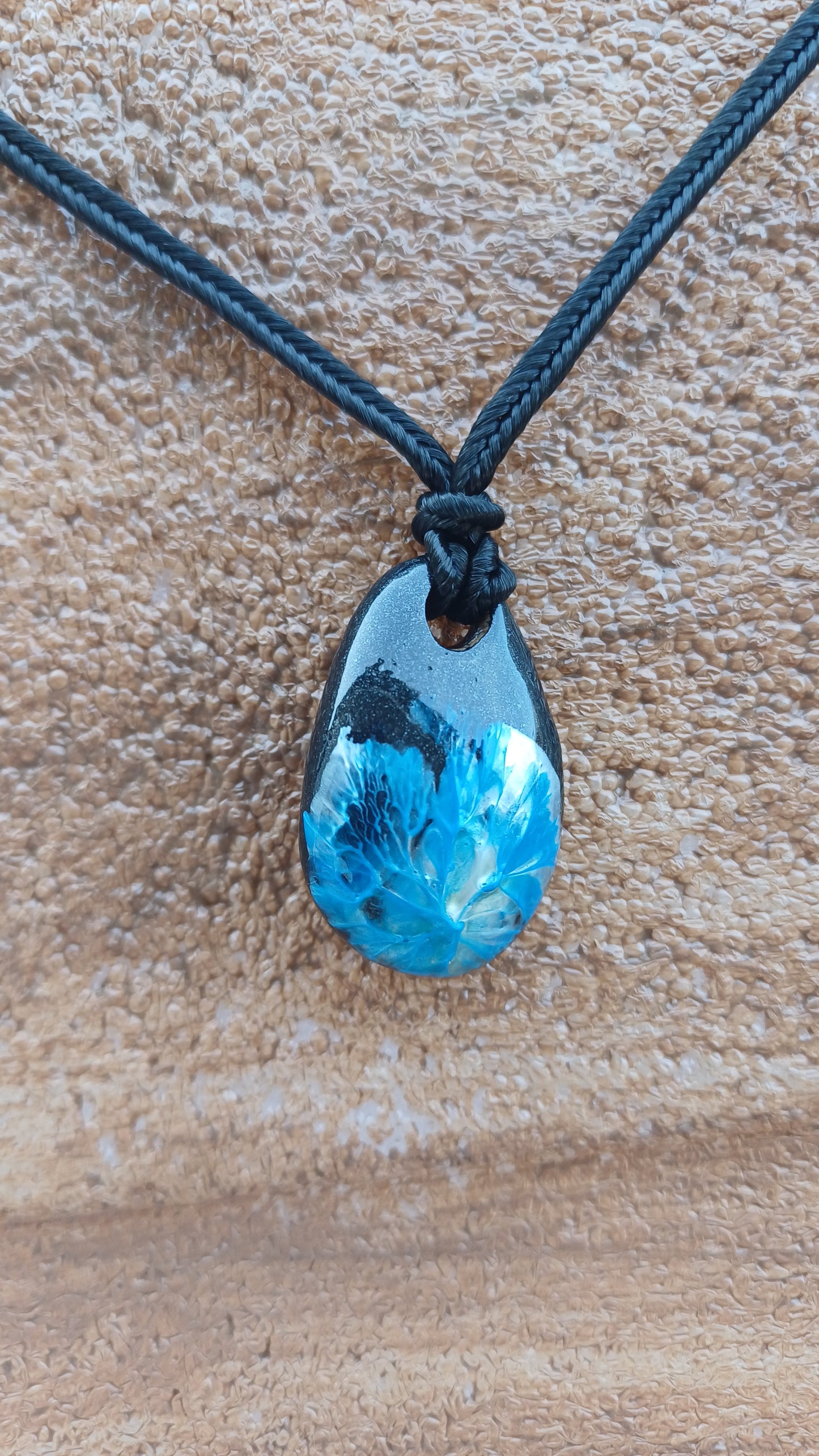 -Hand painted stone 33mm x 2mm. with 66 cm adjustable rope.
