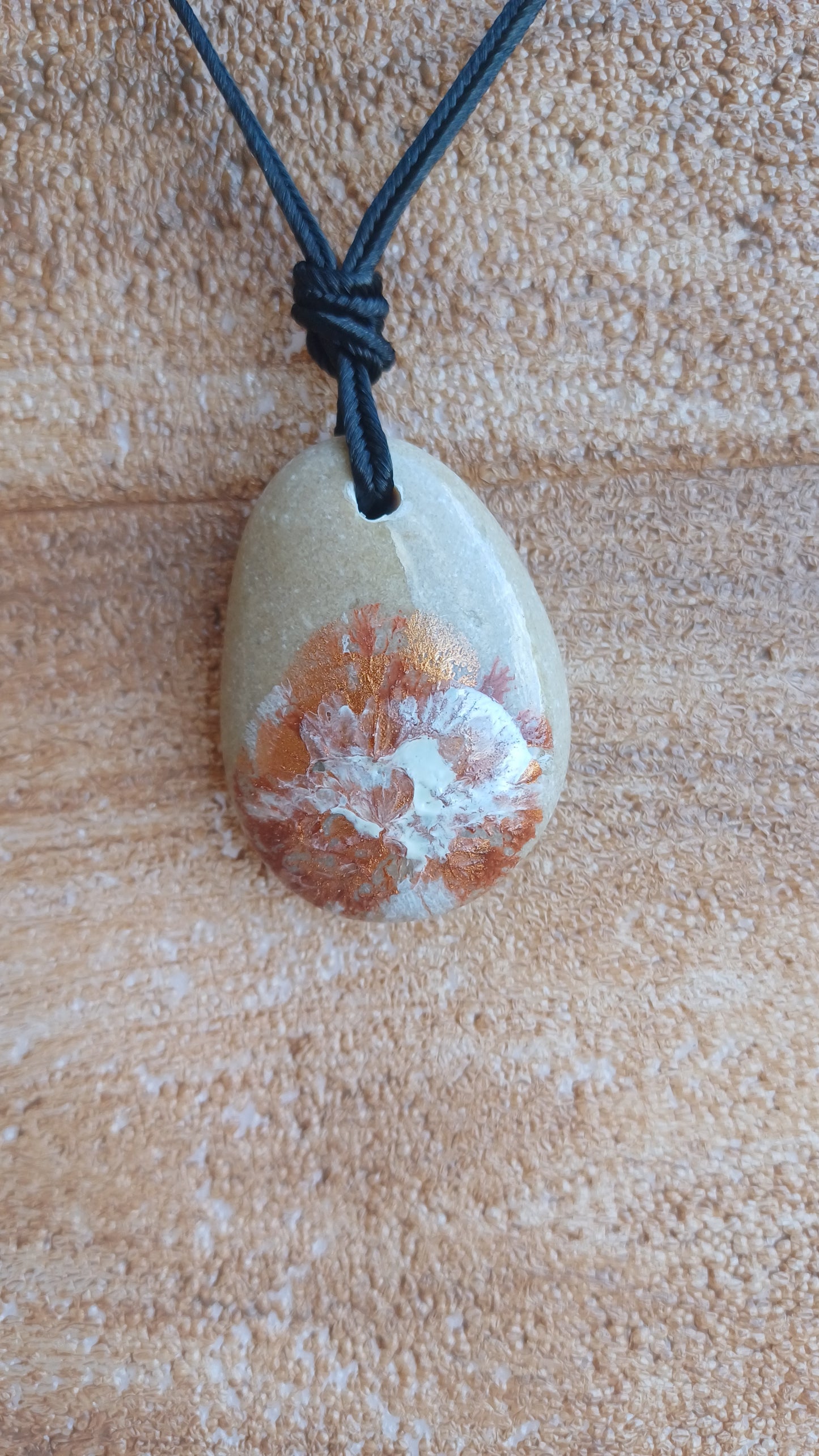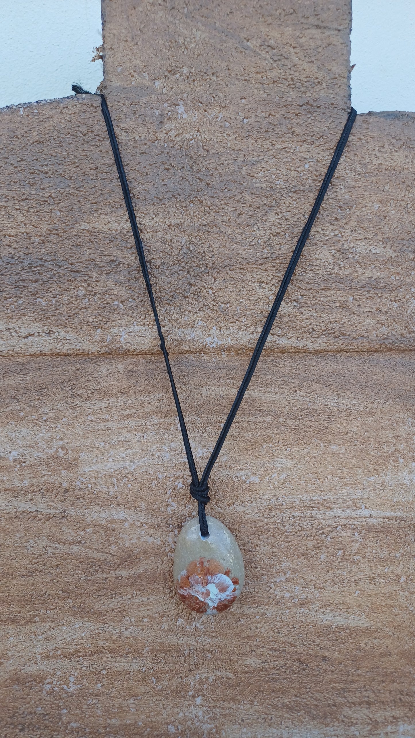 -Hand painted stone 45mm x 35mm. with 66 cm adjustable rope.