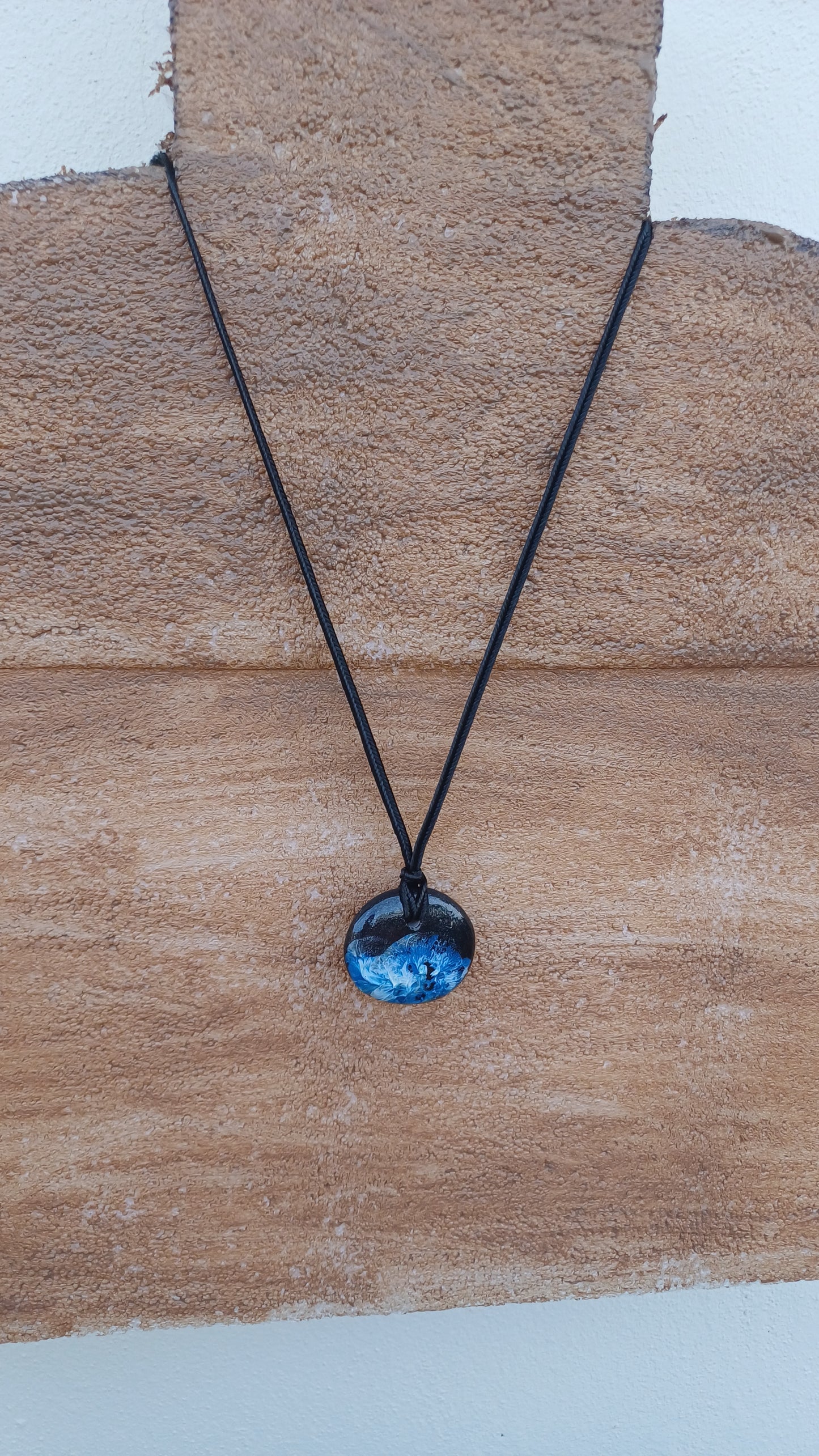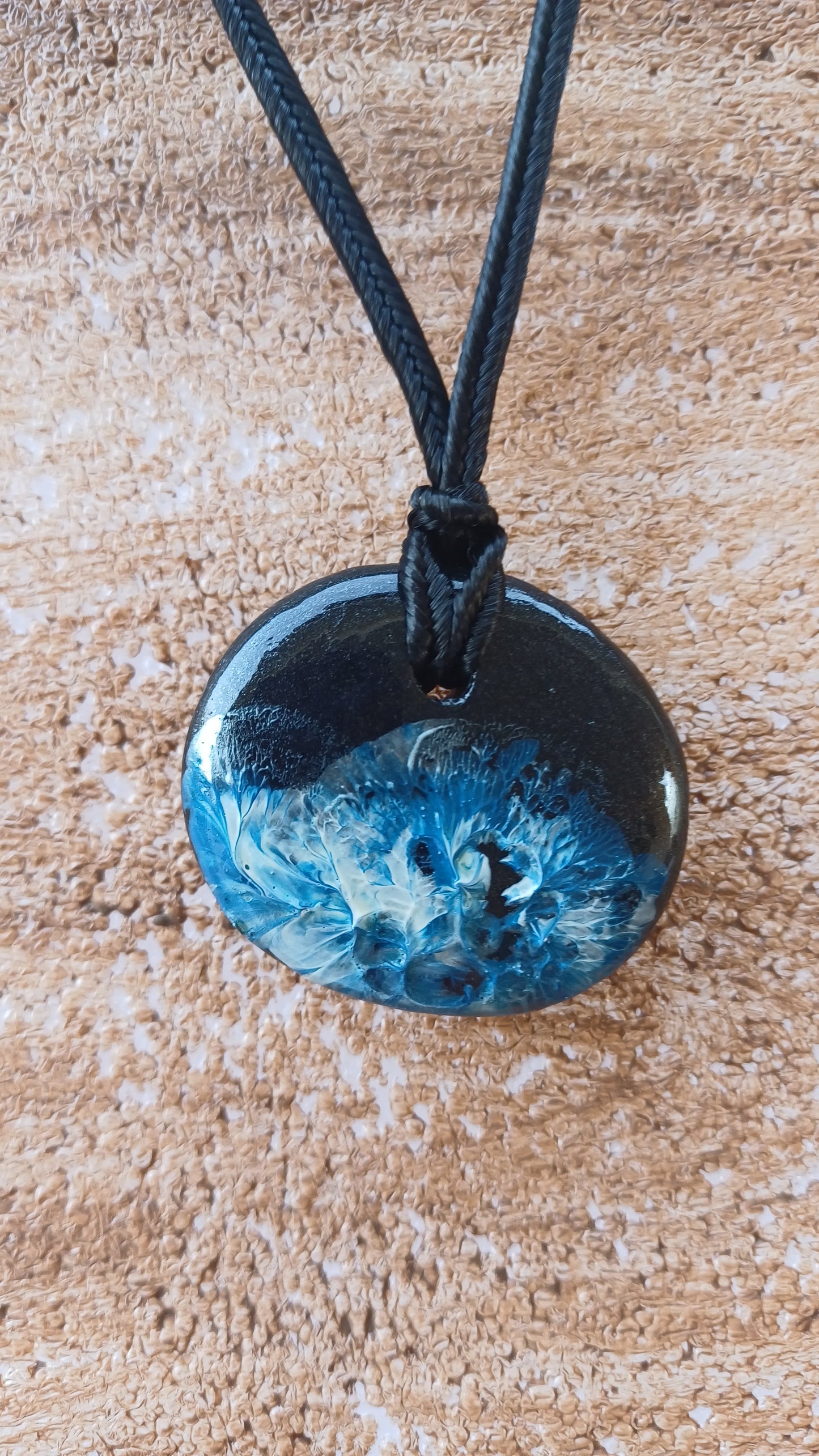 -Hand painted stone 38mm x 32mm. with 66 cm adjustable rope.