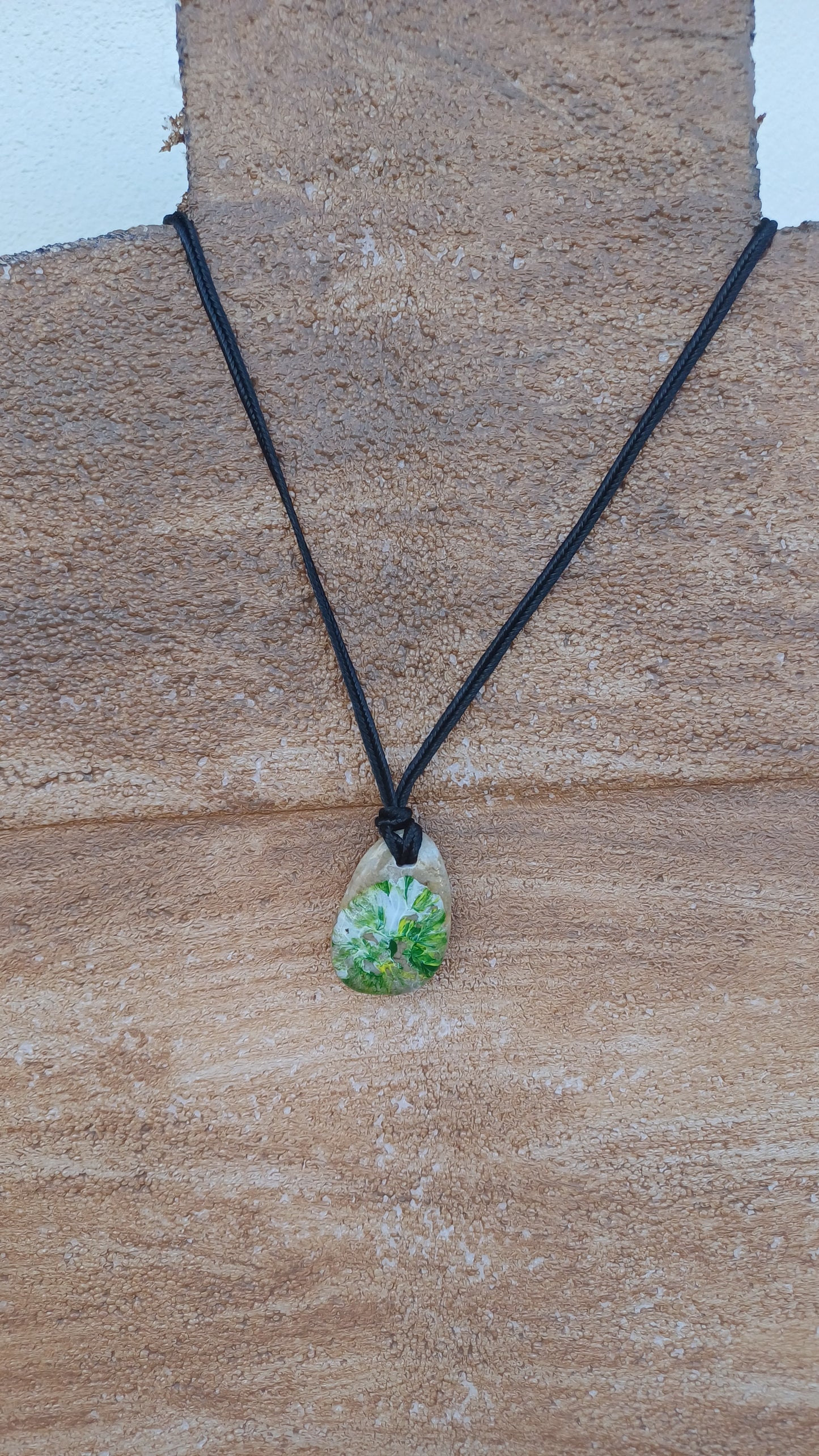 -Hand painted stone 32mm x 25mm. with 66 cm adjustable rope.