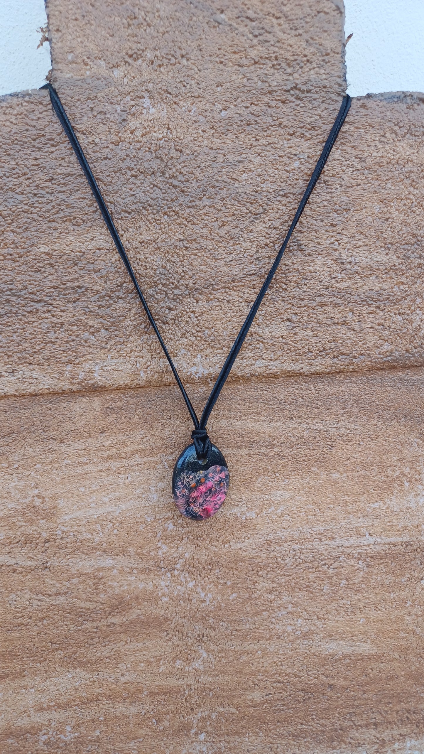 -Hand painted stone 33mm x 25mm. with 66 cm adjustable rope.