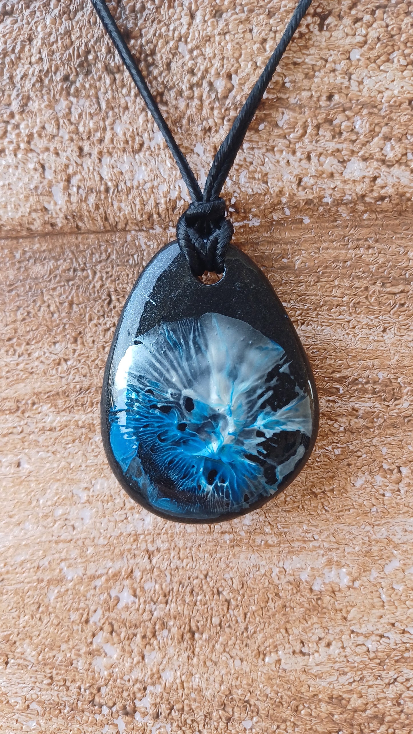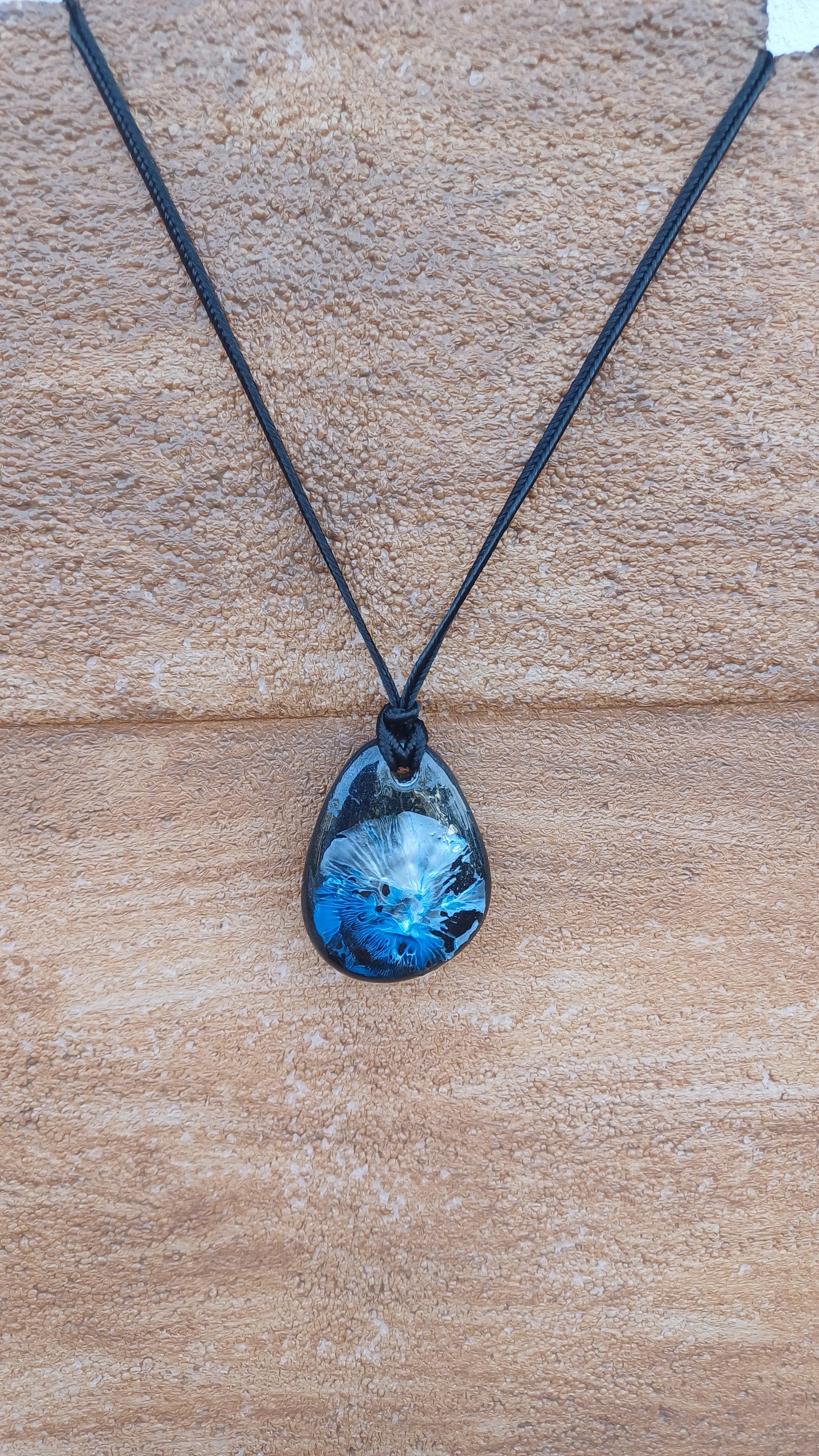 -Hand painted stone 46mm x 35mm. with 66 cm adjustable rope.