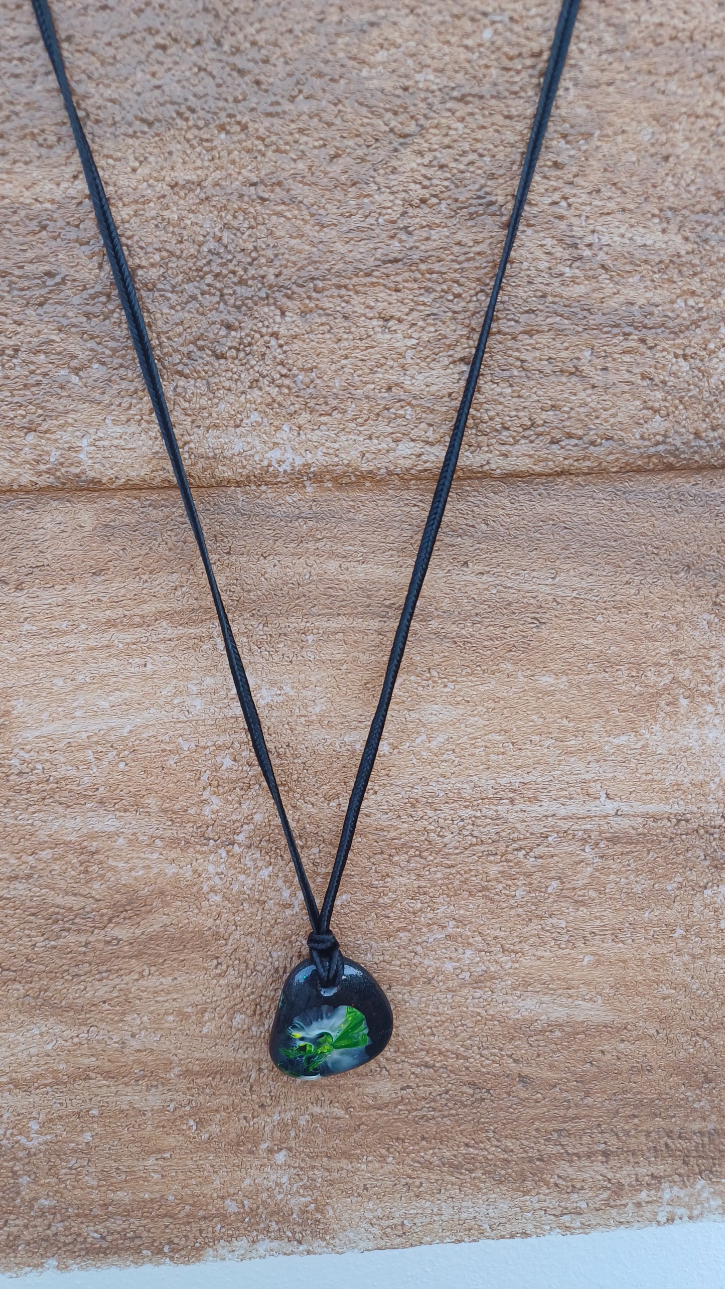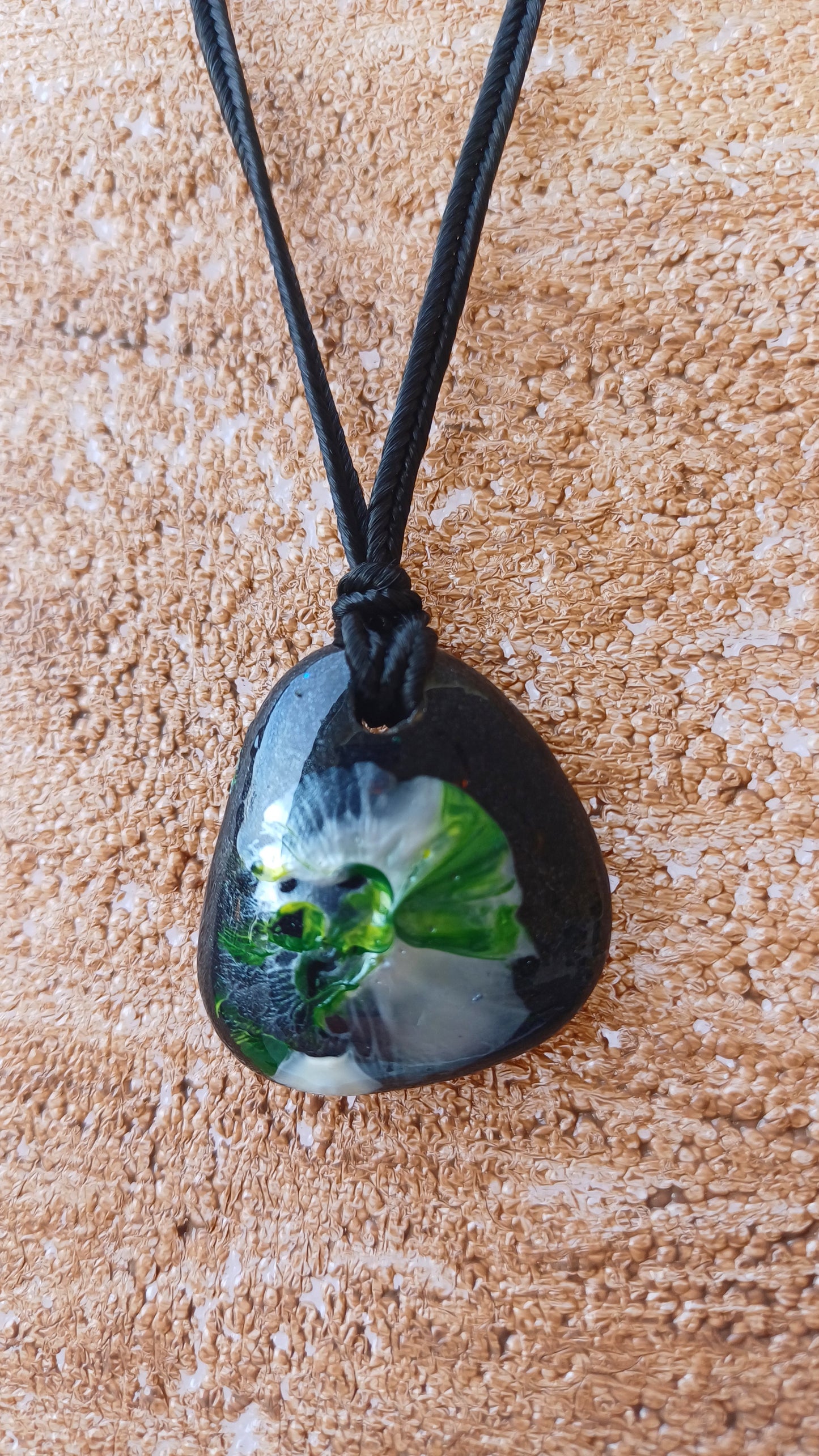 -Hand painted stone 34mm x 30mm. with 66 cm adjustable rope.