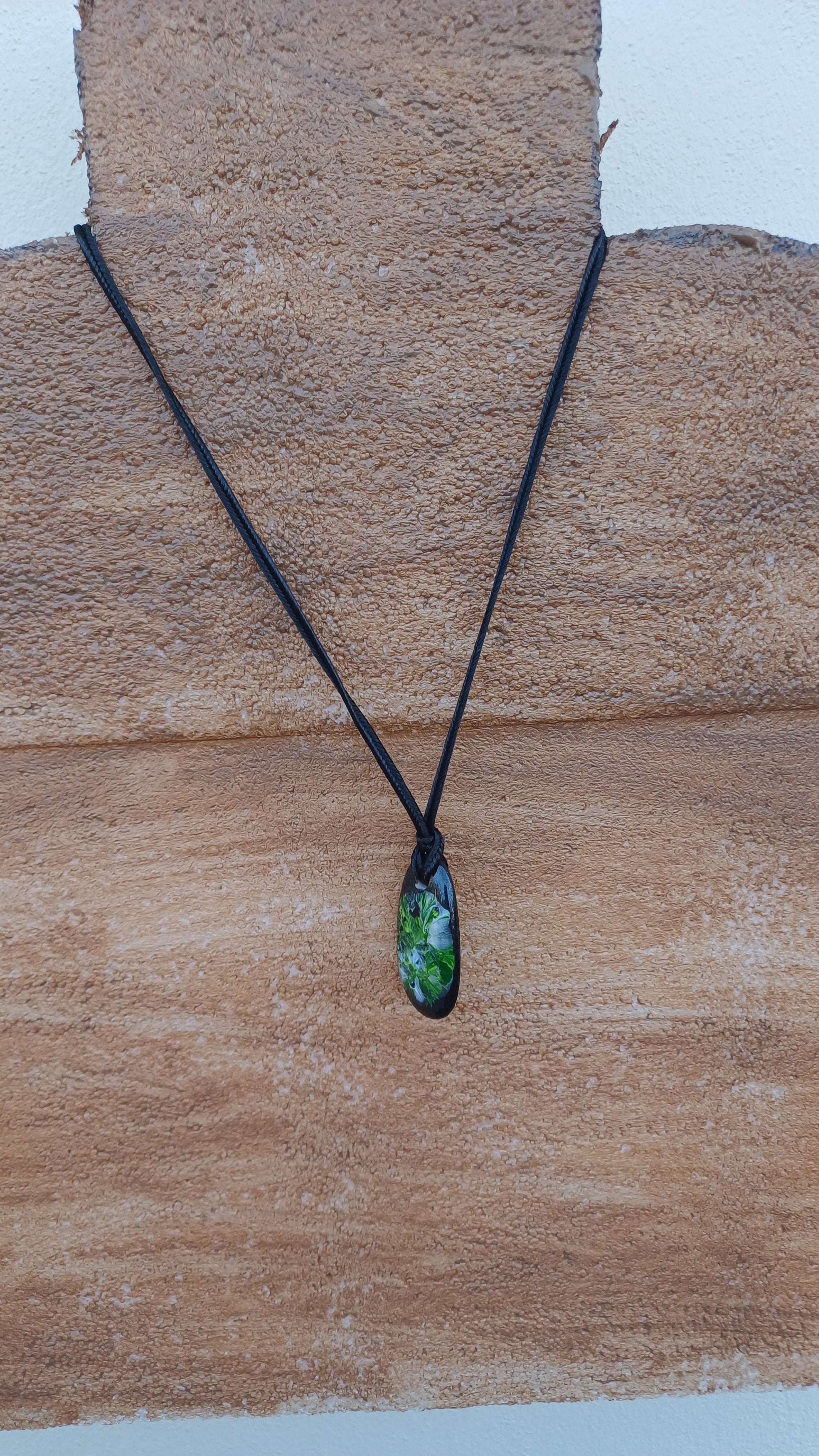 -Hand painted stone 40mm x 20mm. with 66 cm adjustable rope.