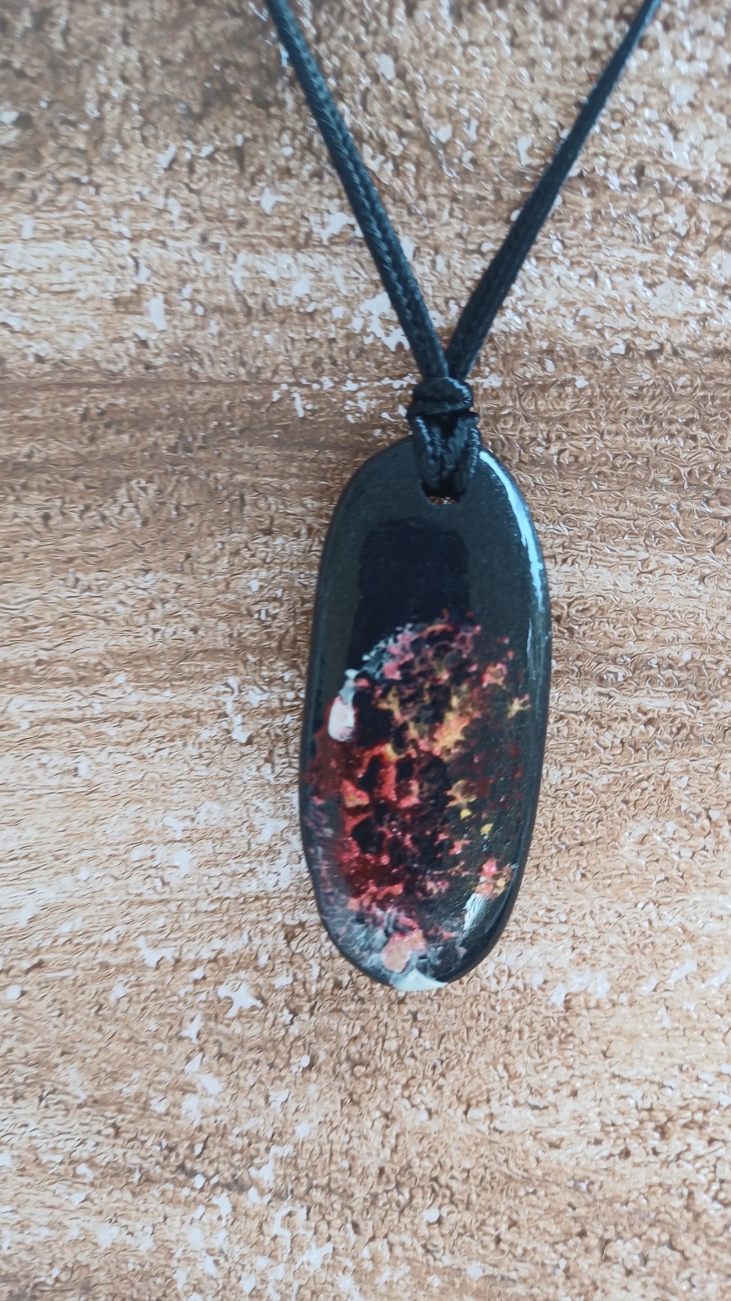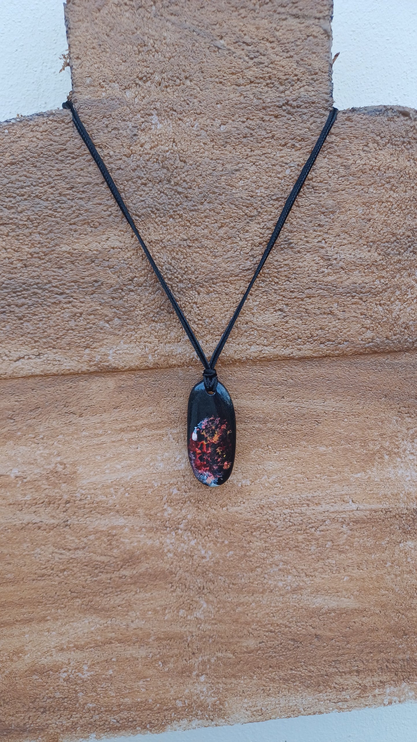 -Hand painted stone 55mm x 22mm. with 66 cm adjustable rope.