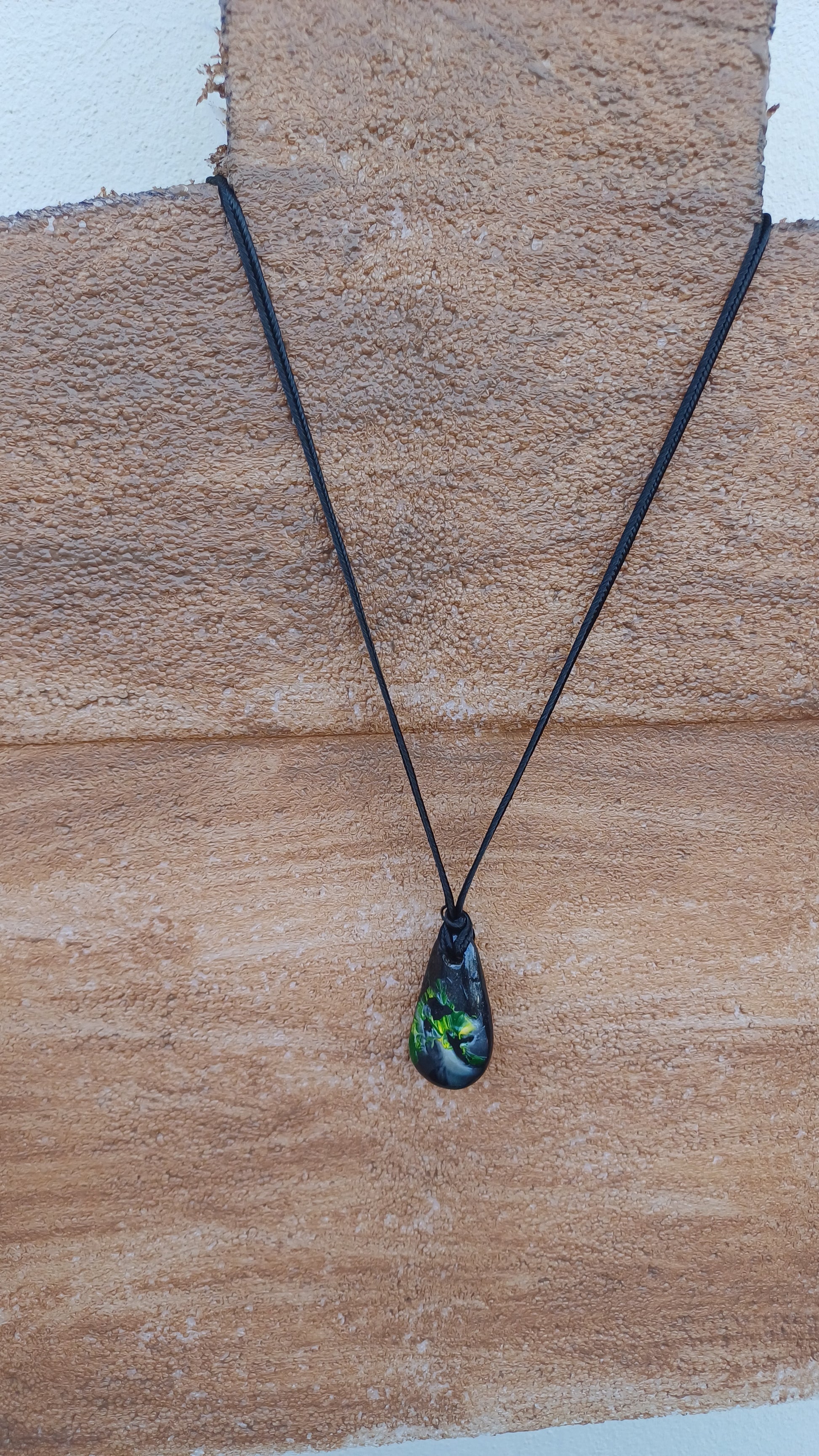 -Hand painted stone 40mm x 20mm. with 66 cm adjustable rope.