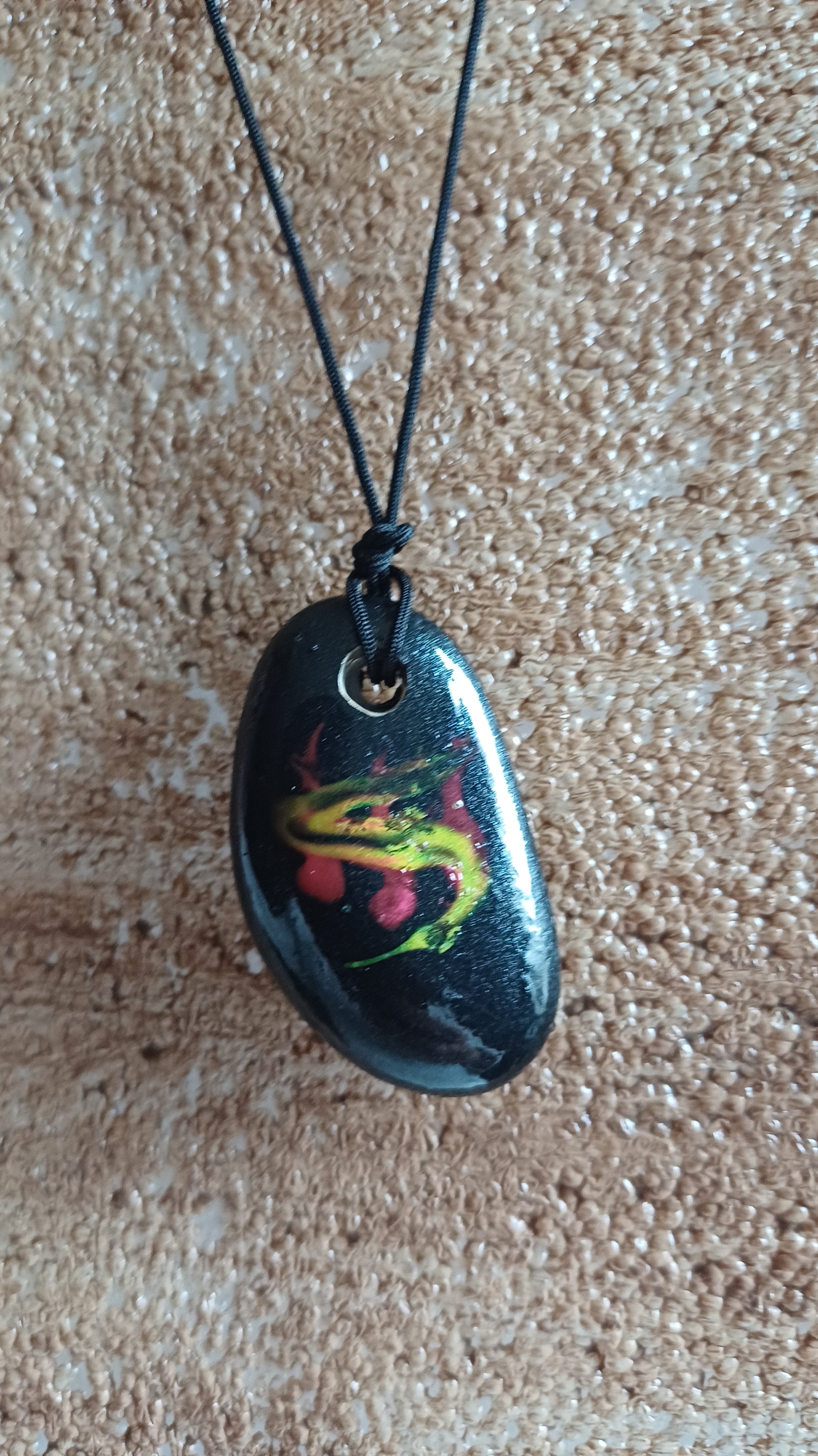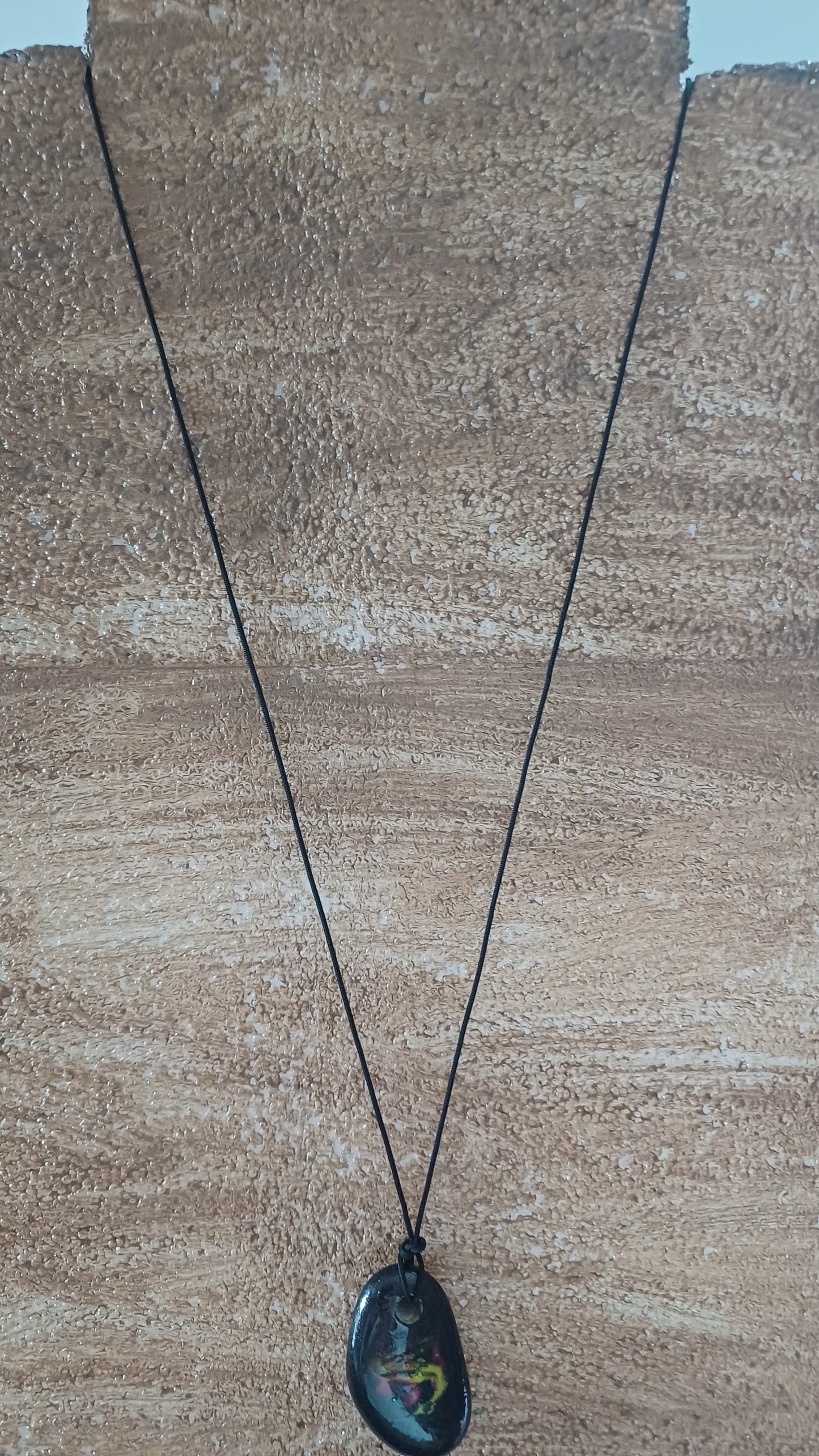 -Hand painted stone 40mm x 25mm. with 66 cm adjustable rope.