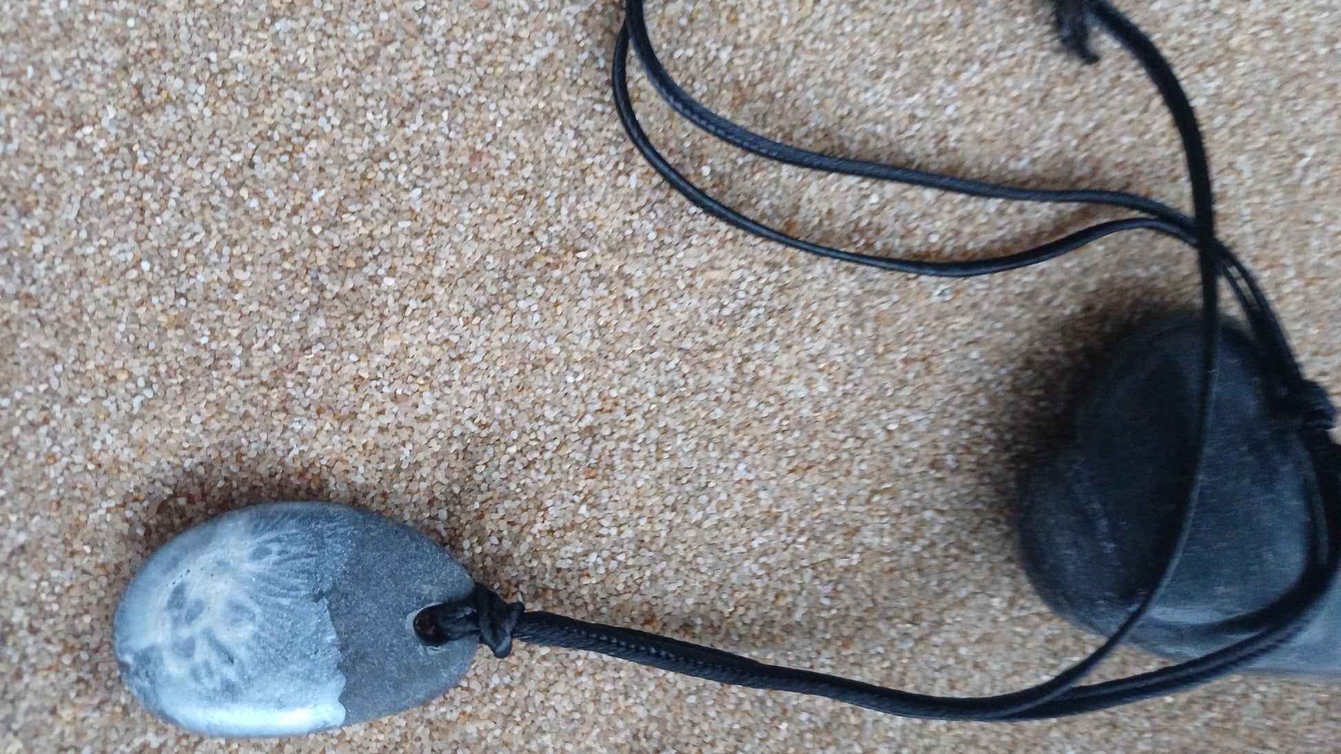 -Piedra de playa pintada a mano 40mm x 30mm. y con cuerda ajustable de 66cm.