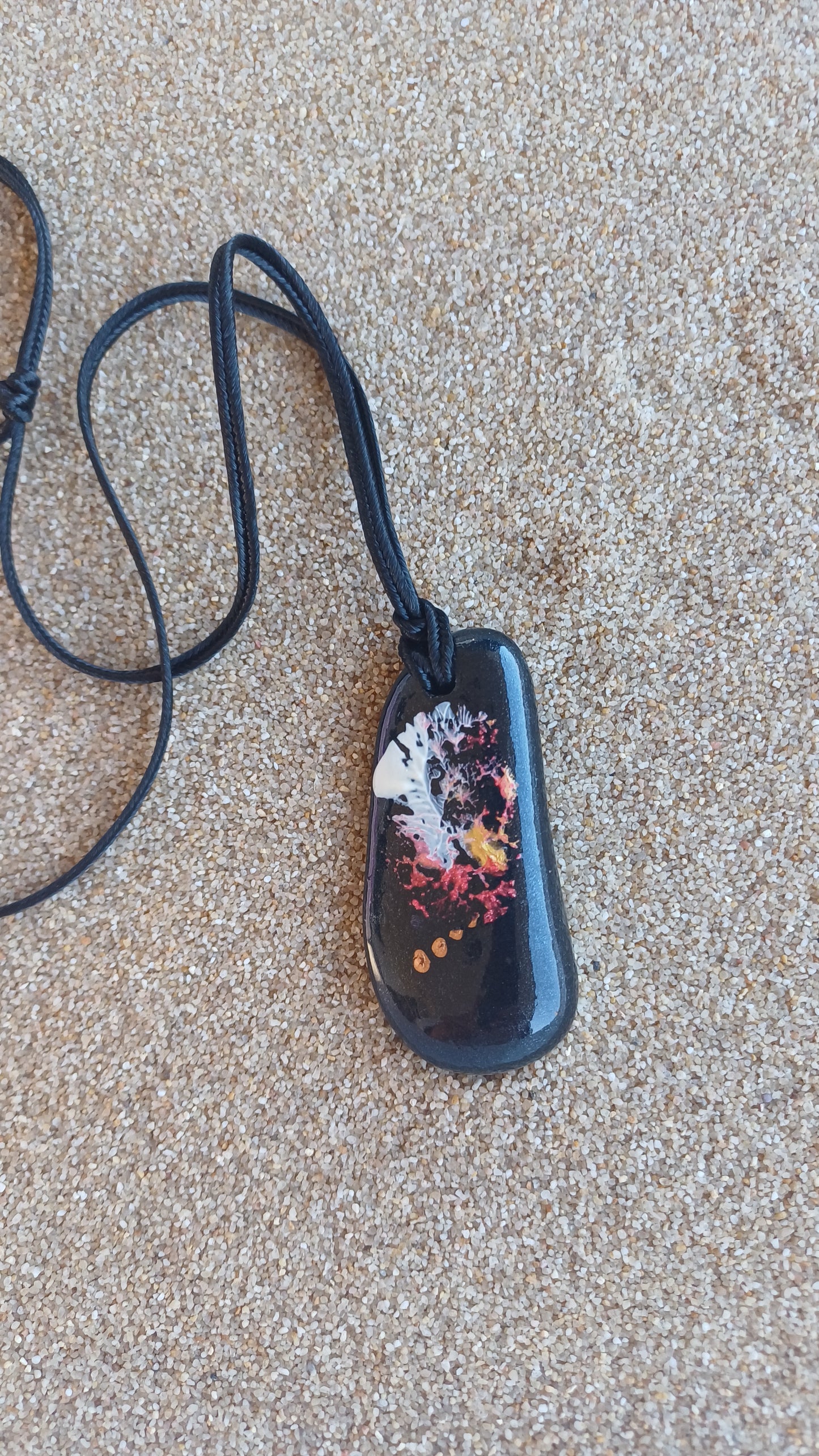 -Piedra de playa pintada a mano 60mm x 25mm. y con cuerda ajustable de 66cm.