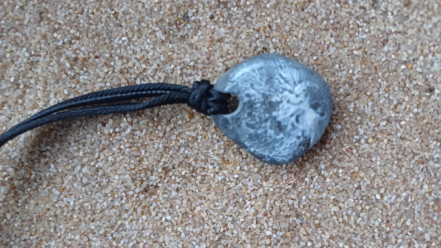 -Piedra de playa pintada a mano 25mm x 22mm y con cuerda ajustable de 66cm.