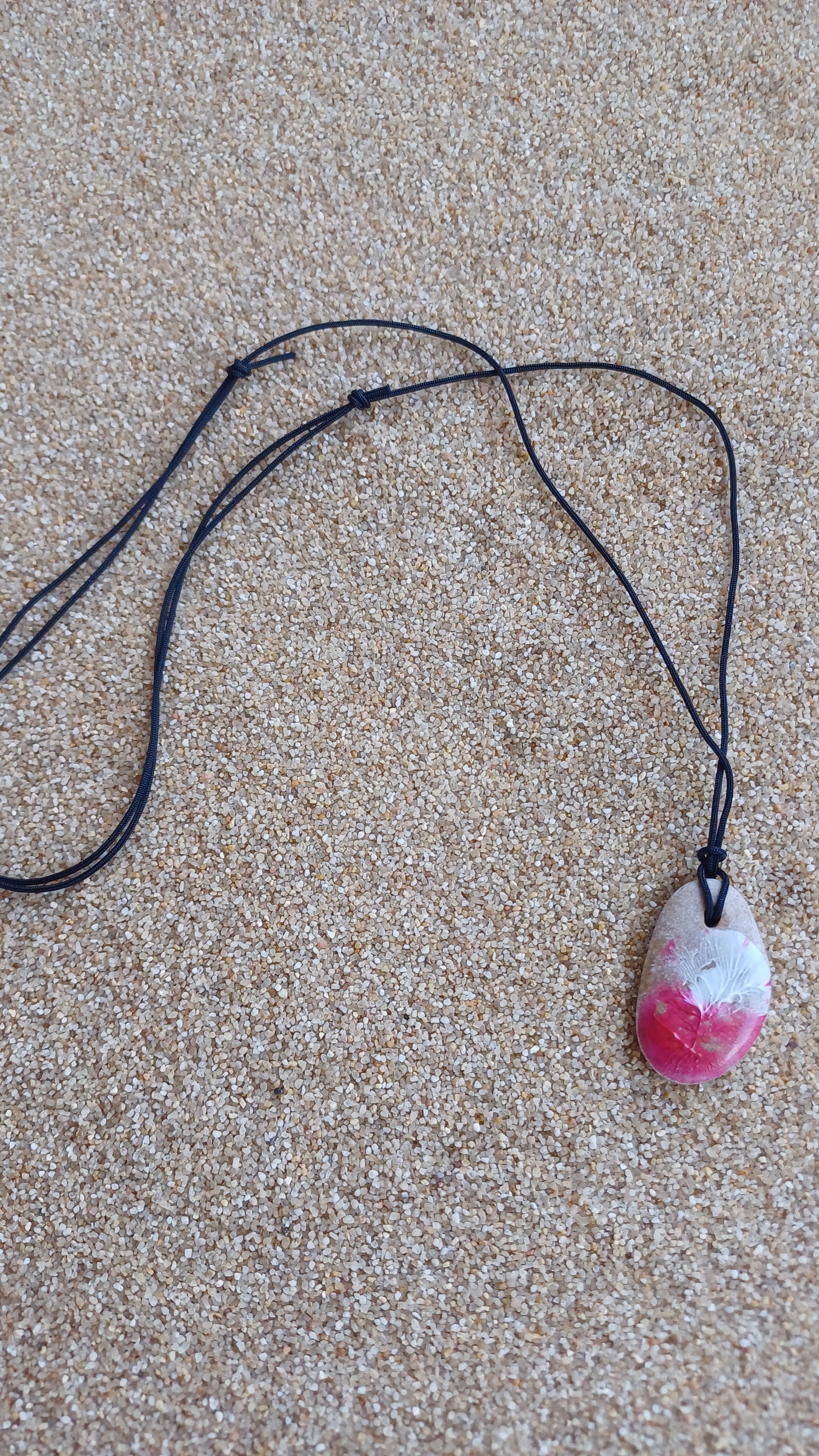 -Hand-painted beach stone 30mm x 20mm and with 66cm adjustable rope.