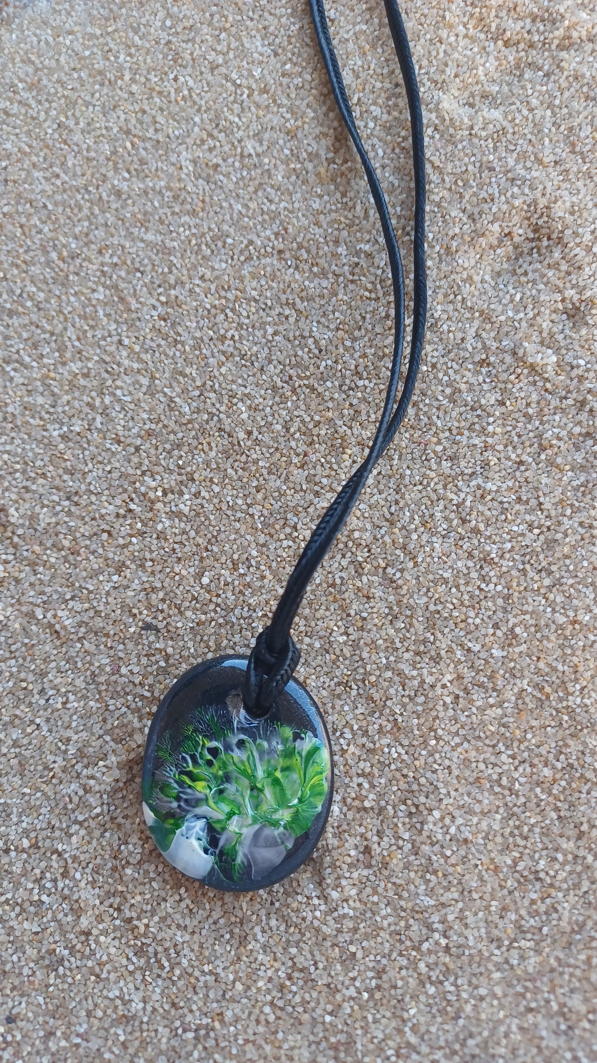 -Piedra de playa pintada a mano 35mm x 30mm y con cuerda ajustable de 66cm.
