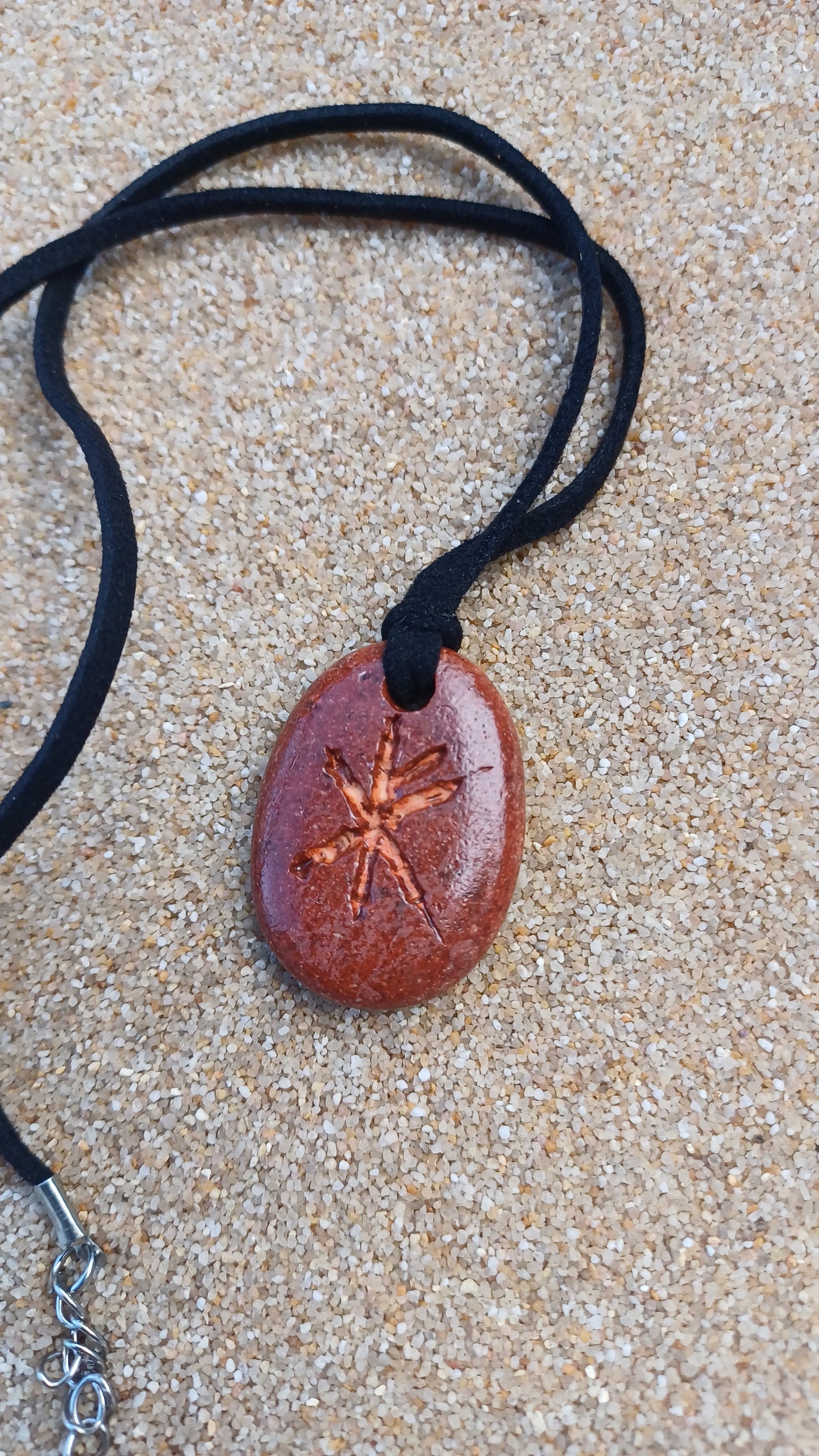-Viking rune for wealth 35 mm. with 42 cm black leather chain.