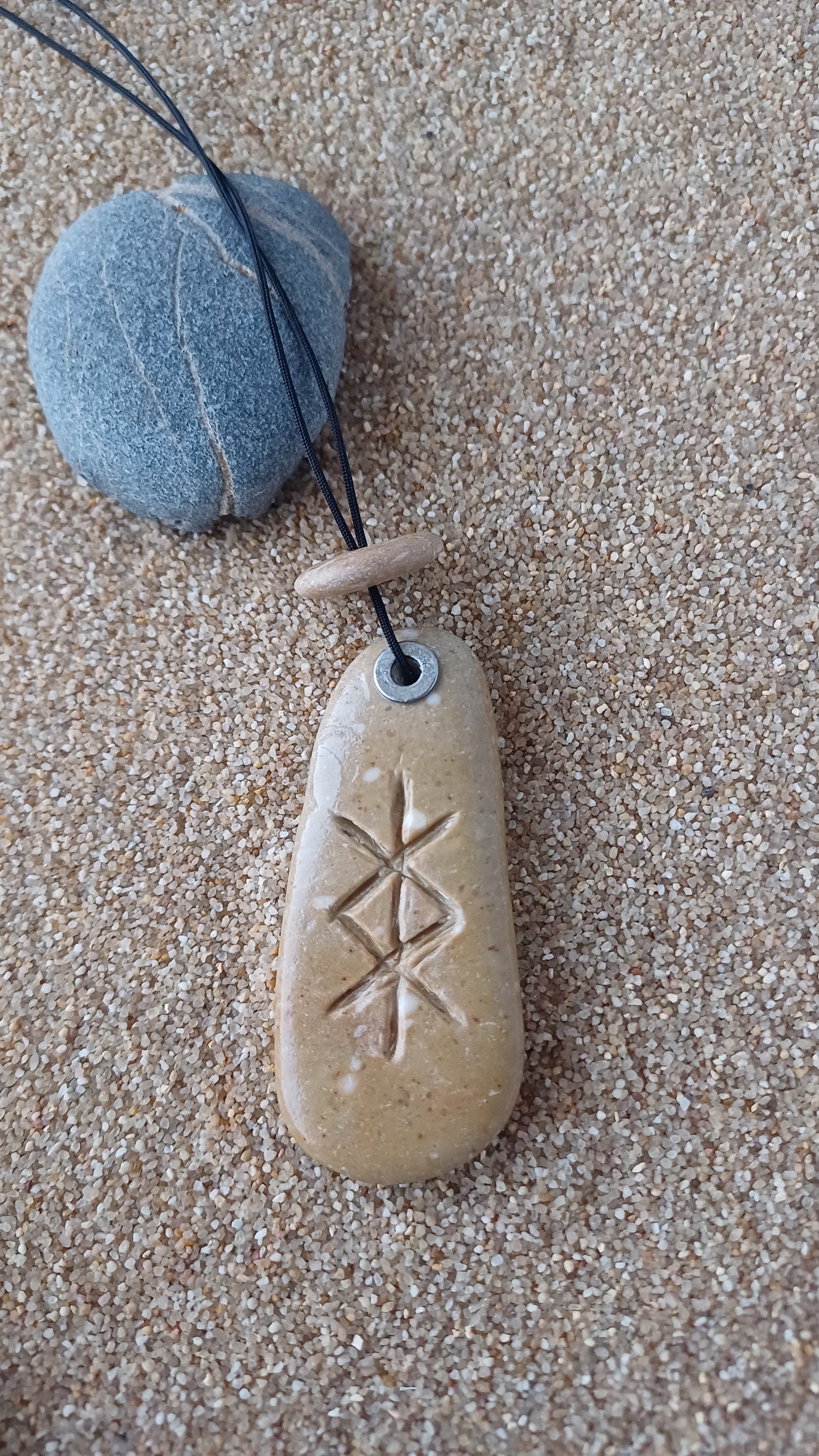 -Beach stone with protection rune 65mm x 35mm. with 70 cm rope. adjustable.