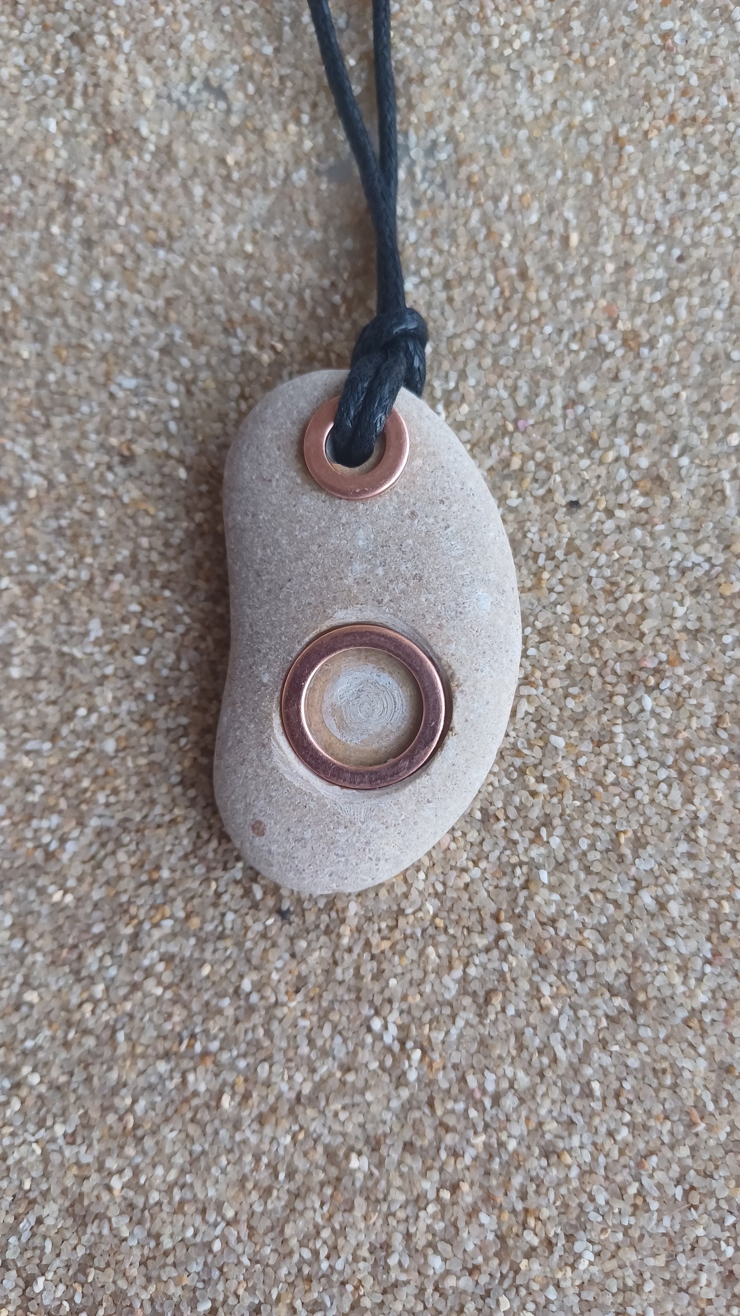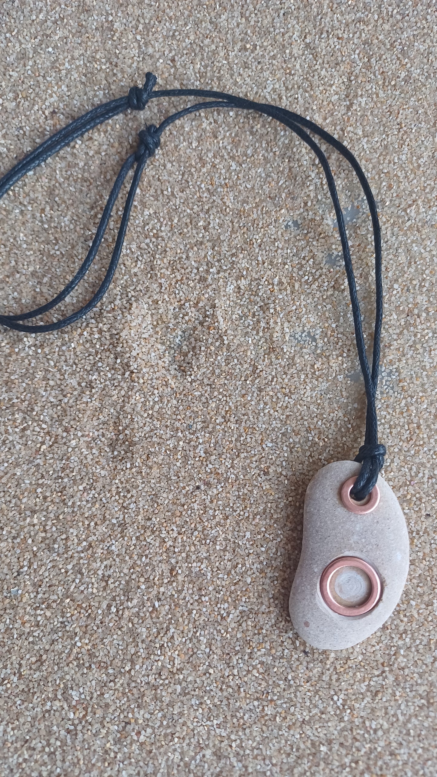 -Piedra de playa de 45mm x 30mm de cobre y cuerda adjustable de 66cm.