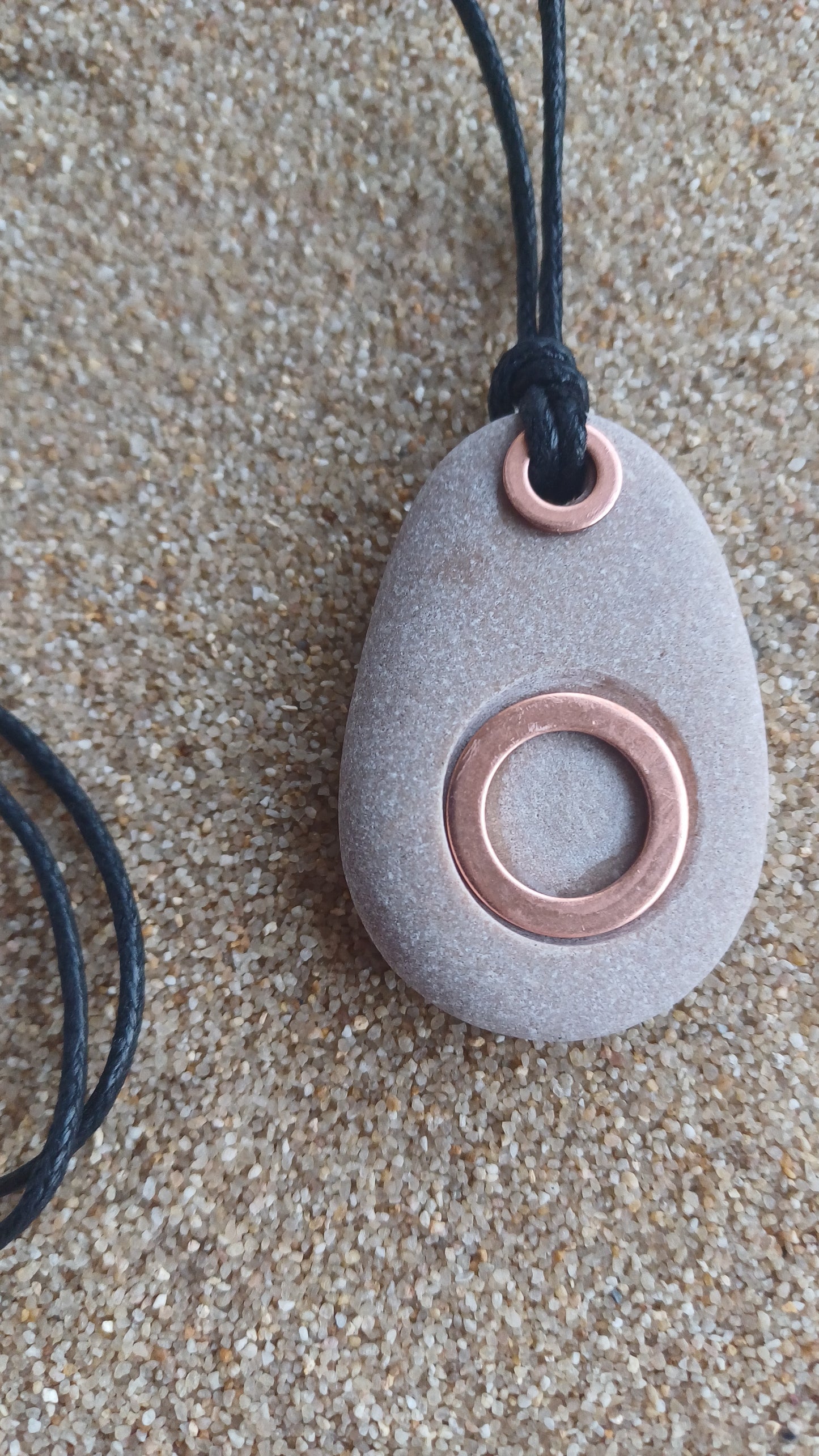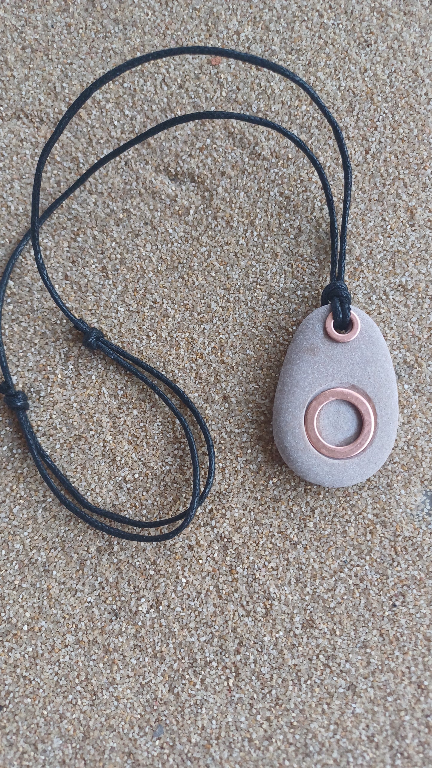-55mm x 33mm copper beach stone and 66cm adjustable rope.