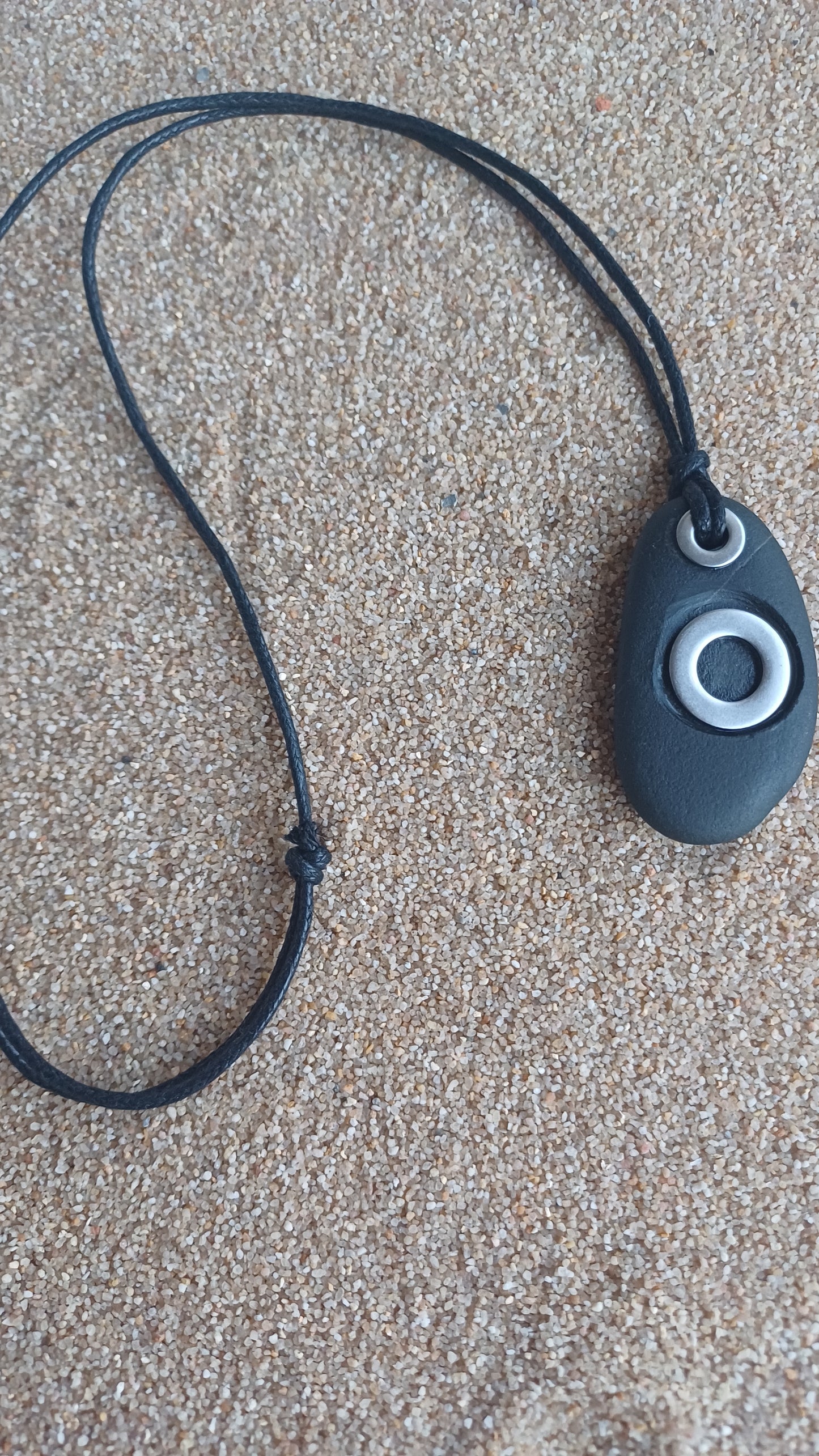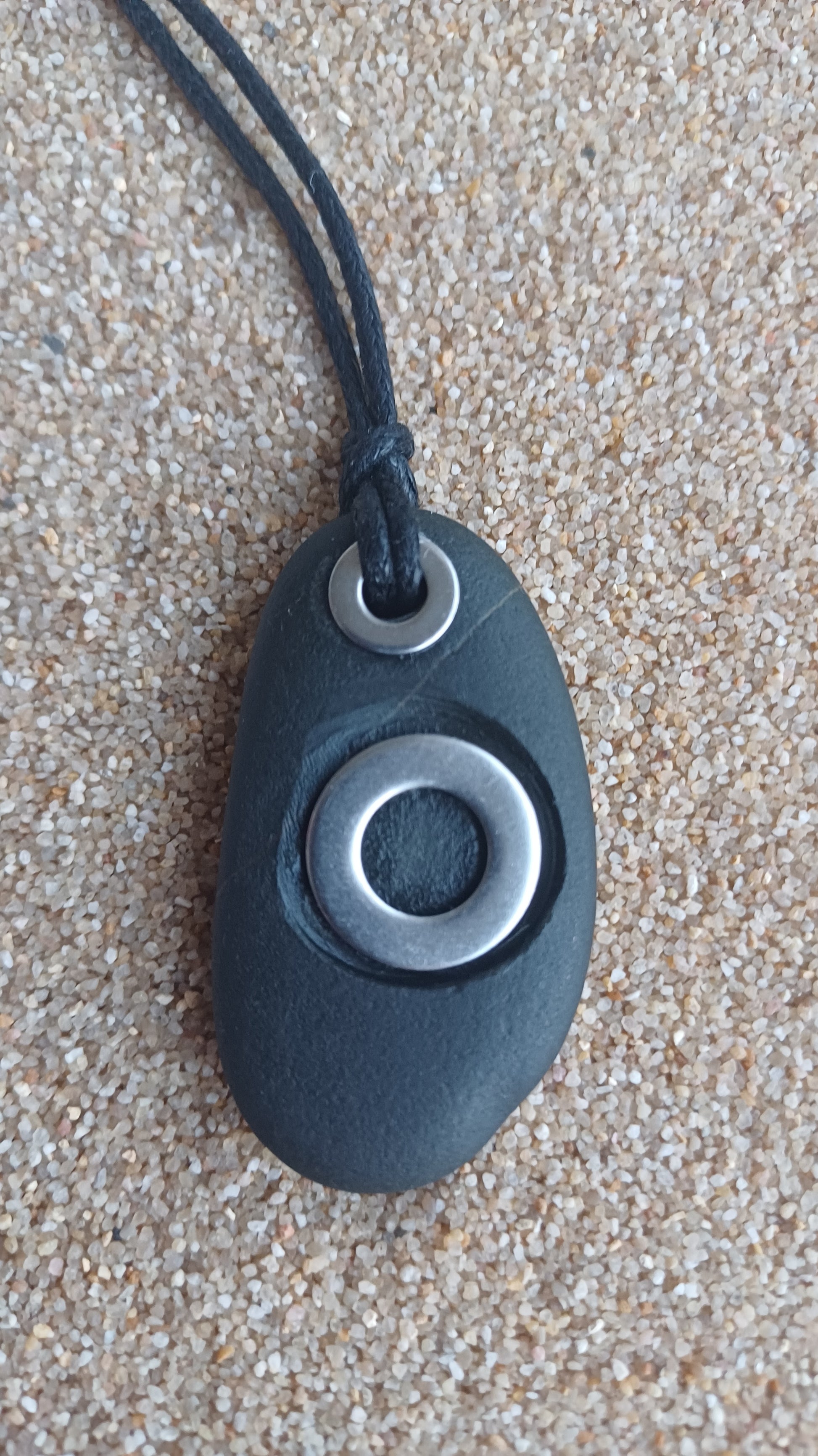 -45mm x 25mm stainless steel beach stone and 66cm adjustable rope.