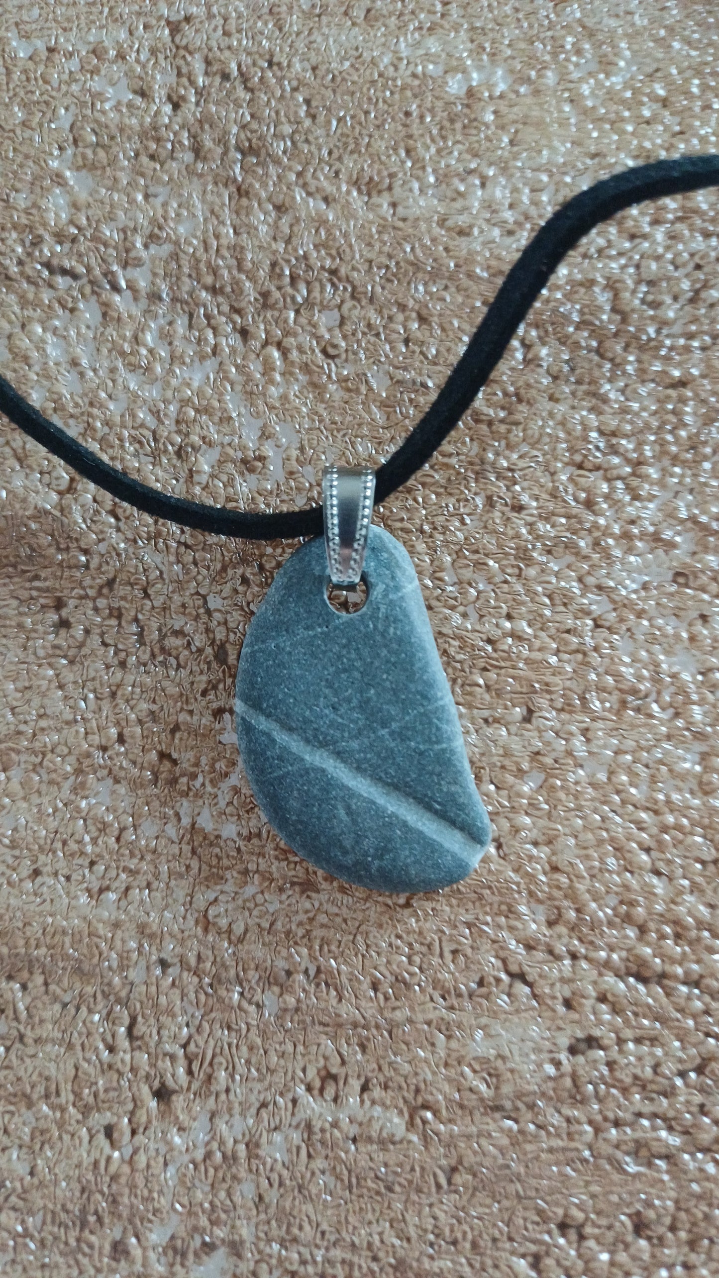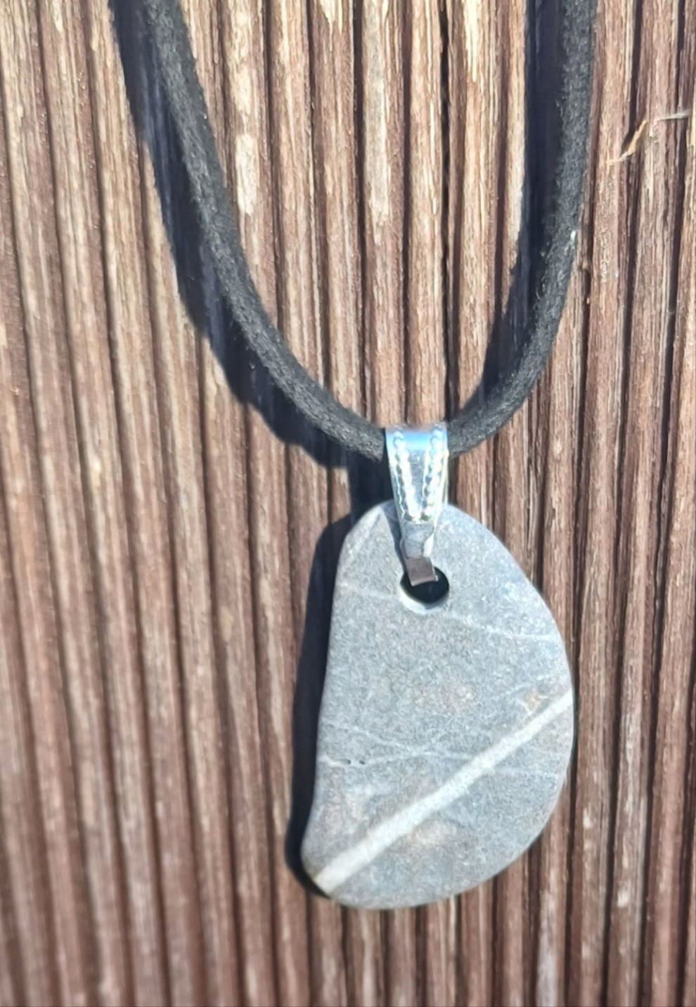 -Beach stone with silver clasp 30mm x 20mm comes with 45 cm black leather rope.