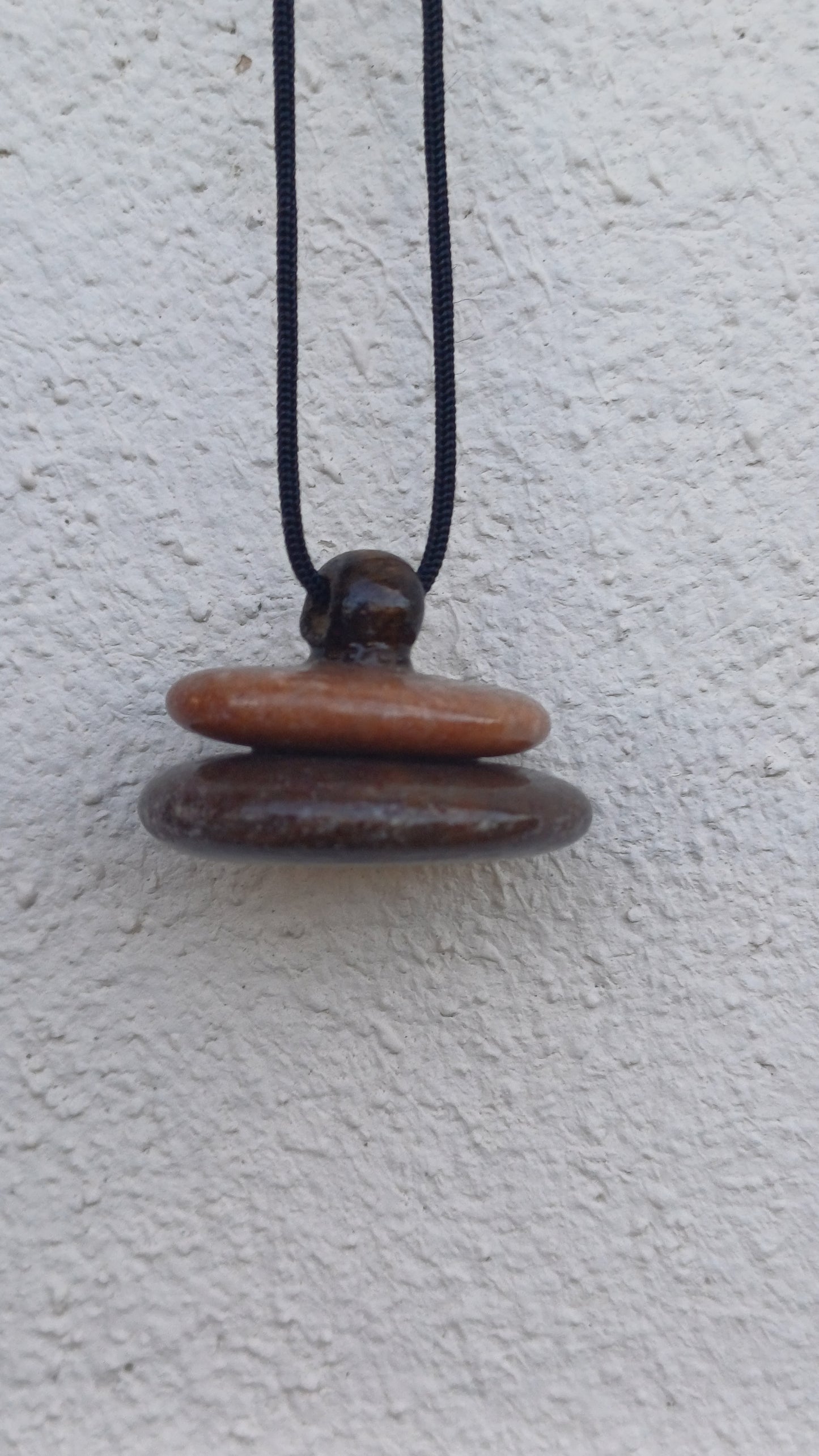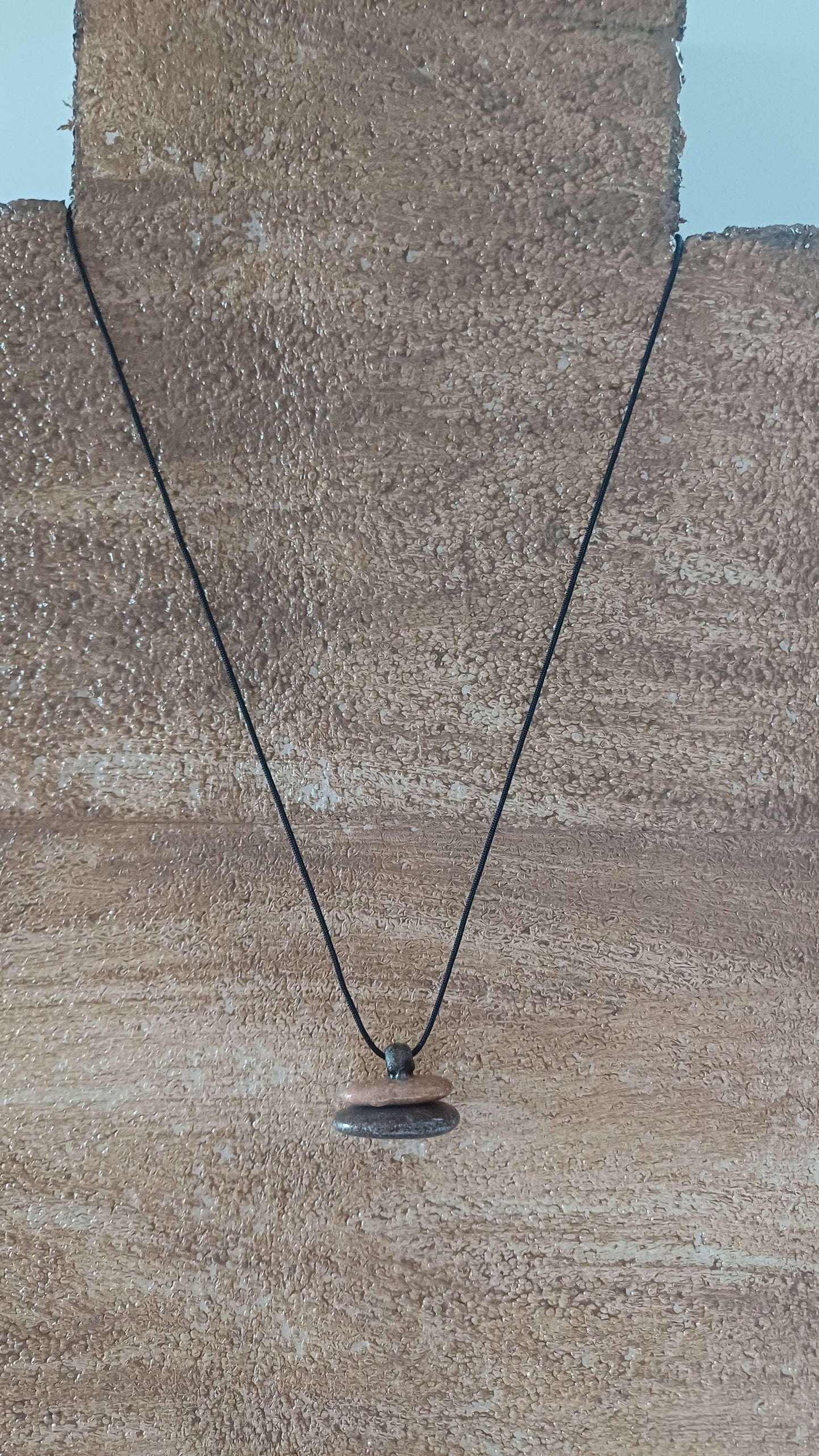 -10 mm beach stone necklace. x 22mm. With a wooden ball it comes with an 82 cm adjustable count.