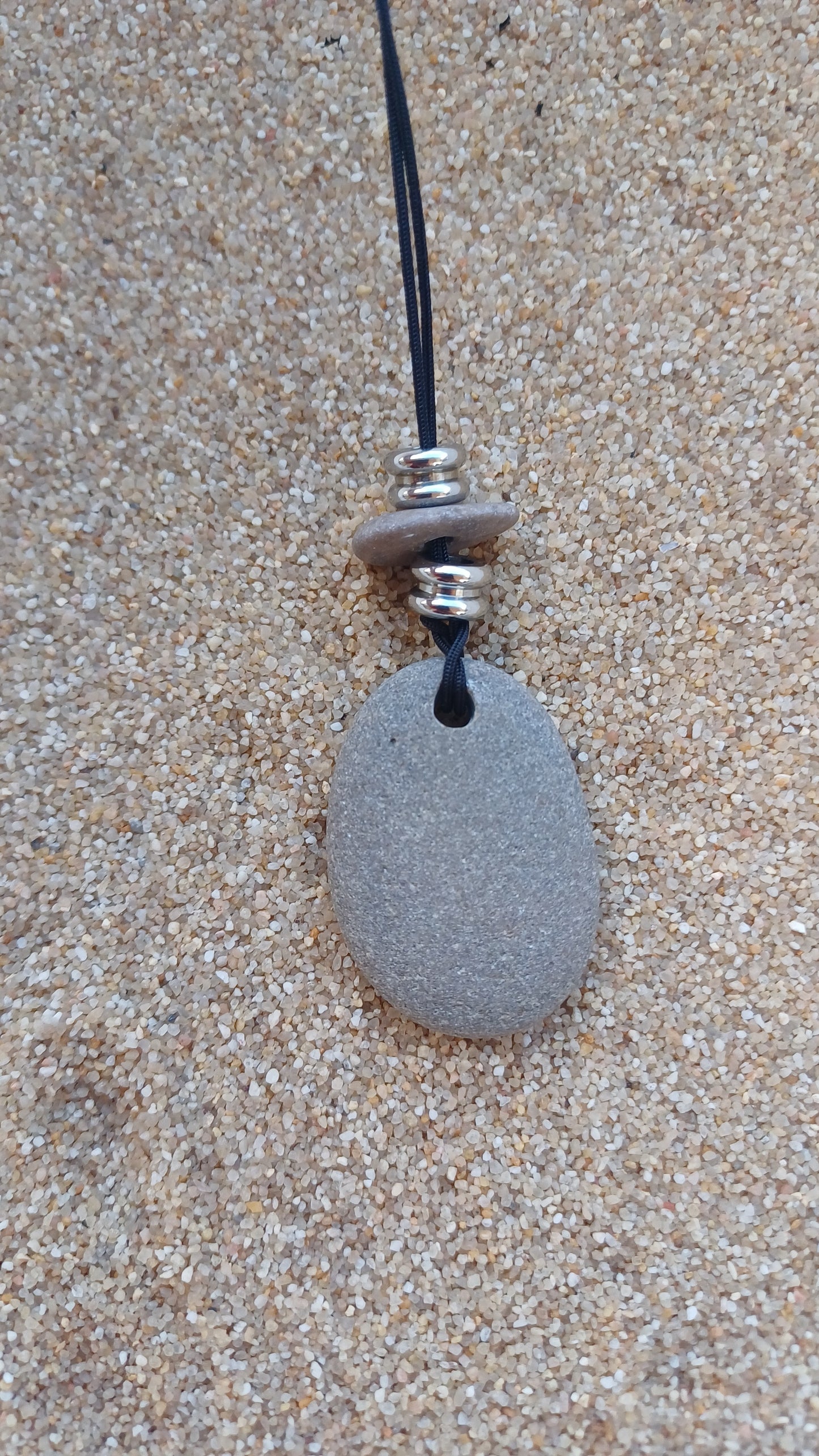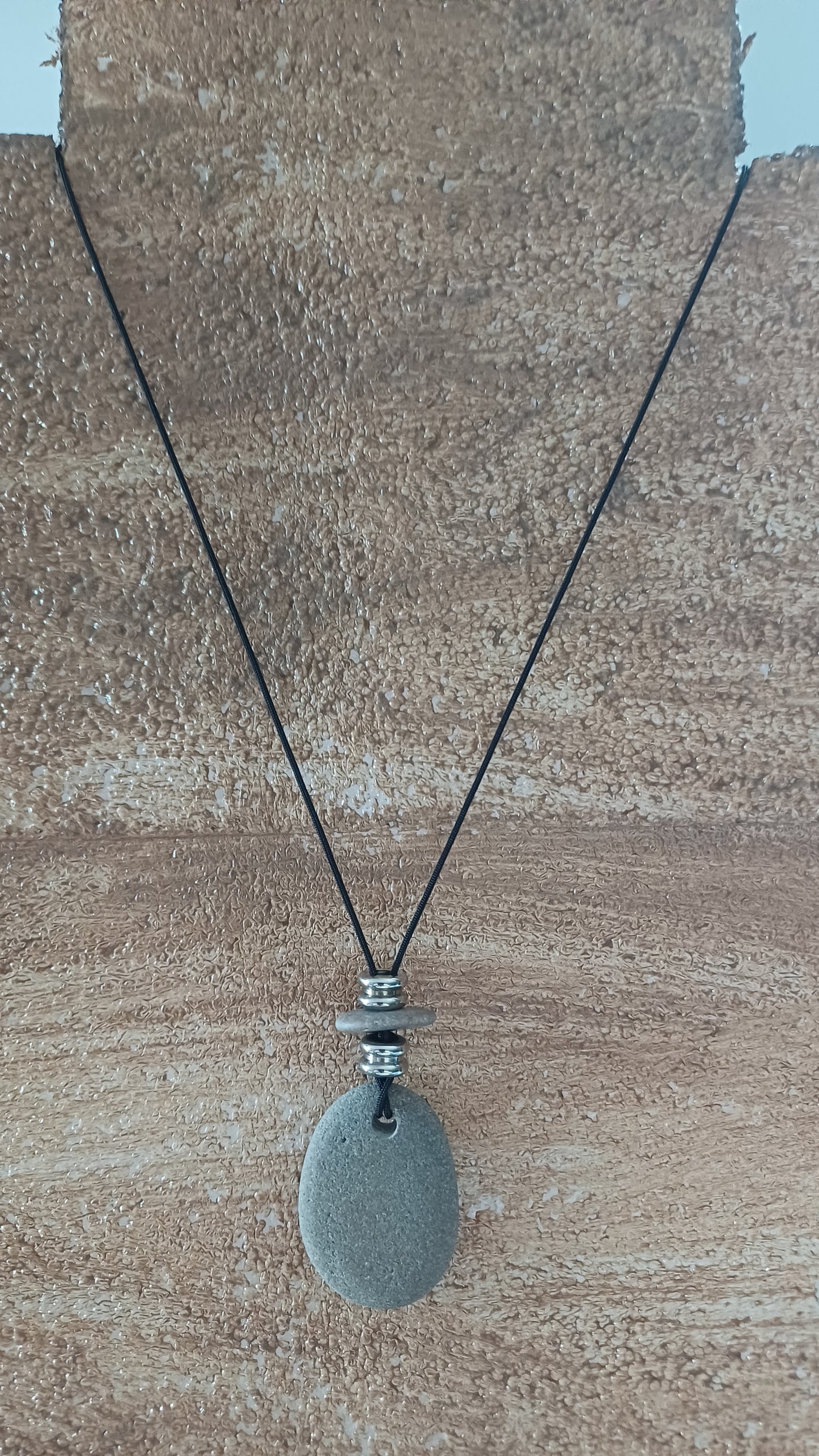-Beach stones necklace 57 mm x 25 mm with 64 cm adjustable rope