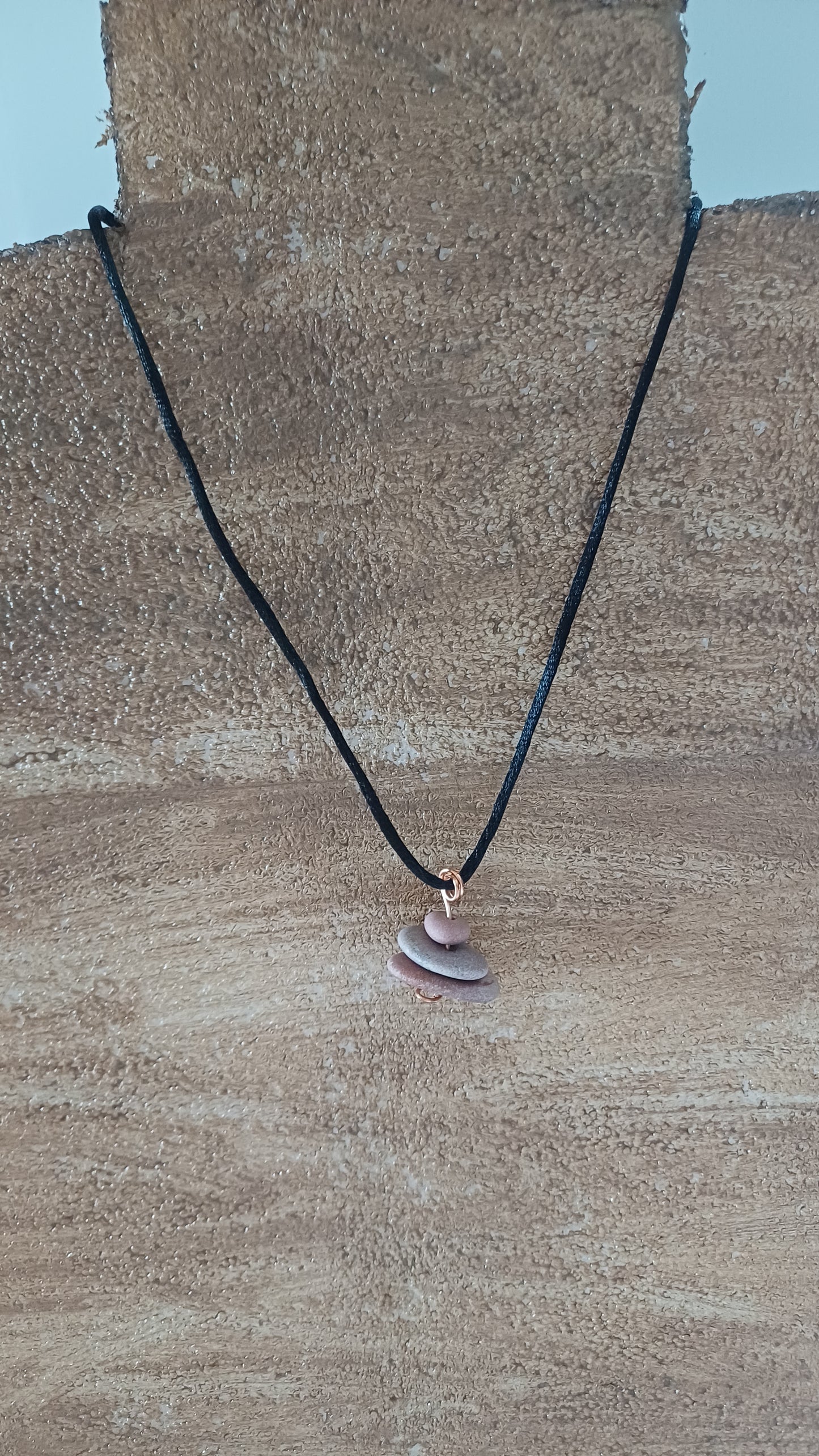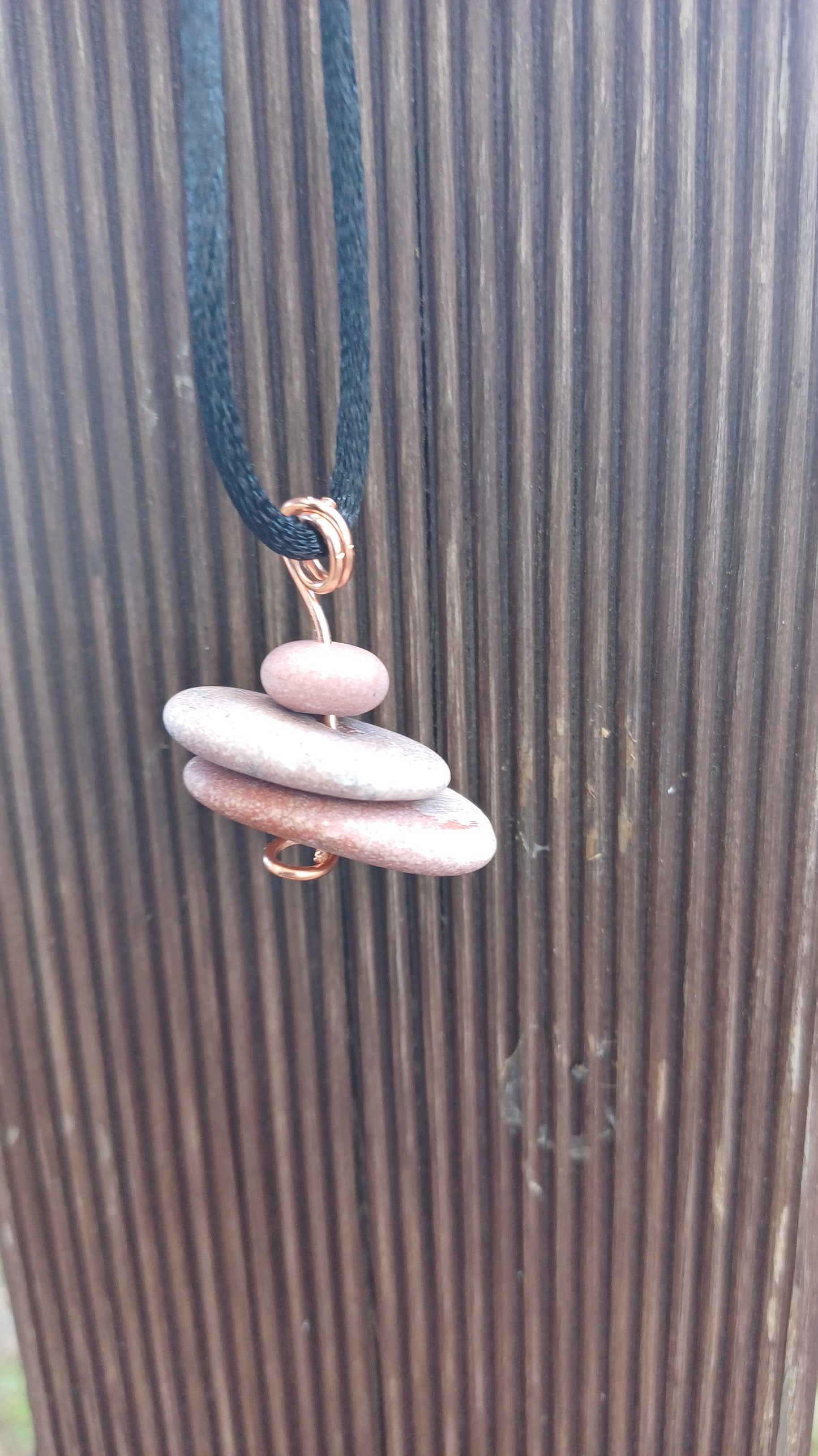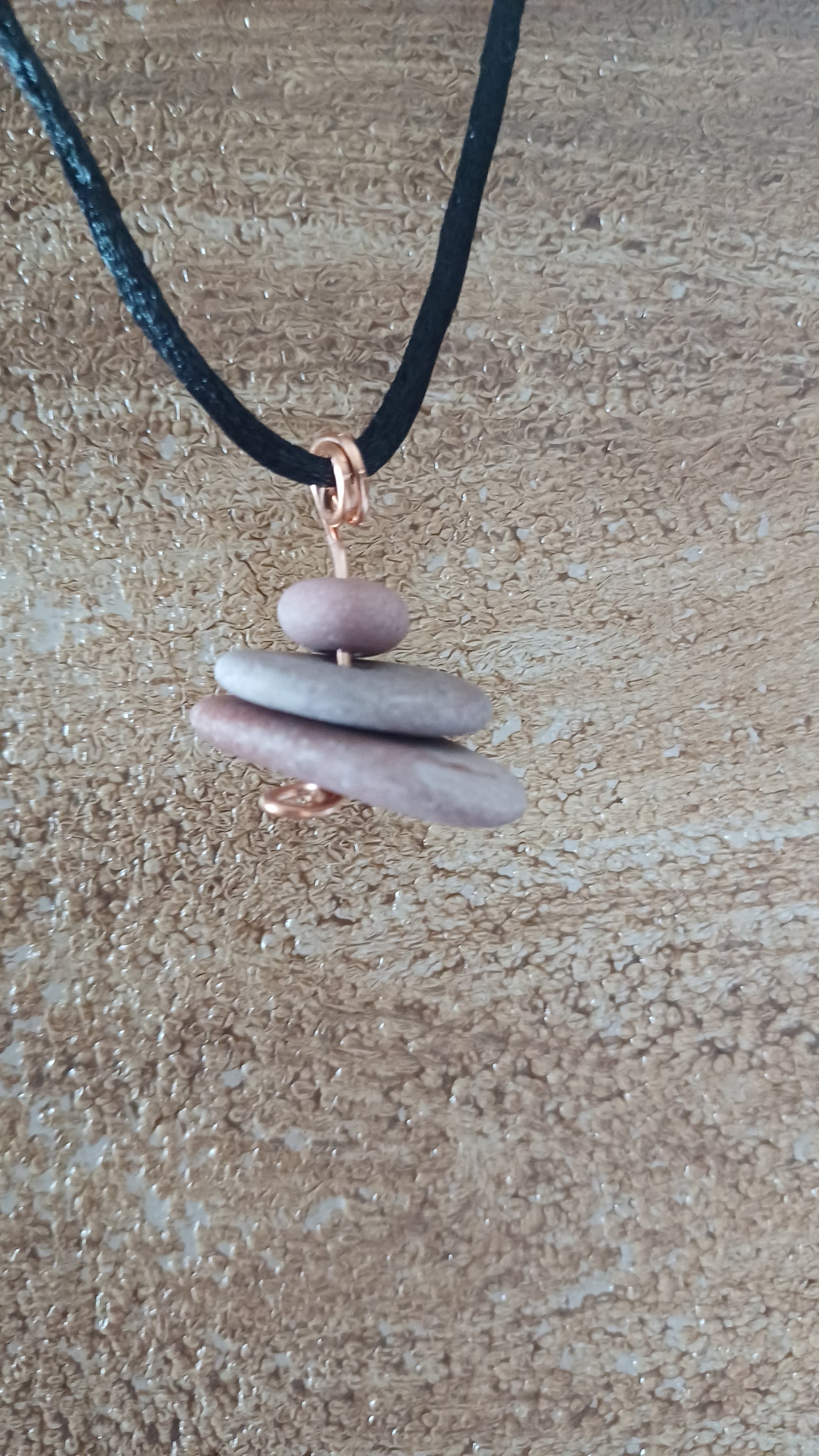 -Copper necklace with 3 beach stones 23mm x 20mm with 64 cm adjustable rope.