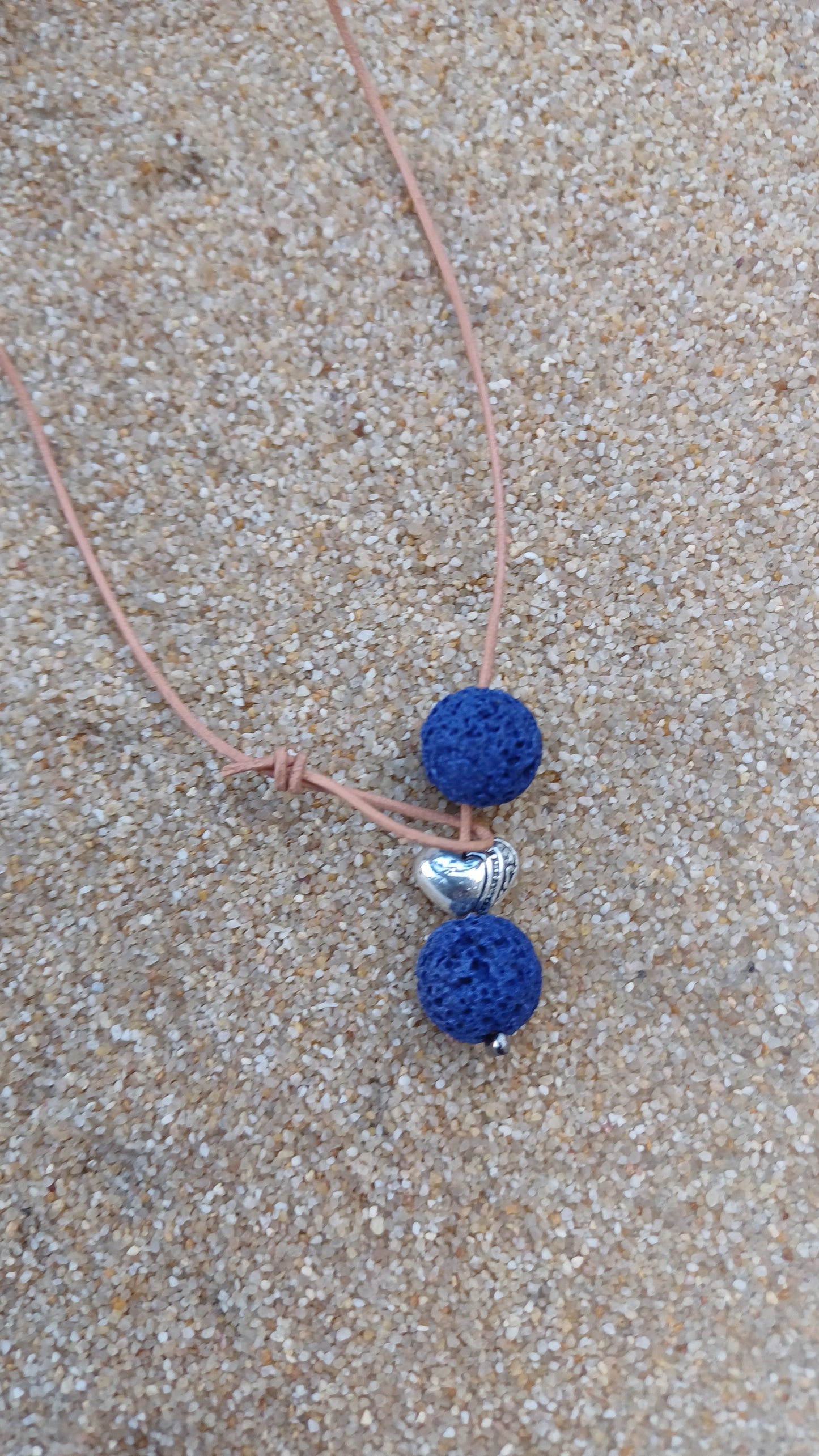 -30 mm blue volcanic lava and steel necklace. with leather rope 52 cm.